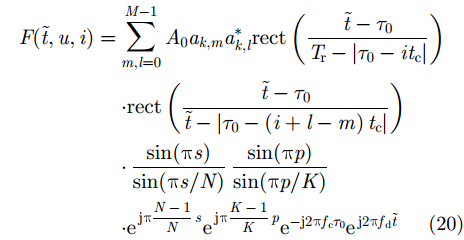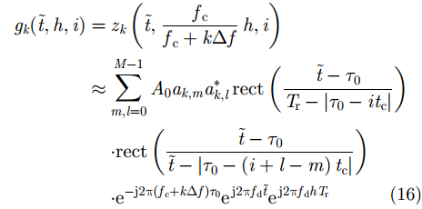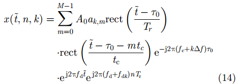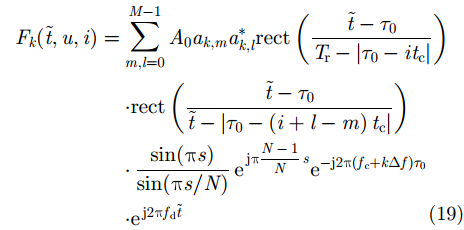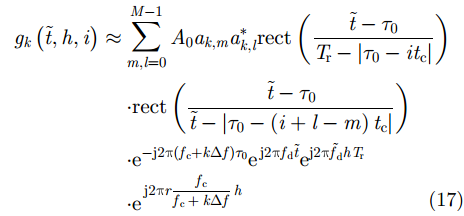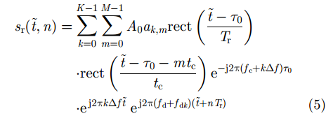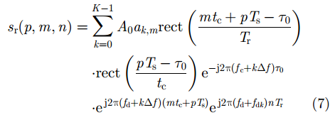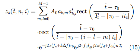 其中,第2个指数项表示不同子载波的回波信号具有不同的频率偏移;由第3个指数项可以看出,子载波分别与慢时间和快时间相耦合。