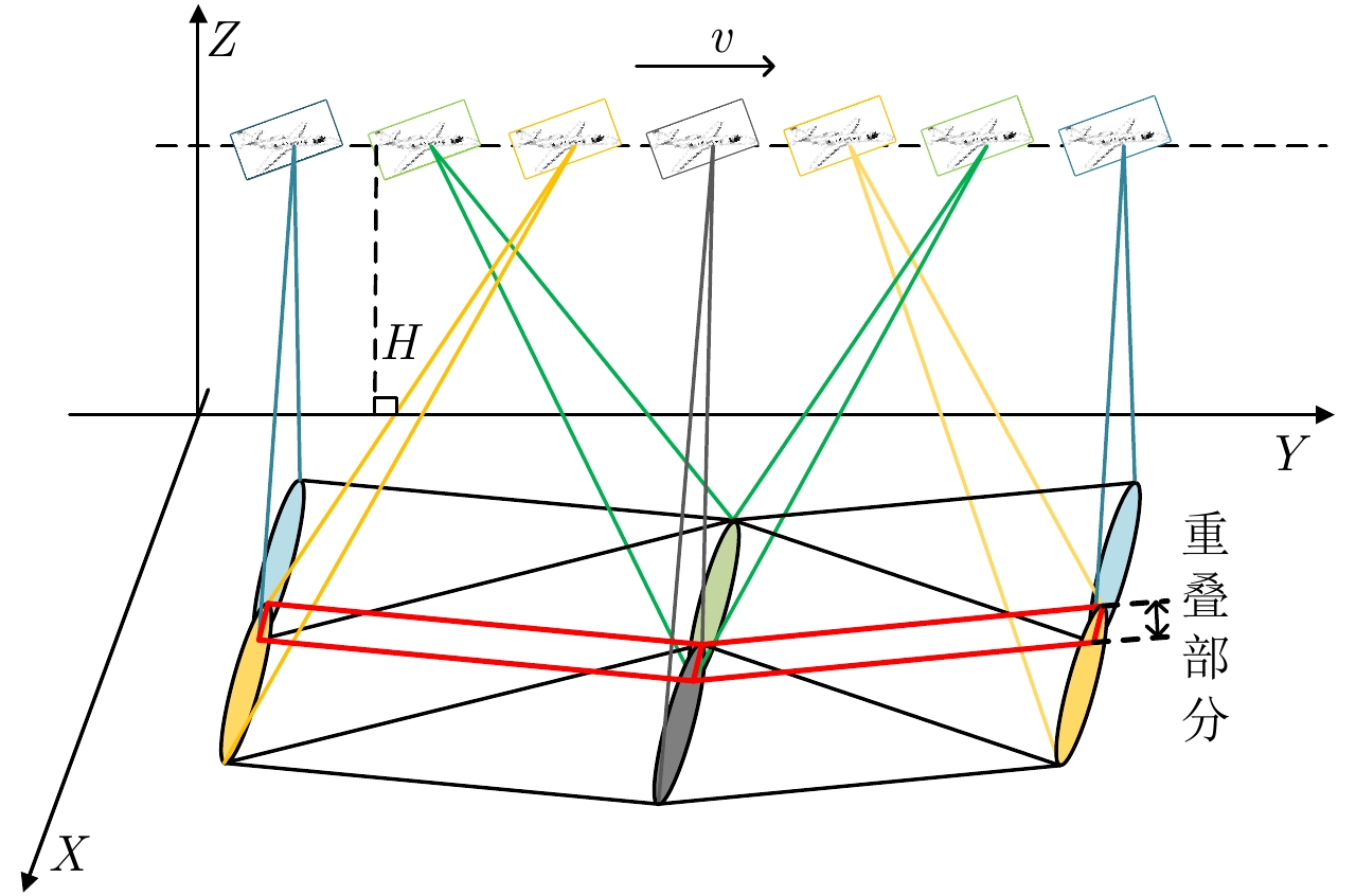 图 13 机载SAL扫描方式(通过扫描将距离向观测幅宽扩大2倍示意图) Fig.13 Scanning model of airborne SAL (Double the swath through scanning) |