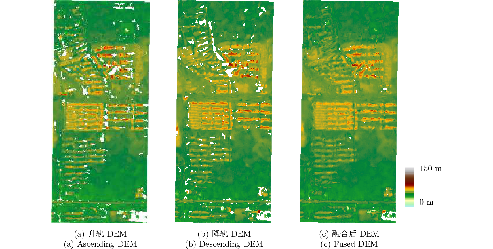 图 12 升降轨融合后的DEM(部分城区) Fig.12 Fusion DEM of ascending and descending pass (City) |