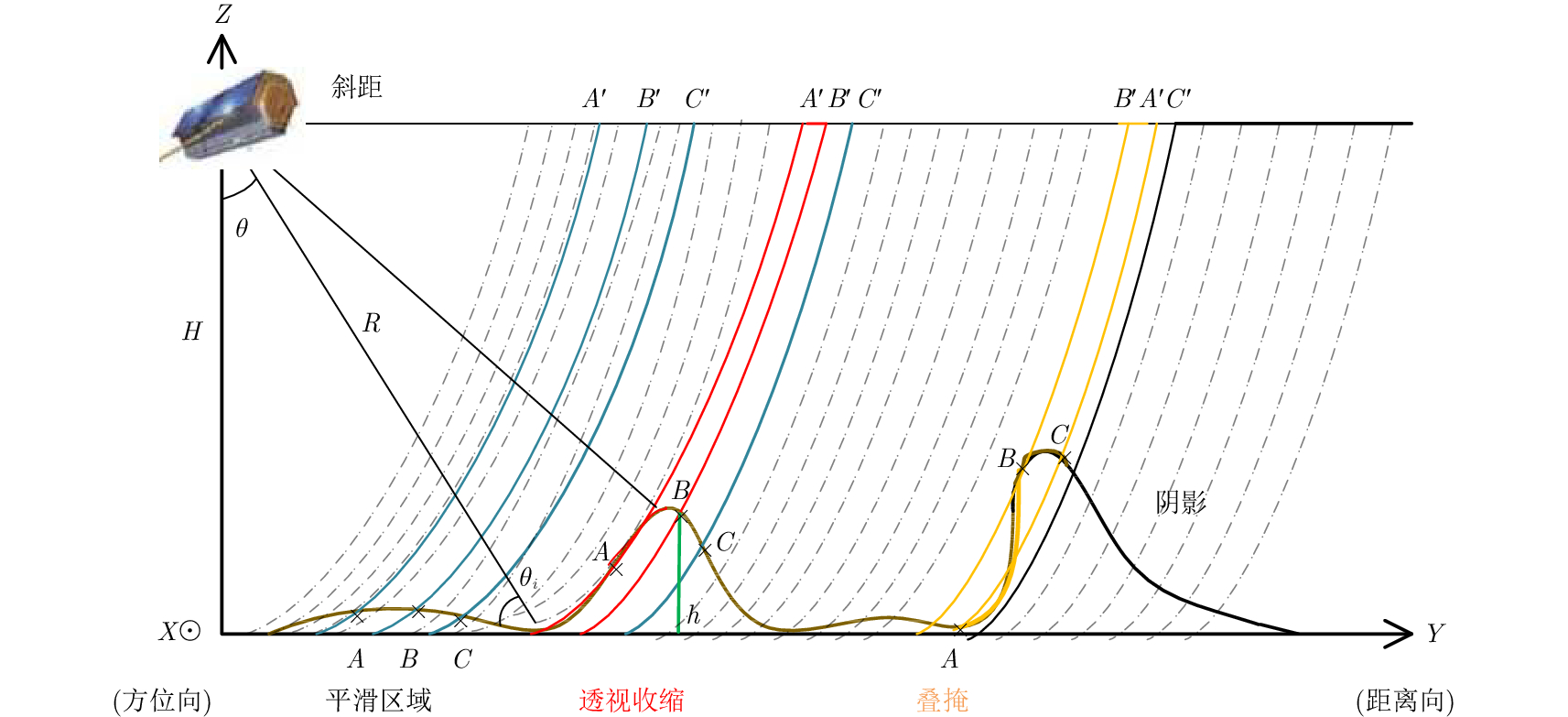 图 3 SAR影像几何畸变图 Fig.3 Geometric distortion of SAR image |
