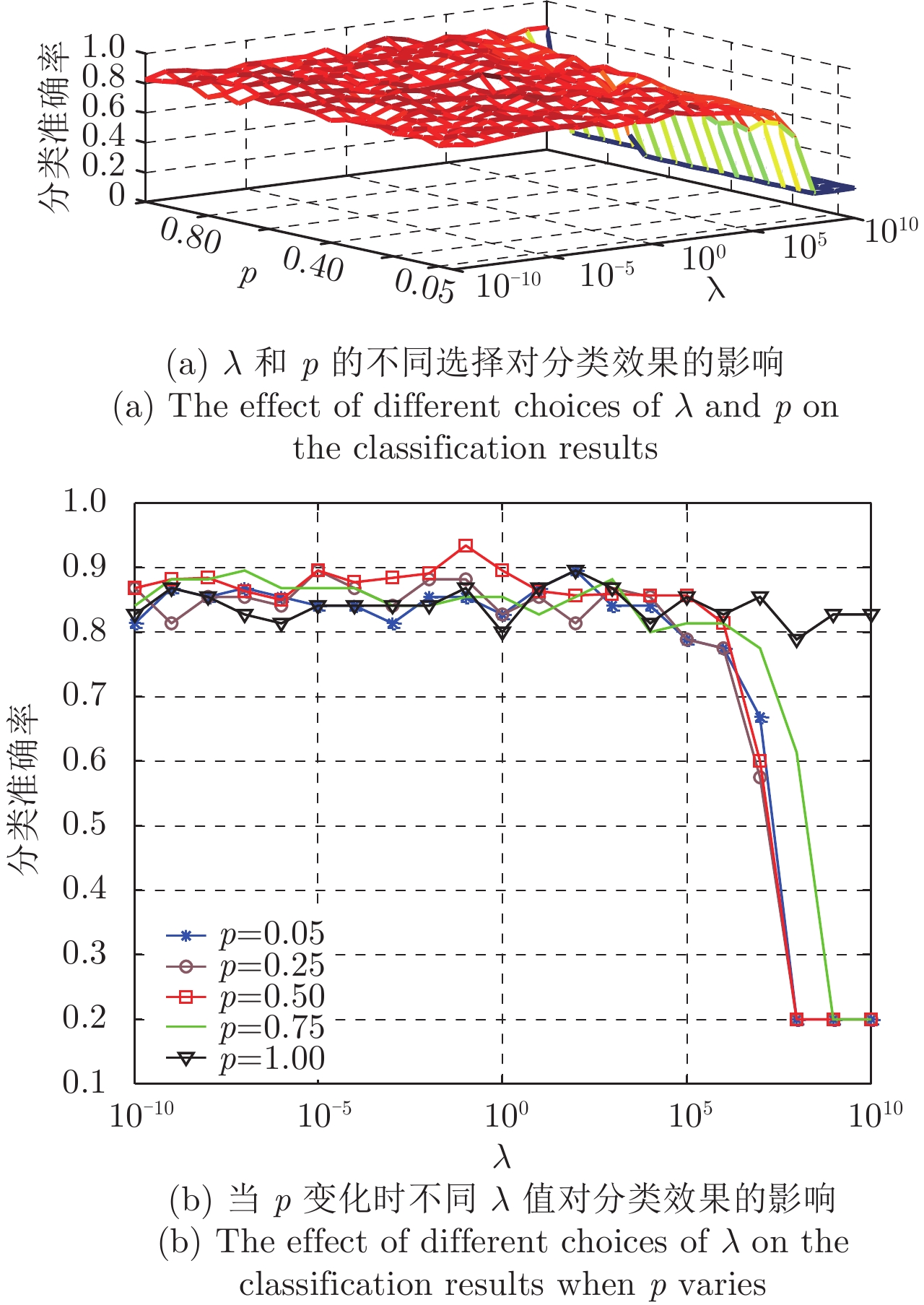 从表1中可以看出,所提方法的分类性能要优于DELM和SAE。这是因为所提出的算法在训练过程中引入了Dropout约束,可以有效地提高模型的泛化能力。SAE的分类准确率虽然高于DELM,但其训练时间更长,这是由于SAE模型在训练过程中需要进行迭代微调,而DELM模型在训练过程中无需微调操作,从而极大地减少了训练时间。另外,所提算法和DELM的训练时间差别不大,验证了所提算法在计算复杂度上与DELM相同。