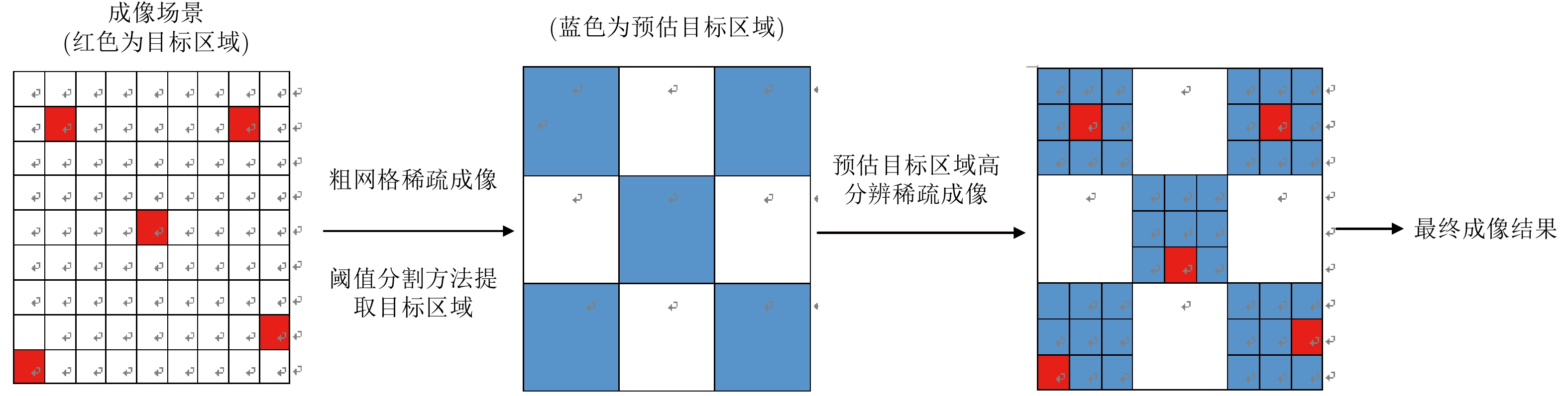 该算法首先利用SBR算法获得成像场景的低分辨成像结果,利用阈值分割技术提取低分辨成像结果中可能存在目标的区域,并利用该区域作为先验信息对成像场景进行高精度稀疏成像,该算法的流程图如图2所示。