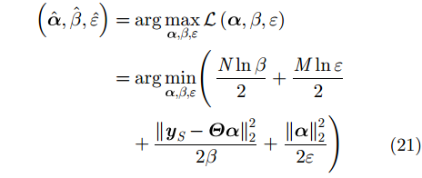 为了获得式(23) 3个未知量最优解,本文提出了基于稀疏贝叶斯正则化的稀疏重构算法,采用迭代逼近思想实现