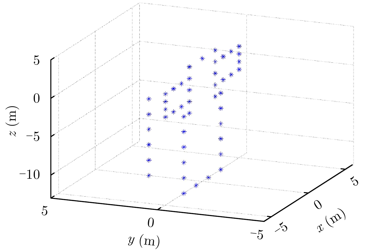 为进一步验证所提出算法的稳定性,此部分用“天宫一号”卫星模型按照上述算法流程进行InISAR成像仿真实验。具体目标结构以及仿真模型如图16和图17所示。