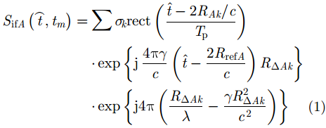 ,然后雷达A, B和C经过解线频调处理之后的回波为: