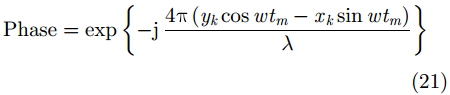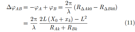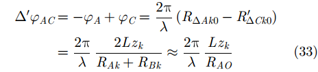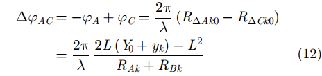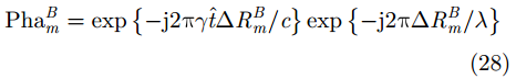 进一步根据上述推导得到的需要补偿的波程差,可以构造雷达B和雷达C回波分别需要补偿的相位为: