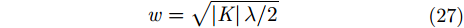 $w = \sqrt { - \lambda \left| K \right|/2} = 0.{\rm{0108}}$