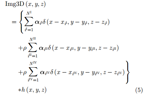 于是,应用式(2)、式(3)到式(1),可得“4路径”模型表达的目标3维ISAR图像的解析表达式