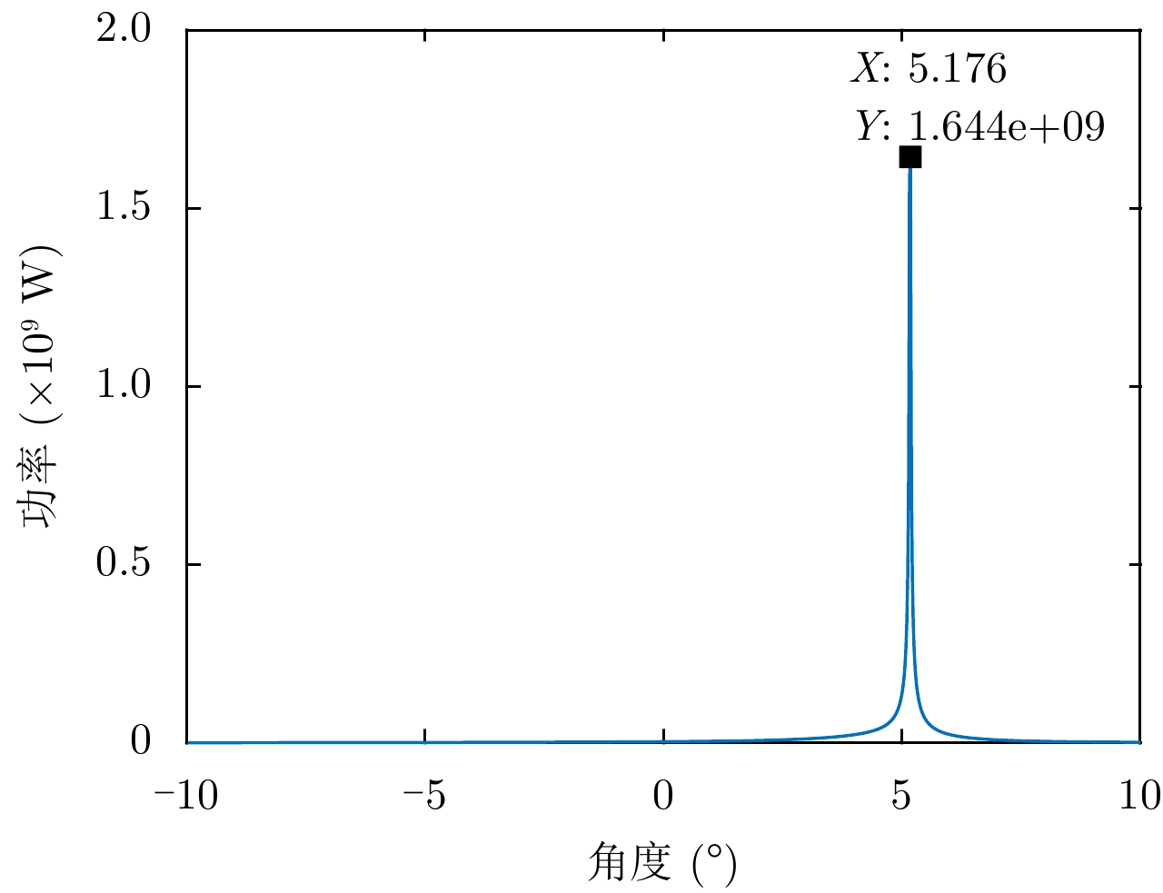 图6即为利用获得的高干信比的干扰样本估计的欺骗干扰方向,与设置值5.17°对比来看误差为0.006°,这一误差值在实际数据处理中远小于误差容忍值。