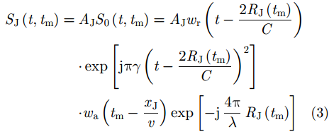 上节中,通过对比干扰机处真实SAR回波与欺骗干扰回波的差异,发现欺骗干扰是可以由干扰机对真实SAR信号进行调制得到的。由式(8)中与