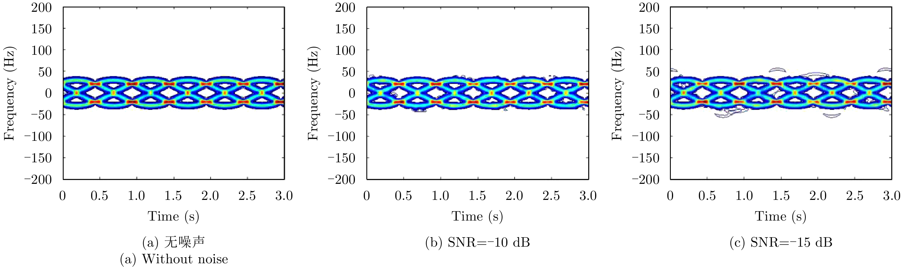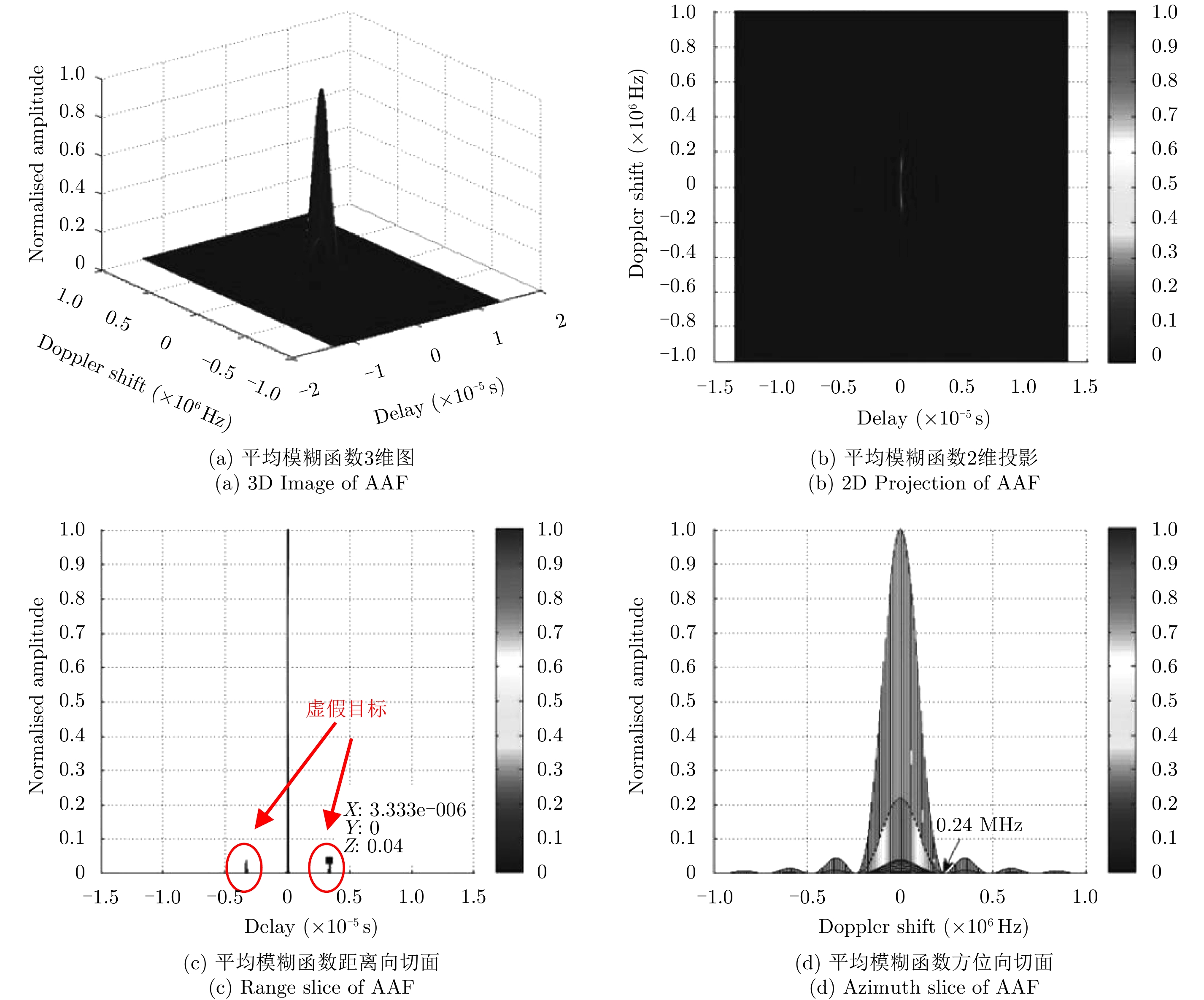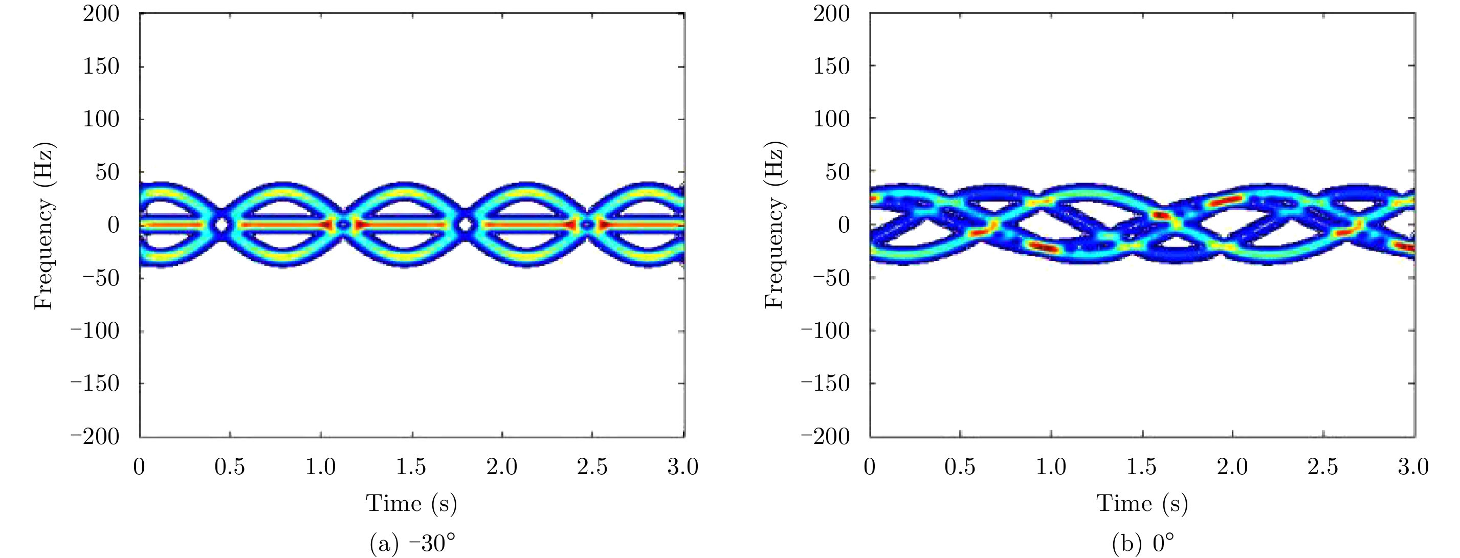 针对微动目标特征提取问题,该文提出了一种正弦调频Fourier-Bessel变换(Sinusoidal Frequency Modulation Fourier-Bessel Transform, SFMFBT),并基于SFMFBT提出了一种雷达目标微动频率的精确提取方法。首先给出了SFMFBT的定义,分析了变换的相关性质,并通过频率提取误差分析给出了一种修正方法,最后讨论了离散信号处理中的若干问题。相比于傅里叶-贝塞尔变换,SFMFBT将k分辨率参数引入Bessel函数基,克服了其对应频率不可细分的缺陷,并且通过误差分析提高了信号分解精度,从而将Bessel函数基引入特征提取领域,拓展了其应用范围。仿真结果表明该方法同样适用于微动群目标频率提取与回波分离重构,且在SNR>0 dB条件下具有较好的鲁棒性。 针对微动目标特征提取问题,该文提出了一种正弦调频Fourier-Bessel变换(Sinusoidal Frequency Modulation Fourier-Bessel Transform, SFMFBT),并基于SFMFBT提出了一种雷达目标微动频率的精确提取方法。首先给出了SFMFBT的定义,分析了变换的相关性质,并通过频率提取误差分析给出了一种修正方法,最后讨论了离散信号处理中的若干问题。相比于傅里叶-贝塞尔变换,SFMFBT将k分辨率参数引入Bessel函数基,克服了其对应频率不可细分的缺陷,并且通过误差分析提高了信号分解精度,从而将Bessel函数基引入特征提取领域,拓展了其应用范围。仿真结果表明该方法同样适用于微动群目标频率提取与回波分离重构,且在SNR>0 dB条件下具有较好的鲁棒性。