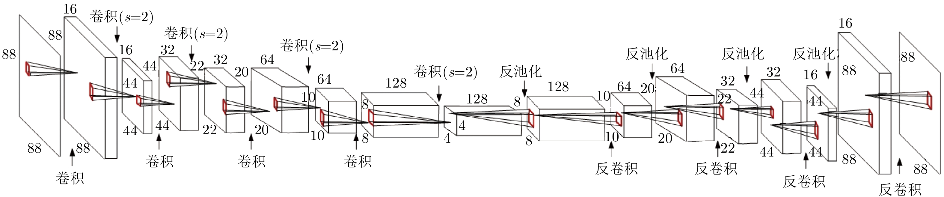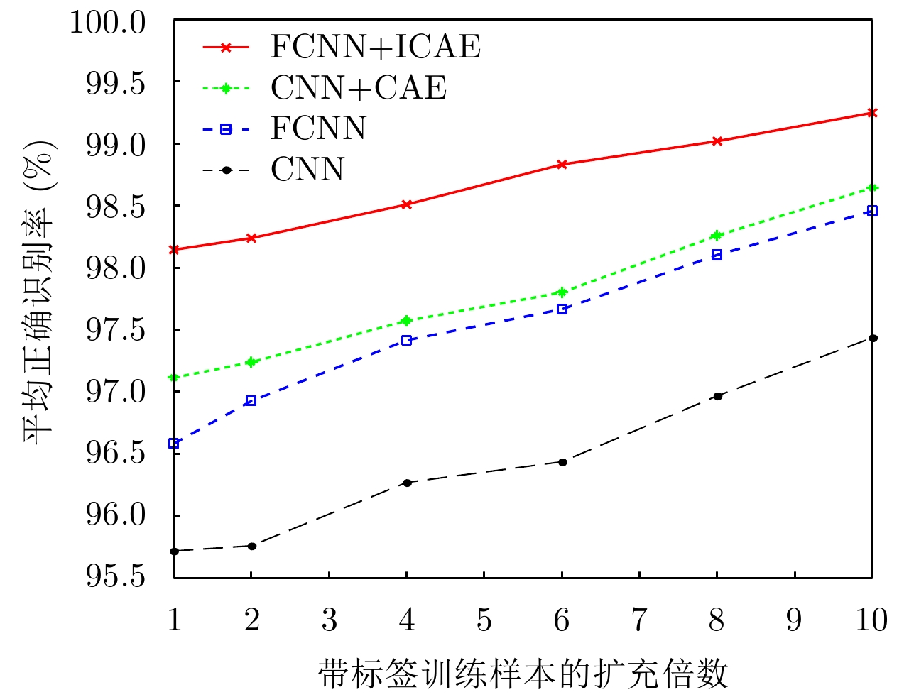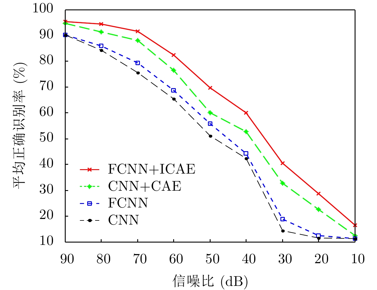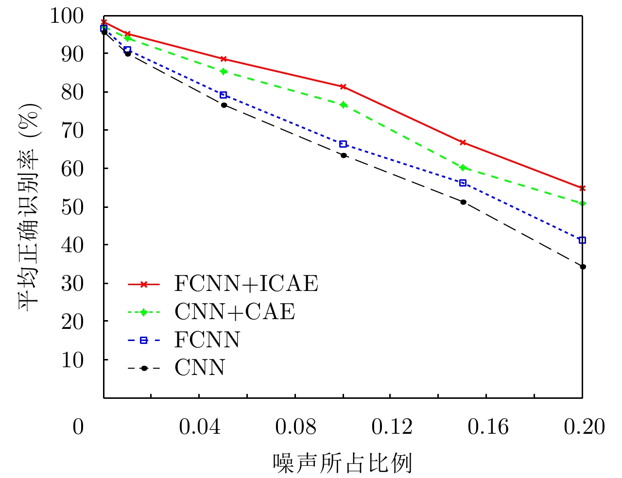 近年来,基于卷积神经网络(Convolutional Neural Network, CNN)的合成孔径雷达(Synthetic Aperture Radar, SAR)图像目标识别得到深入研究。全卷积神经网络(Fully Convolutional Neural Network, FCNN)是CNN结构上的改进,它比CNN能获得更高的识别率,但在训练过程中仍需要大量的带标签训练样本。该文提出一种基于FCNN和改进的卷积自编码器(Improved Convolutional Auto-Encoder, ICAE)的SAR图像目标识别方法,即先用ICAE无监督训练方式获得的编码器网络参数初始化FCNN的部分参数,后用带标签训练样本对FCNN进行训练。基于MSTAR数据集的十类目标分类实验结果表明,在不扩充带标签训练样本的情况下,该方法不仅能获得98.14%的平均正确识别率,而且具有较强的抗噪声能力。 近年来,基于卷积神经网络(Convolutional Neural Network, CNN)的合成孔径雷达(Synthetic Aperture Radar, SAR)图像目标识别得到深入研究。全卷积神经网络(Fully Convolutional Neural Network, FCNN)是CNN结构上的改进,它比CNN能获得更高的识别率,但在训练过程中仍需要大量的带标签训练样本。该文提出一种基于FCNN和改进的卷积自编码器(Improved Convolutional Auto-Encoder, ICAE)的SAR图像目标识别方法,即先用ICAE无监督训练方式获得的编码器网络参数初始化FCNN的部分参数,后用带标签训练样本对FCNN进行训练。基于MSTAR数据集的十类目标分类实验结果表明,在不扩充带标签训练样本的情况下,该方法不仅能获得98.14%的平均正确识别率,而且具有较强的抗噪声能力。
