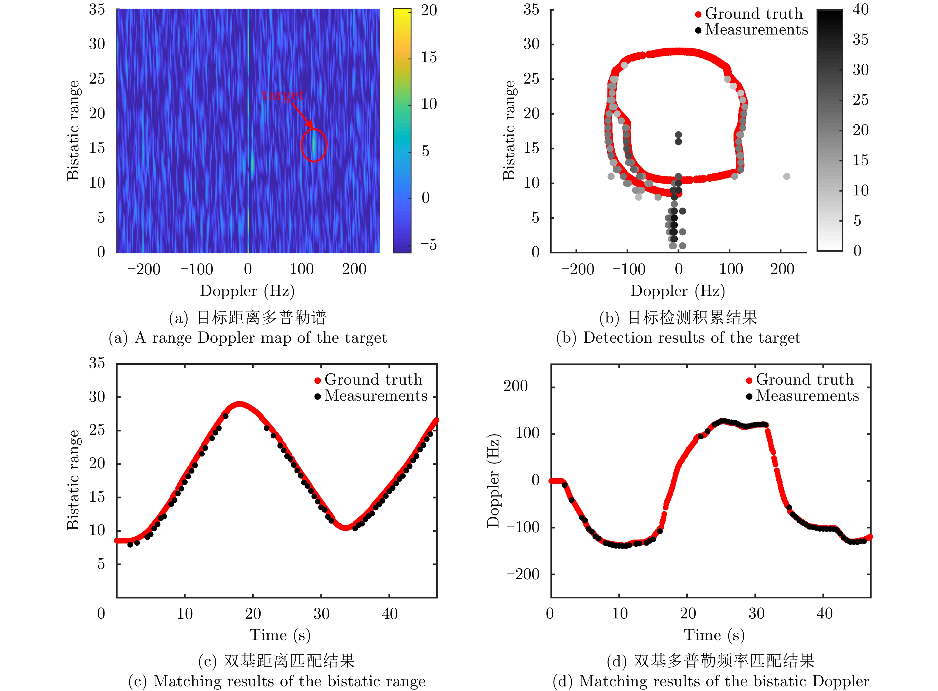 外辐射源雷达系统反隐身性能强、隐蔽性好、生存能力强,在军用和民用领域都具有十分广阔的应用场景。为了有效地对低信噪比的弱目标进行检测,并且同时满足系统的实时性需求,该文针对外辐射源雷达系统的特点,依据检测前跟踪算法的思想,提出一种基于信息积累的外辐射源雷达系统目标检测方法。该方法首先将目标状态空间离散格点化,然后利用递推贝叶斯滤波的思想在多帧观测数据之间进行目标状态信息的传递和积累,最后利用信息熵作为判决目标是否存在的条件,避免了对目标存在和目标不存在两种状态之间转移概率模型的先验假设,是一种实现简单、计算复杂度低、可并行度高的目标检测方法。实验结果表明,该方法不仅运行时间短,实时性能强,而且具有良好的检测性能和一定的鲁棒性。 外辐射源雷达系统反隐身性能强、隐蔽性好、生存能力强,在军用和民用领域都具有十分广阔的应用场景。为了有效地对低信噪比的弱目标进行检测,并且同时满足系统的实时性需求,该文针对外辐射源雷达系统的特点,依据检测前跟踪算法的思想,提出一种基于信息积累的外辐射源雷达系统目标检测方法。该方法首先将目标状态空间离散格点化,然后利用递推贝叶斯滤波的思想在多帧观测数据之间进行目标状态信息的传递和积累,最后利用信息熵作为判决目标是否存在的条件,避免了对目标存在和目标不存在两种状态之间转移概率模型的先验假设,是一种实现简单、计算复杂度低、可并行度高的目标检测方法。实验结果表明,该方法不仅运行时间短,实时性能强,而且具有良好的检测性能和一定的鲁棒性。