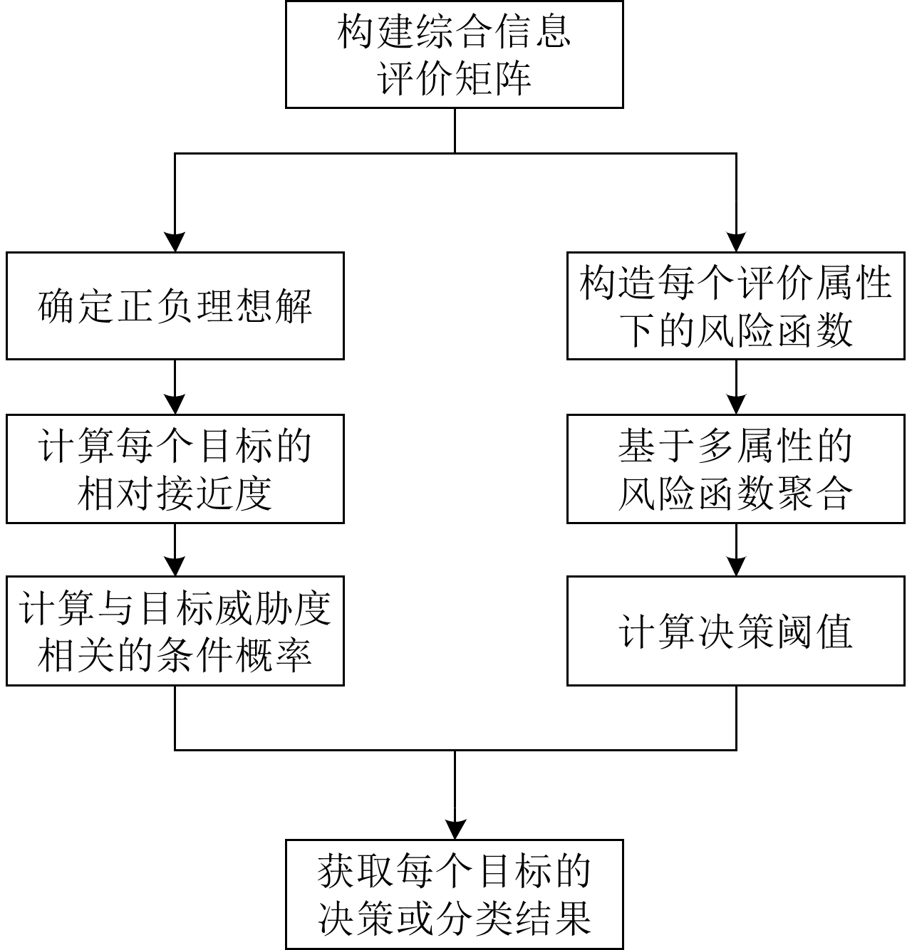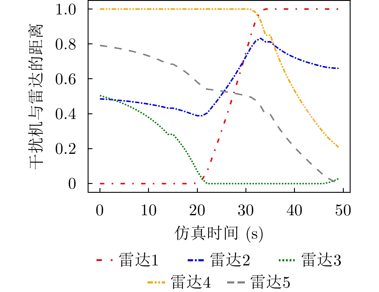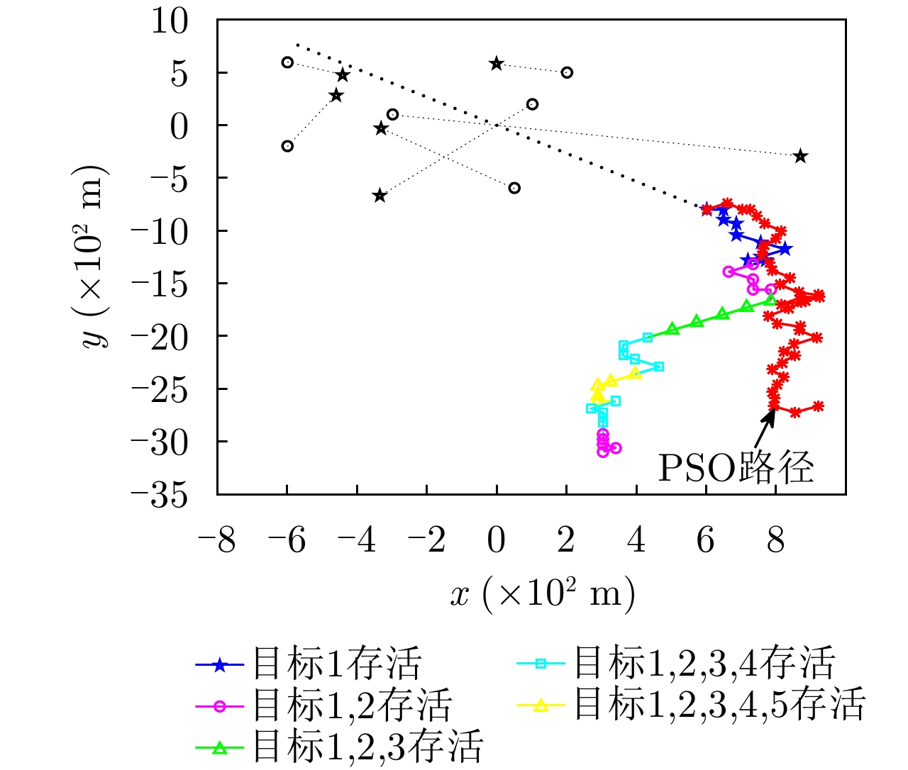为了降低无人机执行侦察任务时被摧毁的概率,该文提出一种有效减少威胁的路径规划算法。首先利用高分辨率机载雷达对多扩展目标进行稳健的跟踪估计,然后根据三向决策规则对各目标按威胁进行分类,并利用模糊理想解相似性排序技术(TOPSIS)的方法计算目标威胁度,综合多任务决策联合优化(联合评估目标威胁度和目标跟踪质量)作为评价准则对无人机进行路径规划。仿真实验表明,模糊威胁度评估方法在多扩展目标跟踪环境下是有效的,所提无人机路径规划算法是合理的,在不损失目标跟踪精度的条件下有效降低了目标威胁度。 为了降低无人机执行侦察任务时被摧毁的概率,该文提出一种有效减少威胁的路径规划算法。首先利用高分辨率机载雷达对多扩展目标进行稳健的跟踪估计,然后根据三向决策规则对各目标按威胁进行分类,并利用模糊理想解相似性排序技术(TOPSIS)的方法计算目标威胁度,综合多任务决策联合优化(联合评估目标威胁度和目标跟踪质量)作为评价准则对无人机进行路径规划。仿真实验表明,模糊威胁度评估方法在多扩展目标跟踪环境下是有效的,所提无人机路径规划算法是合理的,在不损失目标跟踪精度的条件下有效降低了目标威胁度。