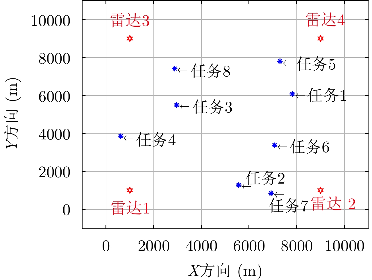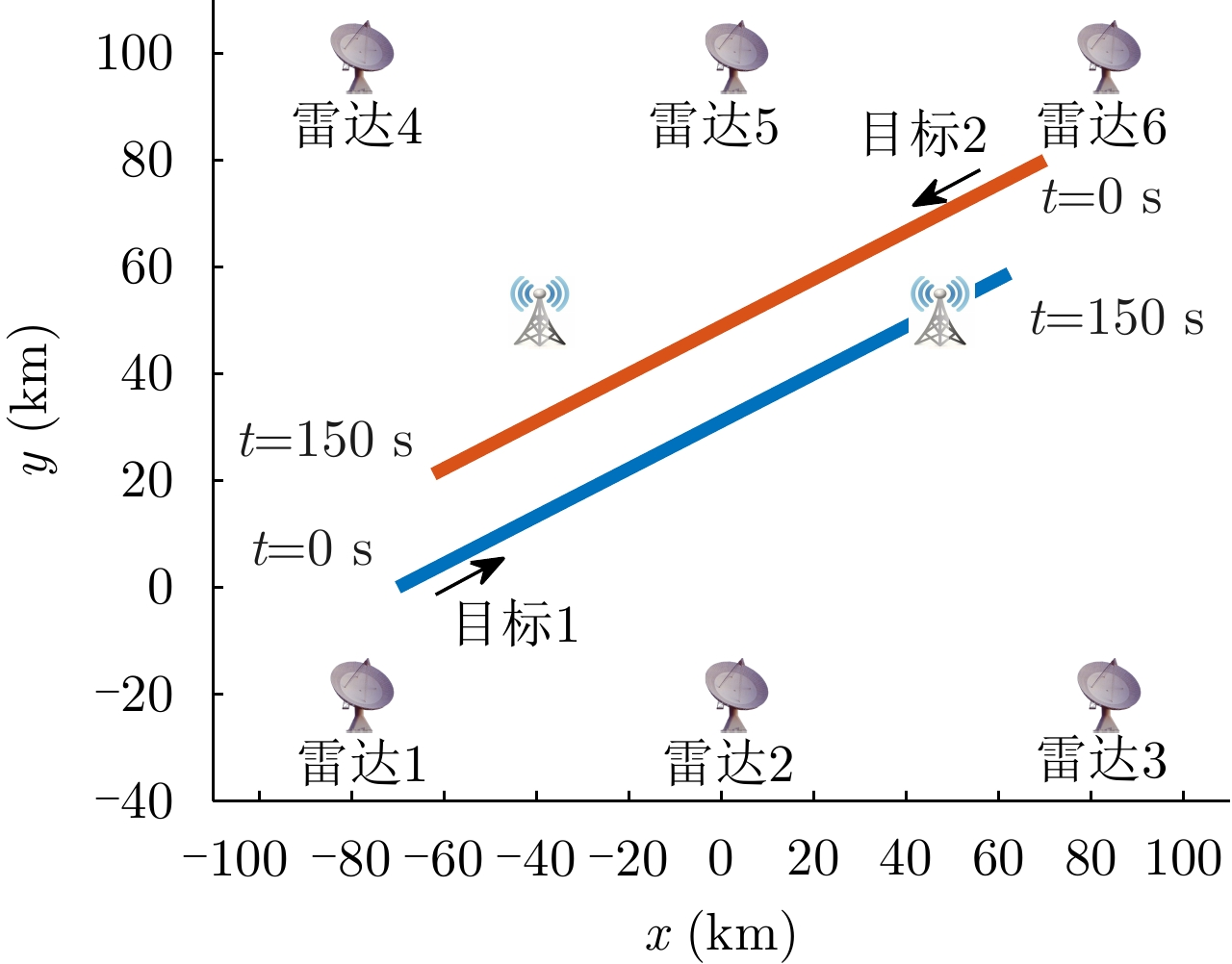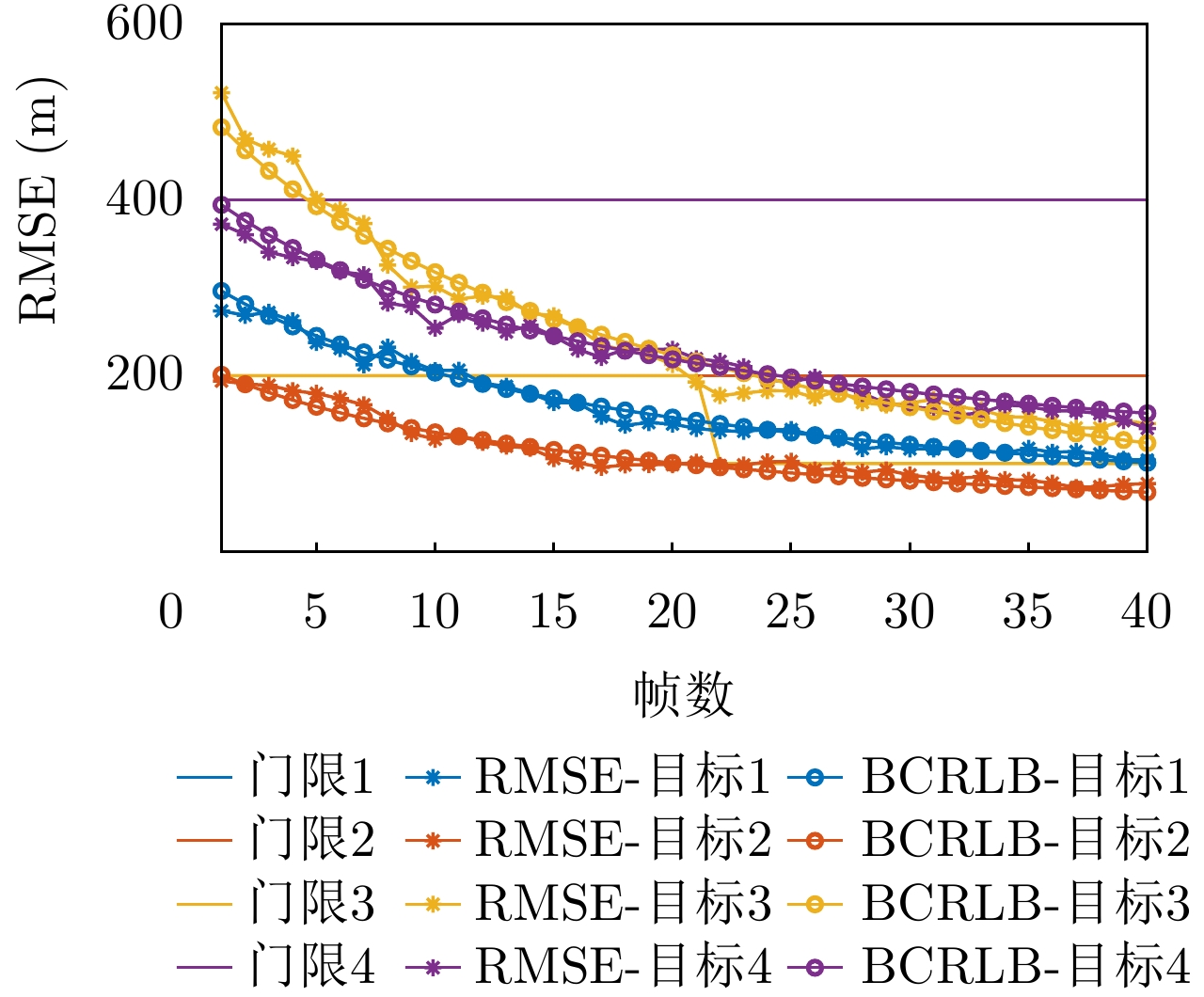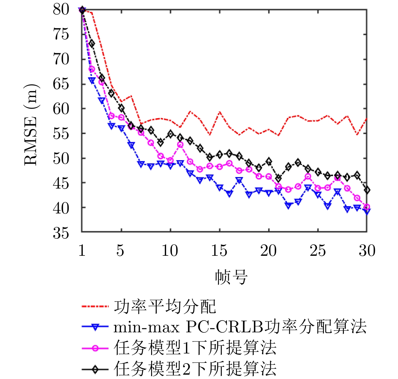 该文针对频谱共存环境下多目标跟踪资源分配问题,提出了组网雷达功率时间联合优化算法。首先,推导了包含雷达节点选择、发射功率和驻留时间等射频辐射参数的预测贝叶斯克拉默-拉奥下界(BCRLB),以此作为多目标跟踪精度的衡量指标;在此基础上,以最小化多目标跟踪BCRLB为优化目标,以满足给定的组网雷达射频资源和预先设定的通信基站最大可容忍干扰能量阈值为约束条件,建立了频谱共存下面向多目标跟踪的组网雷达功率时间联合优化分配模型,对雷达节点选择、发射功率和驻留时间进行自适应联合优化配置;然后,针对上述优化问题,采用两步分解法将其分解为多个子凸问题,并结合半正定规划(SDP)算法和循环最小化算法进行求解。仿真结果表明,与现有算法相比,所提算法能够在保证通信基站正常工作的条件下,有效提高组网雷达的多目标跟踪精度。 该文针对频谱共存环境下多目标跟踪资源分配问题,提出了组网雷达功率时间联合优化算法。首先,推导了包含雷达节点选择、发射功率和驻留时间等射频辐射参数的预测贝叶斯克拉默-拉奥下界(BCRLB),以此作为多目标跟踪精度的衡量指标;在此基础上,以最小化多目标跟踪BCRLB为优化目标,以满足给定的组网雷达射频资源和预先设定的通信基站最大可容忍干扰能量阈值为约束条件,建立了频谱共存下面向多目标跟踪的组网雷达功率时间联合优化分配模型,对雷达节点选择、发射功率和驻留时间进行自适应联合优化配置;然后,针对上述优化问题,采用两步分解法将其分解为多个子凸问题,并结合半正定规划(SDP)算法和循环最小化算法进行求解。仿真结果表明,与现有算法相比,所提算法能够在保证通信基站正常工作的条件下,有效提高组网雷达的多目标跟踪精度。