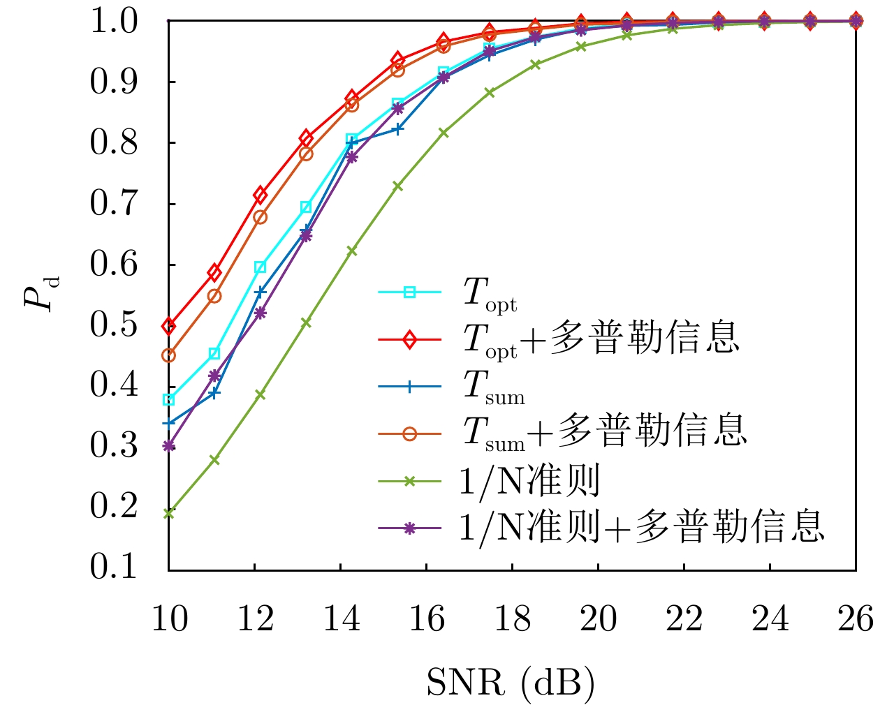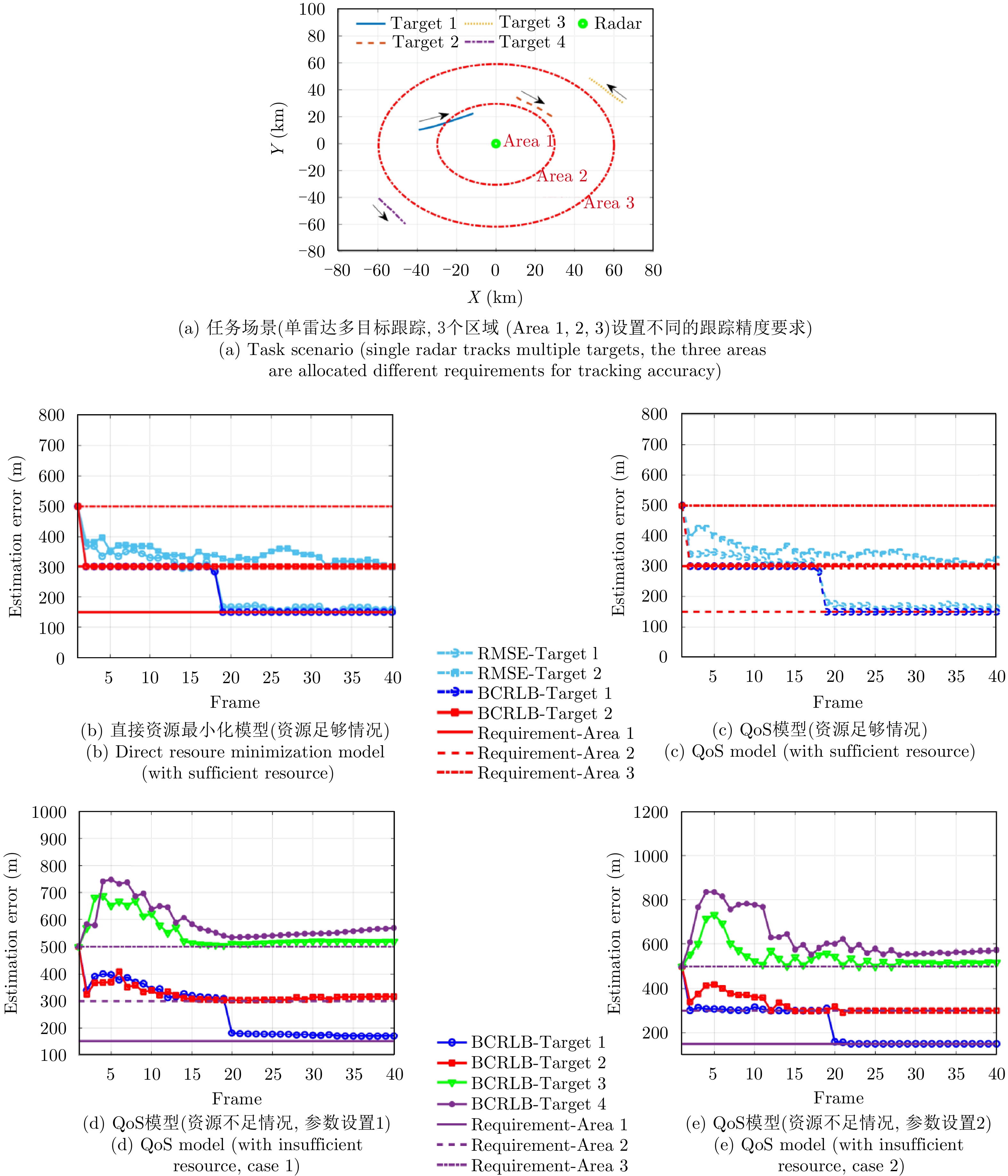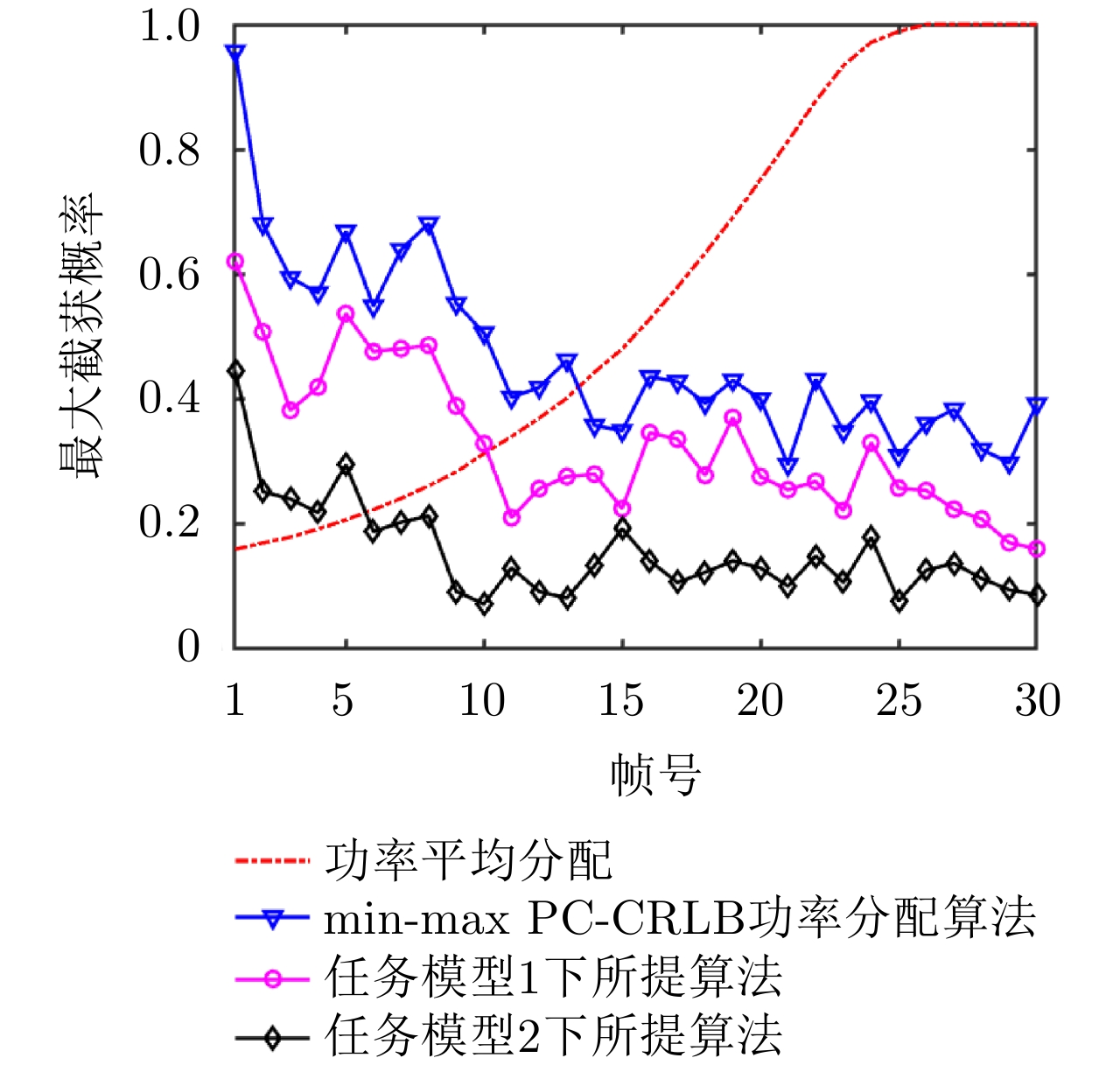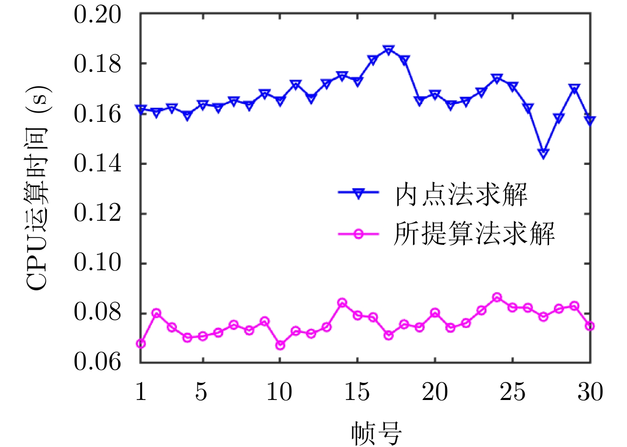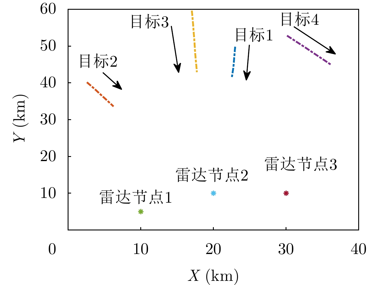 该文针对频谱共存环境下多目标跟踪资源分配问题,提出了组网雷达功率时间联合优化算法。首先,推导了包含雷达节点选择、发射功率和驻留时间等射频辐射参数的预测贝叶斯克拉默-拉奥下界(BCRLB),以此作为多目标跟踪精度的衡量指标;在此基础上,以最小化多目标跟踪BCRLB为优化目标,以满足给定的组网雷达射频资源和预先设定的通信基站最大可容忍干扰能量阈值为约束条件,建立了频谱共存下面向多目标跟踪的组网雷达功率时间联合优化分配模型,对雷达节点选择、发射功率和驻留时间进行自适应联合优化配置;然后,针对上述优化问题,采用两步分解法将其分解为多个子凸问题,并结合半正定规划(SDP)算法和循环最小化算法进行求解。仿真结果表明,与现有算法相比,所提算法能够在保证通信基站正常工作的条件下,有效提高组网雷达的多目标跟踪精度。 该文针对频谱共存环境下多目标跟踪资源分配问题,提出了组网雷达功率时间联合优化算法。首先,推导了包含雷达节点选择、发射功率和驻留时间等射频辐射参数的预测贝叶斯克拉默-拉奥下界(BCRLB),以此作为多目标跟踪精度的衡量指标;在此基础上,以最小化多目标跟踪BCRLB为优化目标,以满足给定的组网雷达射频资源和预先设定的通信基站最大可容忍干扰能量阈值为约束条件,建立了频谱共存下面向多目标跟踪的组网雷达功率时间联合优化分配模型,对雷达节点选择、发射功率和驻留时间进行自适应联合优化配置;然后,针对上述优化问题,采用两步分解法将其分解为多个子凸问题,并结合半正定规划(SDP)算法和循环最小化算法进行求解。仿真结果表明,与现有算法相比,所提算法能够在保证通信基站正常工作的条件下,有效提高组网雷达的多目标跟踪精度。