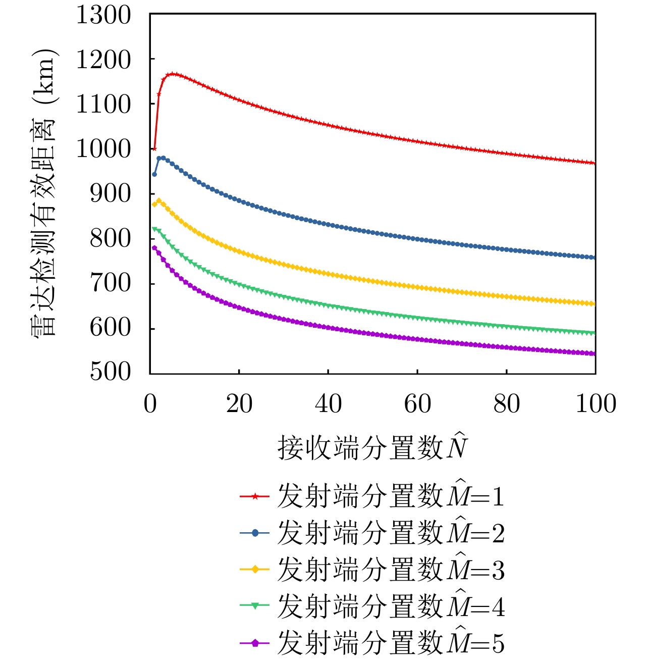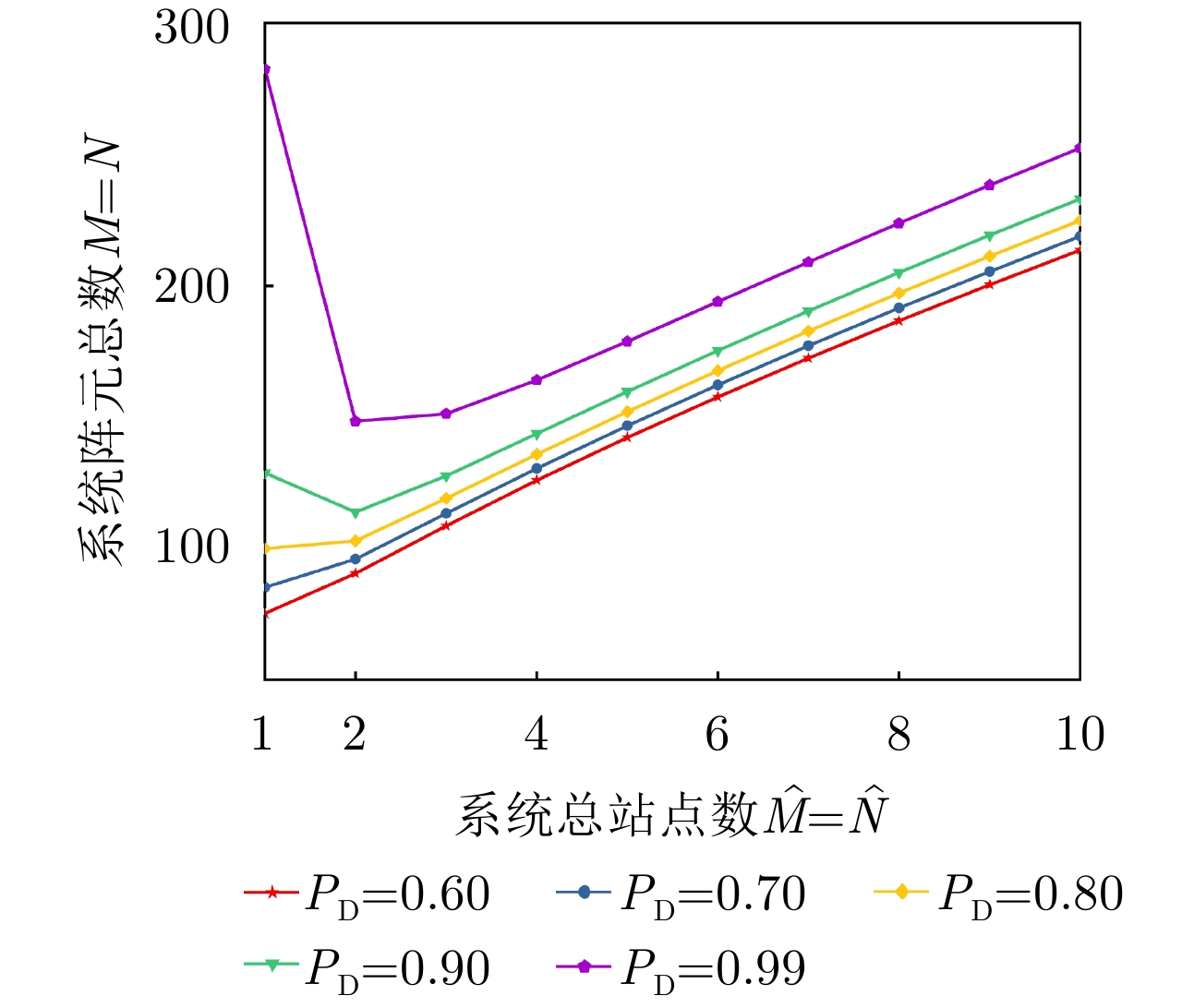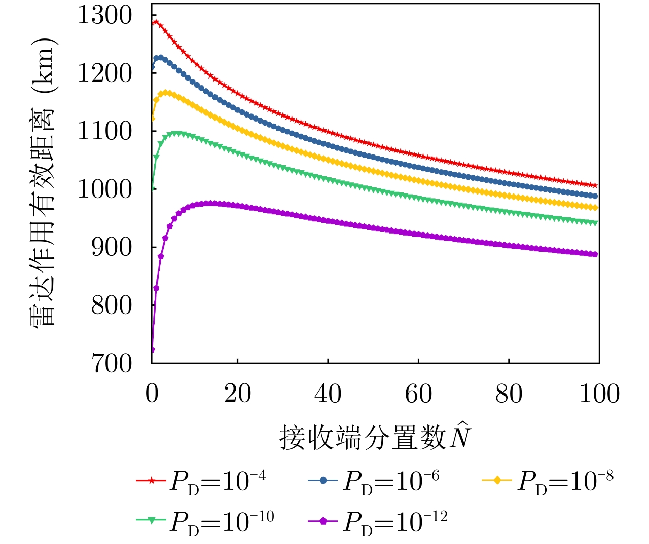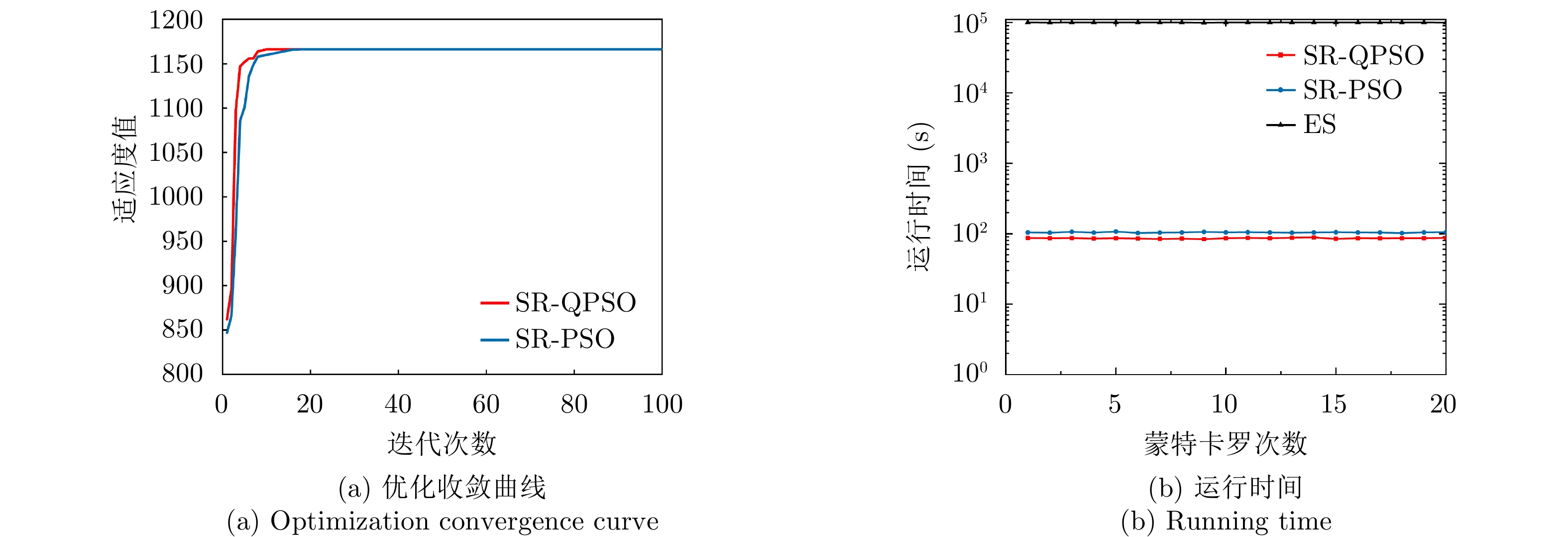 该文建立混合分布式相控阵-多输入多输出(PA-MIMO)雷达系统模型,推导出基于Neyman-Pearson (NP)准则的似然比检测(LRT)器,在收发两端实施子阵级和阵元级优化部署,达到对雷达系统中相参增益和空间分集增益协调优化的目的。针对整数规划的子阵、阵元部署模型,提出基于量子粒子群优化的随机取整(SR-QPSO)求解算法,在较少的迭代步骤内获得最优阵元配置策略,实现子阵级和阵元级之间的联合优化。最后,通过对3个典型优化问题进行数值仿真,所提出的混合分布式PA-MIMO雷达系统优化配置较其他典型雷达系统有较大提升,探测概率达到0.98,有效距离达到1166.3 km,探测性能得到显著提升。 该文建立混合分布式相控阵-多输入多输出(PA-MIMO)雷达系统模型,推导出基于Neyman-Pearson (NP)准则的似然比检测(LRT)器,在收发两端实施子阵级和阵元级优化部署,达到对雷达系统中相参增益和空间分集增益协调优化的目的。针对整数规划的子阵、阵元部署模型,提出基于量子粒子群优化的随机取整(SR-QPSO)求解算法,在较少的迭代步骤内获得最优阵元配置策略,实现子阵级和阵元级之间的联合优化。最后,通过对3个典型优化问题进行数值仿真,所提出的混合分布式PA-MIMO雷达系统优化配置较其他典型雷达系统有较大提升,探测概率达到0.98,有效距离达到1166.3 km,探测性能得到显著提升。