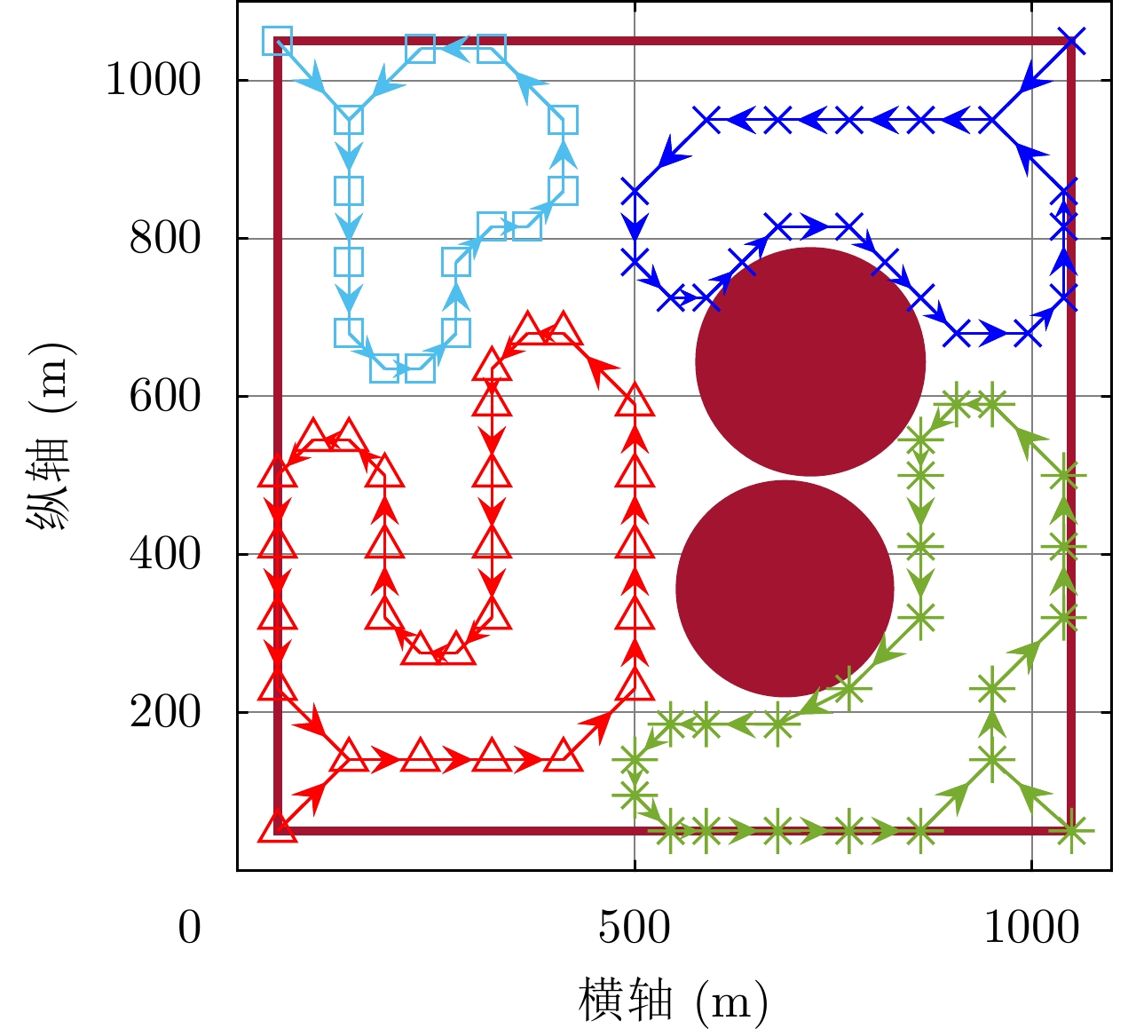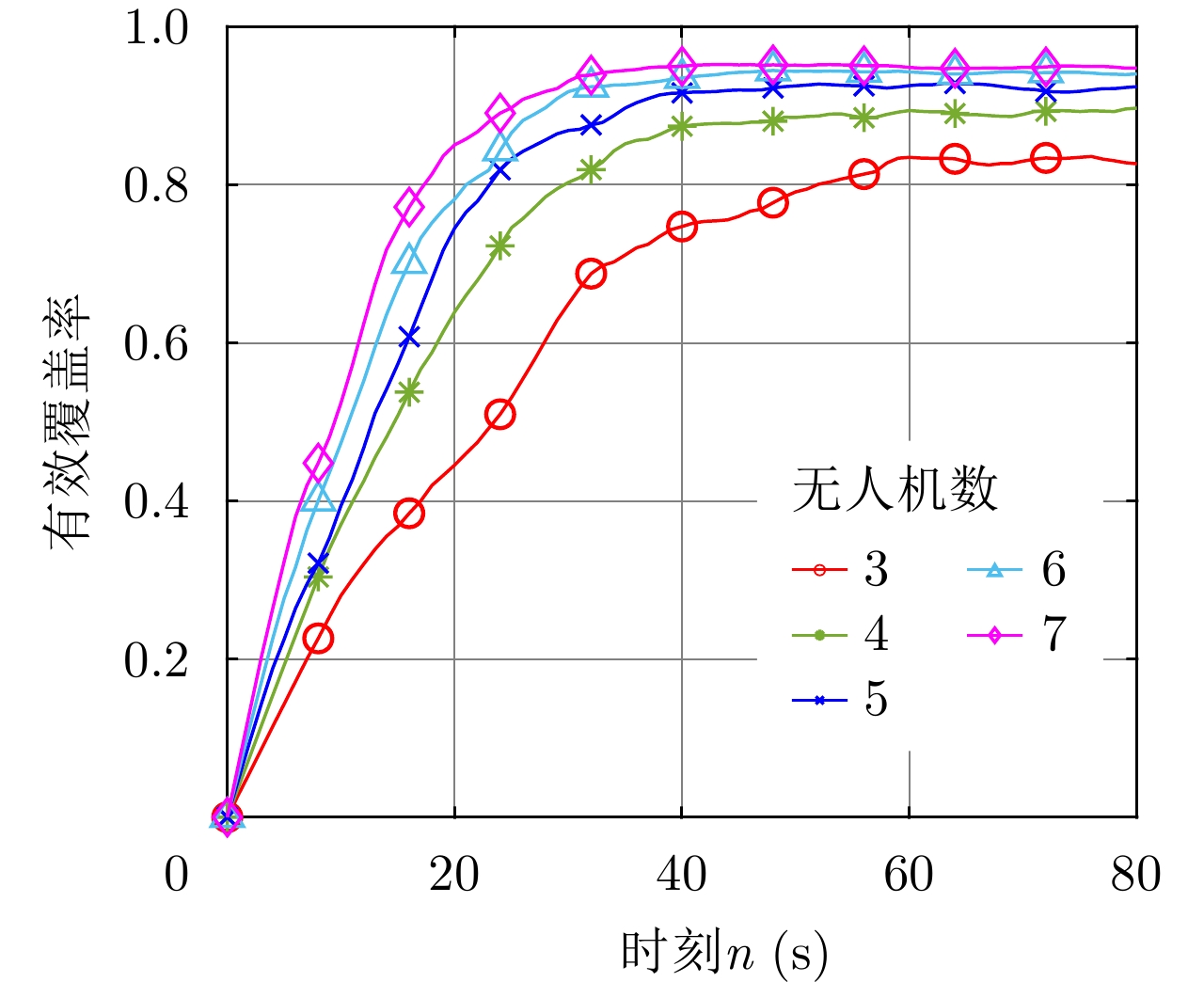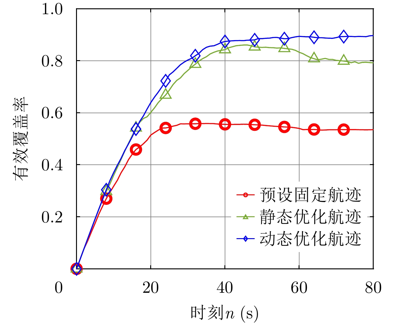传统面向区域覆盖的多机航迹优化方法大多针对静态环境建立优化模型,在复杂动态环境下面临着模型失配的挑战。因此,该文提出了一种多机雷达协同区域动态覆盖航迹优化方法。首先,该方法引入衰减因子来表征机载雷达对动态环境的实际覆盖效果,将动态覆盖背景下的区域覆盖率作为优化函数,并结合待优化多维航迹控制参数约束,构建了多机雷达协同区域动态覆盖航迹优化的数学模型。然后,采用随机优化法对协同区域动态覆盖航迹优化问题进行了求解。最后,仿真实验表明,相对于采用预设航迹的多机雷达搜索模式,所提航迹优化方法能够显著提高动态区域的动态覆盖性能,且相较于面向静态环境的传统航迹优化模型,动态覆盖性能平均提升约6%。 传统面向区域覆盖的多机航迹优化方法大多针对静态环境建立优化模型,在复杂动态环境下面临着模型失配的挑战。因此,该文提出了一种多机雷达协同区域动态覆盖航迹优化方法。首先,该方法引入衰减因子来表征机载雷达对动态环境的实际覆盖效果,将动态覆盖背景下的区域覆盖率作为优化函数,并结合待优化多维航迹控制参数约束,构建了多机雷达协同区域动态覆盖航迹优化的数学模型。然后,采用随机优化法对协同区域动态覆盖航迹优化问题进行了求解。最后,仿真实验表明,相对于采用预设航迹的多机雷达搜索模式,所提航迹优化方法能够显著提高动态区域的动态覆盖性能,且相较于面向静态环境的传统航迹优化模型,动态覆盖性能平均提升约6%。