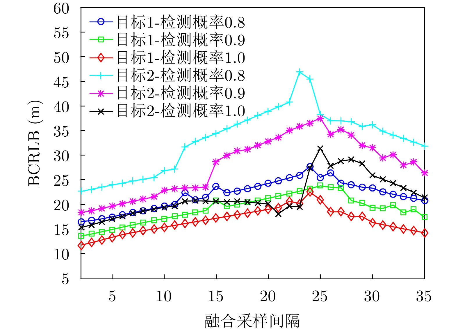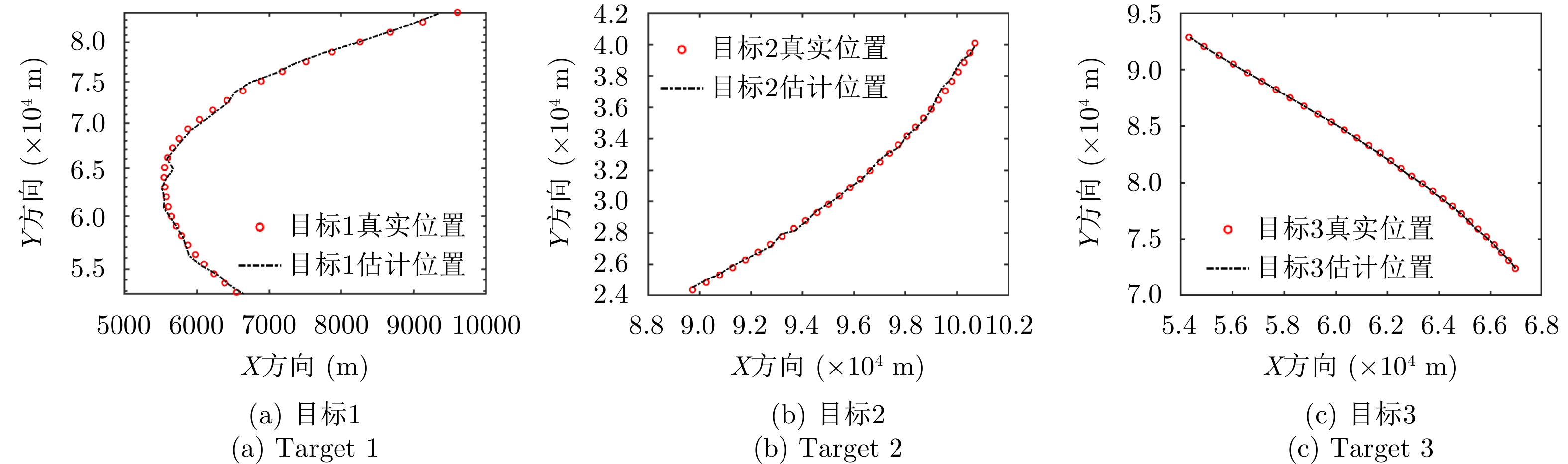 该文针对异步多目标跟踪场景,研究了非理想检测下的异构多雷达网络功率时间联合优化问题。首先,将各融合采样间隔内得到的来自不同雷达节点的所有异步量测信息融合为复合量测信息,结合该复合量测信息推导了非理想检测下包含雷达节点选择、辐射功率和驻留时间等参数的异步目标跟踪误差贝叶斯克拉美罗下界(BCRLB)解析表达式,并将其作为异步多目标跟踪精度的衡量指标。在此基础上,建立了非理想检测下面向异步多目标跟踪的异构多雷达网络功率时间联合优化模型,即以最小化异步多目标跟踪误差为优化目标,以满足给定的系统辐射资源限制为约束条件,对不同雷达网络中雷达节点的选择方式、辐射功率和驻留时间等发射参数进行自适应联合优化设计,从而提升异构多雷达网络的异步多目标跟踪精度。最后,针对上述优化问题,结合序列二次规划(SQP)算法和循环最小法,采用四步分解算法进行求解。仿真结果表明,与现有算法相比,所提算法能够有效提升异构多雷达网络的异步多目标跟踪精度。 该文针对异步多目标跟踪场景,研究了非理想检测下的异构多雷达网络功率时间联合优化问题。首先,将各融合采样间隔内得到的来自不同雷达节点的所有异步量测信息融合为复合量测信息,结合该复合量测信息推导了非理想检测下包含雷达节点选择、辐射功率和驻留时间等参数的异步目标跟踪误差贝叶斯克拉美罗下界(BCRLB)解析表达式,并将其作为异步多目标跟踪精度的衡量指标。在此基础上,建立了非理想检测下面向异步多目标跟踪的异构多雷达网络功率时间联合优化模型,即以最小化异步多目标跟踪误差为优化目标,以满足给定的系统辐射资源限制为约束条件,对不同雷达网络中雷达节点的选择方式、辐射功率和驻留时间等发射参数进行自适应联合优化设计,从而提升异构多雷达网络的异步多目标跟踪精度。最后,针对上述优化问题,结合序列二次规划(SQP)算法和循环最小法,采用四步分解算法进行求解。仿真结果表明,与现有算法相比,所提算法能够有效提升异构多雷达网络的异步多目标跟踪精度。