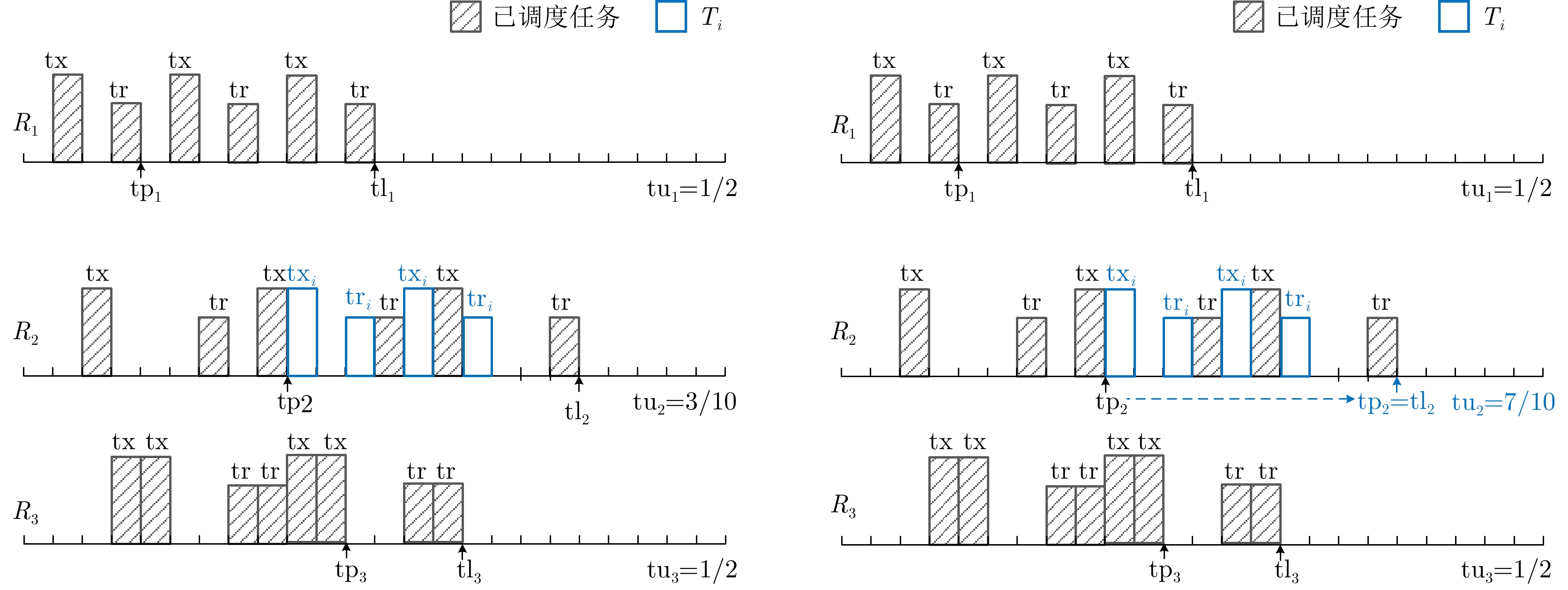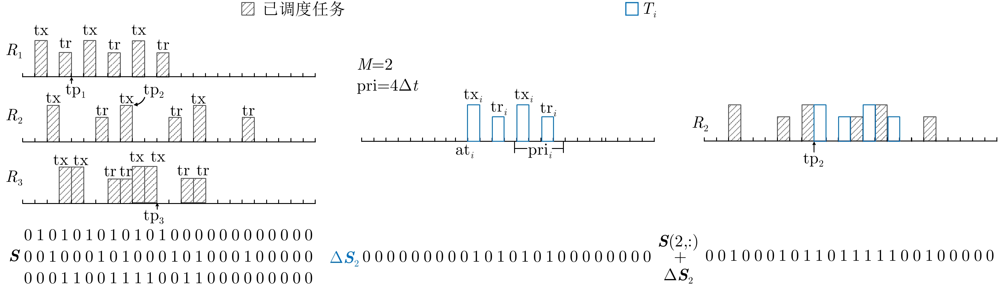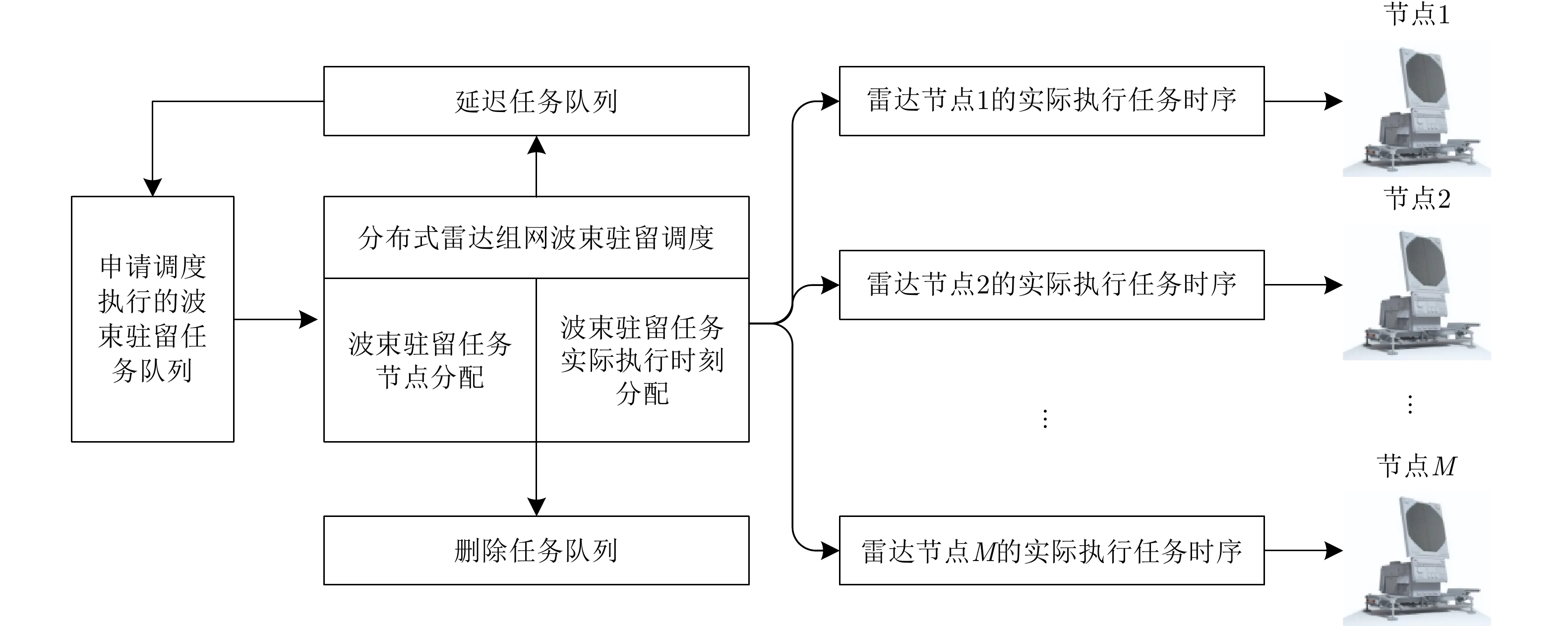 该文针对分布式雷达组网系统提出了一种基于脉冲交错的实时波束驻留调度算法。该算法引入时间指针向量,用于指示何时选择具有最高综合优先级的波束驻留任务,该任务被分配至交错时间利用程度最低的雷达节点,有效减少了调度过程中引入的时间空隙;同时,脉冲交错分析方法决定对于被分配的波束驻留任务是否可以在相应的雷达节点成功调度执行,其中,引入时隙占用矩阵和能量消耗矩阵来表征各个雷达节点的时间与能量资源使用情况,简化了交错分析过程,并实现了具有不同脉冲重复周期与个数的波束驻留任务之间的交错。此外,为了提高波束驻留调度的效率,所提算法还引入交错时间利用率门限自适应选择时间指针的滑动步长。仿真结果表明,该文所提算法能实现分布式雷达组网系统实时的波束驻留调度,并能获得较现有波束驻留调度算法更好的调度性能。 该文针对分布式雷达组网系统提出了一种基于脉冲交错的实时波束驻留调度算法。该算法引入时间指针向量,用于指示何时选择具有最高综合优先级的波束驻留任务,该任务被分配至交错时间利用程度最低的雷达节点,有效减少了调度过程中引入的时间空隙;同时,脉冲交错分析方法决定对于被分配的波束驻留任务是否可以在相应的雷达节点成功调度执行,其中,引入时隙占用矩阵和能量消耗矩阵来表征各个雷达节点的时间与能量资源使用情况,简化了交错分析过程,并实现了具有不同脉冲重复周期与个数的波束驻留任务之间的交错。此外,为了提高波束驻留调度的效率,所提算法还引入交错时间利用率门限自适应选择时间指针的滑动步长。仿真结果表明,该文所提算法能实现分布式雷达组网系统实时的波束驻留调度,并能获得较现有波束驻留调度算法更好的调度性能。