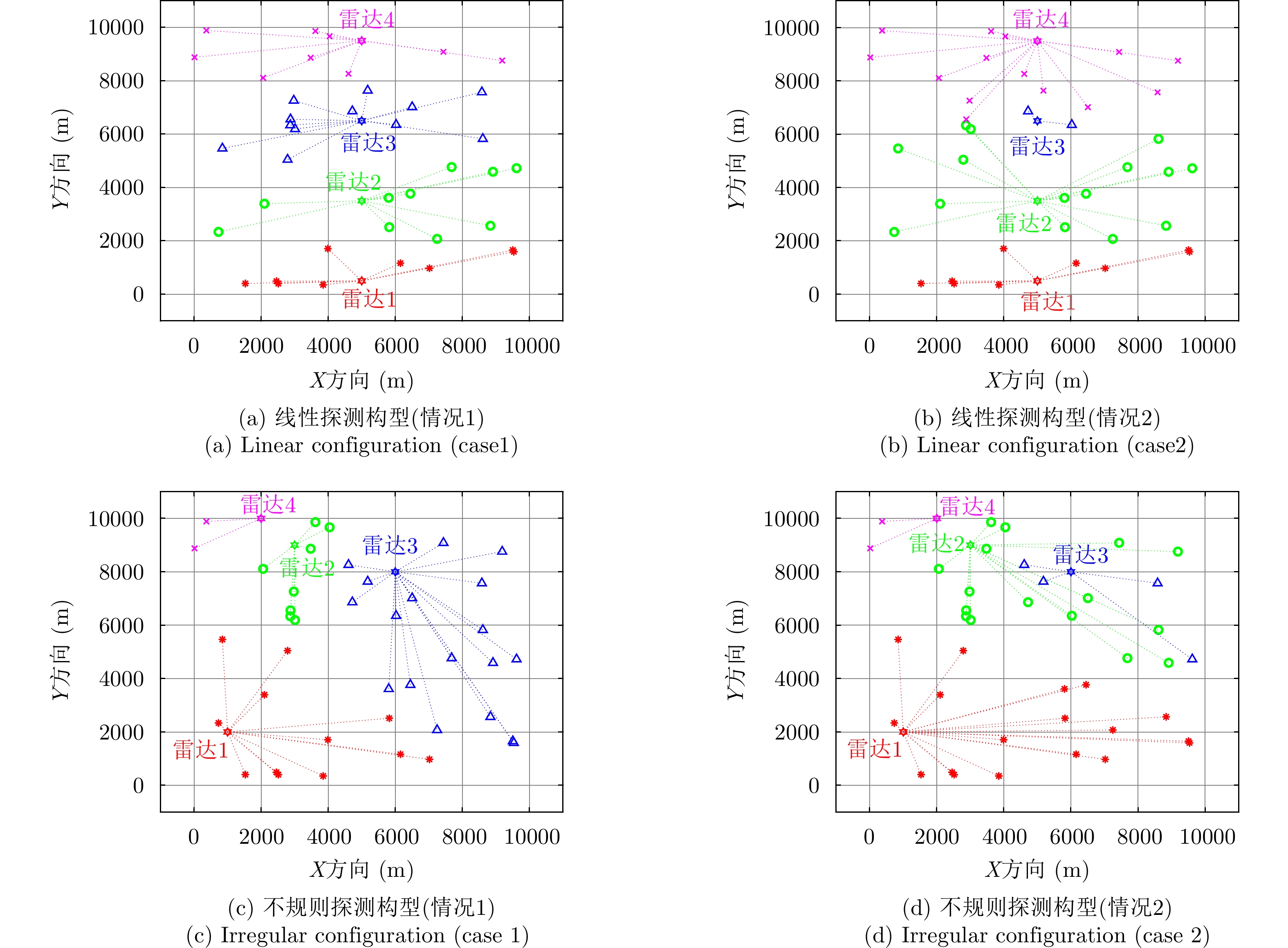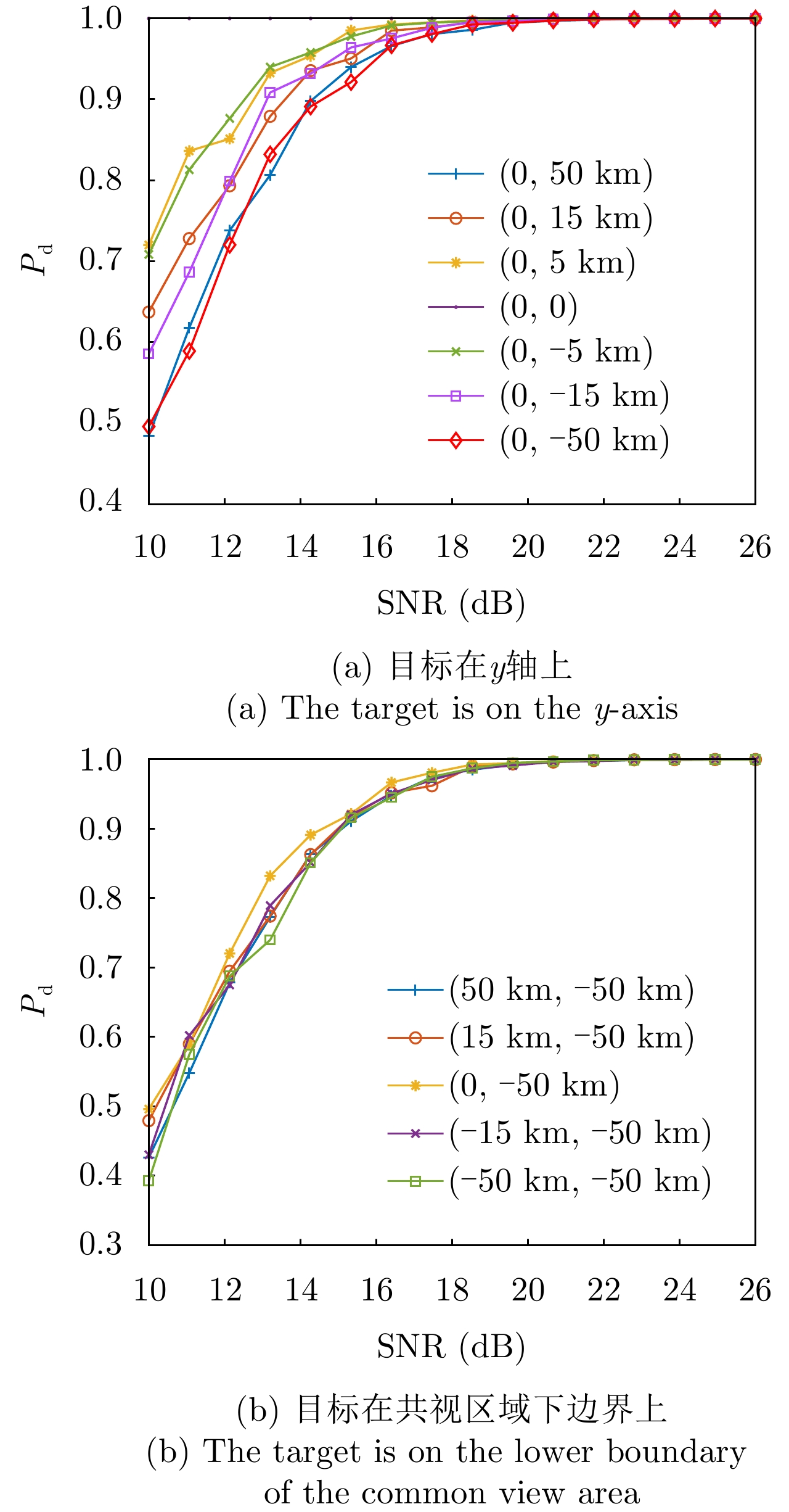 相比于单部雷达系统,空间分置的网络化雷达由于空间分集、频率分集等优势,通常具备更优的探测性能。当前基于网络化雷达系统的融合检测方法大多仅依据目标回波幅度信息,未考虑相参雷达系统能够获取的多普勒信息对融合检测的增益。直观地,网络化雷达系统中不同雷达观测到目标的空间位置与径向速度应当满足一定的物理约束,利用该额外信息应当能够提升目标与虚警的可分性。基于此,该文提出了多普勒信息辅助的网络化雷达融合检测算法:首先利用多雷达站对同一目标角度与多普勒速度观测的耦合性构建观测间需要满足的约束不等式组,然后基于运筹学中两阶段法对该不等式组是否有可行解做出判断,进而对目标是否存在做出判决。仿真实验表明,所提算法能够有效提升网络化雷达系统的融合检测性能。同时,该文还针对所提算法分析了雷达布站位置及目标位置对融合检测性能的影响。 相比于单部雷达系统,空间分置的网络化雷达由于空间分集、频率分集等优势,通常具备更优的探测性能。当前基于网络化雷达系统的融合检测方法大多仅依据目标回波幅度信息,未考虑相参雷达系统能够获取的多普勒信息对融合检测的增益。直观地,网络化雷达系统中不同雷达观测到目标的空间位置与径向速度应当满足一定的物理约束,利用该额外信息应当能够提升目标与虚警的可分性。基于此,该文提出了多普勒信息辅助的网络化雷达融合检测算法:首先利用多雷达站对同一目标角度与多普勒速度观测的耦合性构建观测间需要满足的约束不等式组,然后基于运筹学中两阶段法对该不等式组是否有可行解做出判断,进而对目标是否存在做出判决。仿真实验表明,所提算法能够有效提升网络化雷达系统的融合检测性能。同时,该文还针对所提算法分析了雷达布站位置及目标位置对融合检测性能的影响。