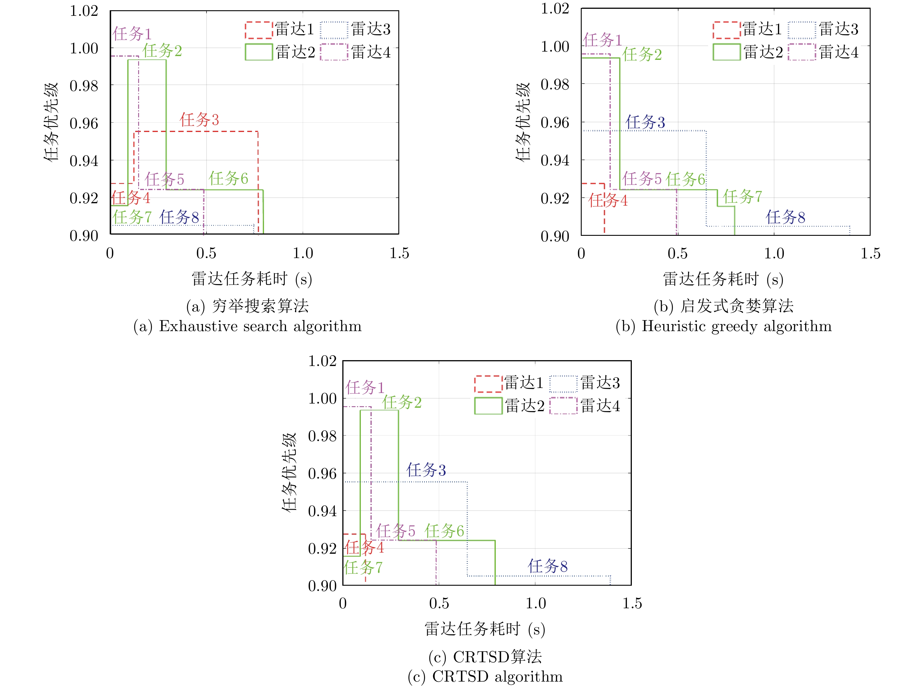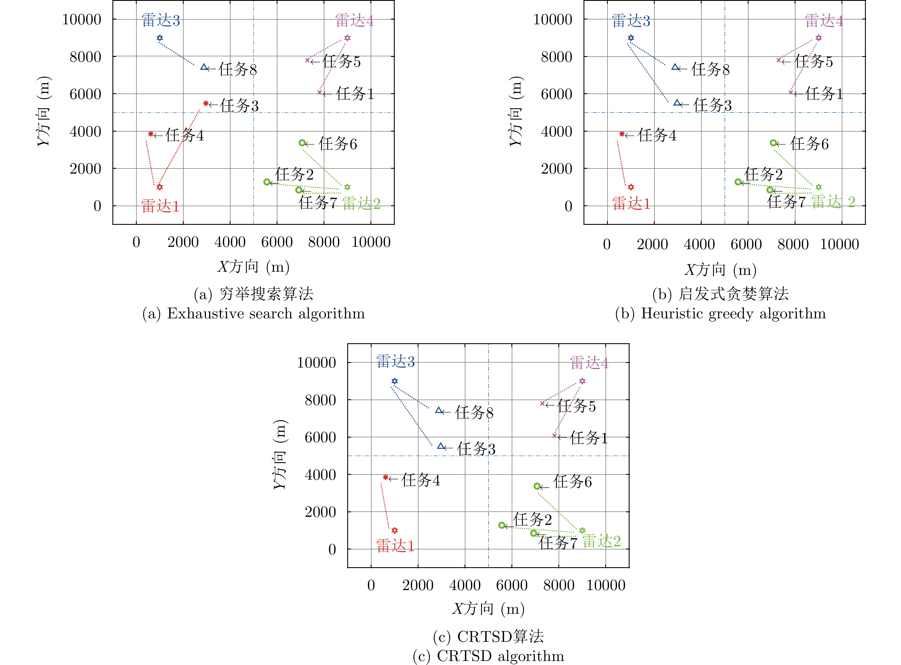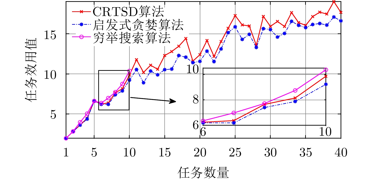 该文针对多雷达协同场景下的多任务实时规划问题,提出了一种基于任务效用最大化的多雷达协同在线任务规划模型。该模型以任务效用函数最大化为目标将多雷达协同任务分配建模成一个基于整数规划的多变量混合优化问题;随后提出了启发式穷举搜索算法和基于凸松弛的两步解耦算法,可在多项式时间内完成了该NP难优化问题的求解,且分别在优化性能和计算效率方面有所侧重。仿真实验表明,相比于可找到最优解的穷举搜索算法,该文提出算法可有效降低任务规划问题复杂度,提升问题求解效率,以满足在线任务分配的实时性要求。 该文针对多雷达协同场景下的多任务实时规划问题,提出了一种基于任务效用最大化的多雷达协同在线任务规划模型。该模型以任务效用函数最大化为目标将多雷达协同任务分配建模成一个基于整数规划的多变量混合优化问题;随后提出了启发式穷举搜索算法和基于凸松弛的两步解耦算法,可在多项式时间内完成了该NP难优化问题的求解,且分别在优化性能和计算效率方面有所侧重。仿真实验表明,相比于可找到最优解的穷举搜索算法,该文提出算法可有效降低任务规划问题复杂度,提升问题求解效率,以满足在线任务分配的实时性要求。
