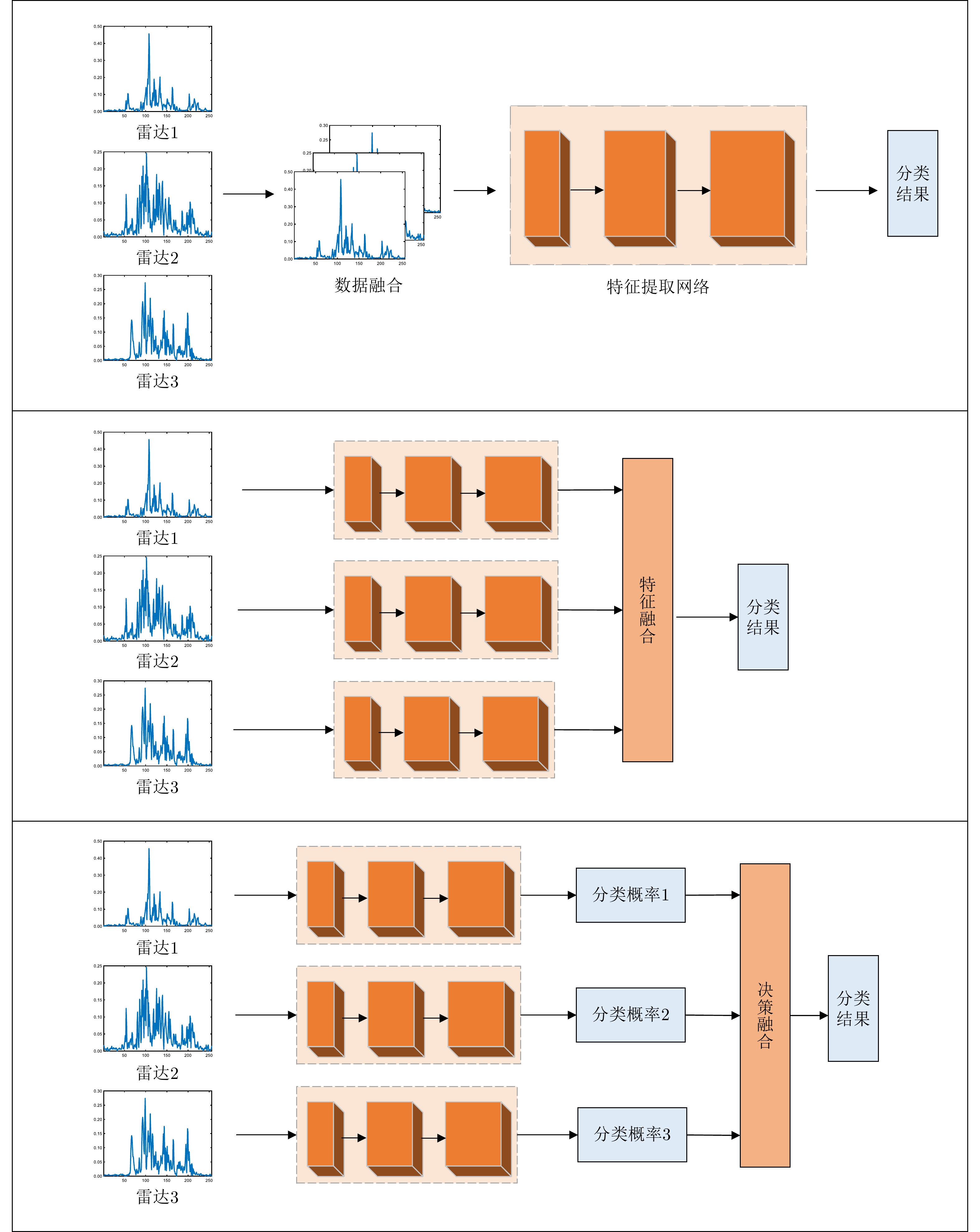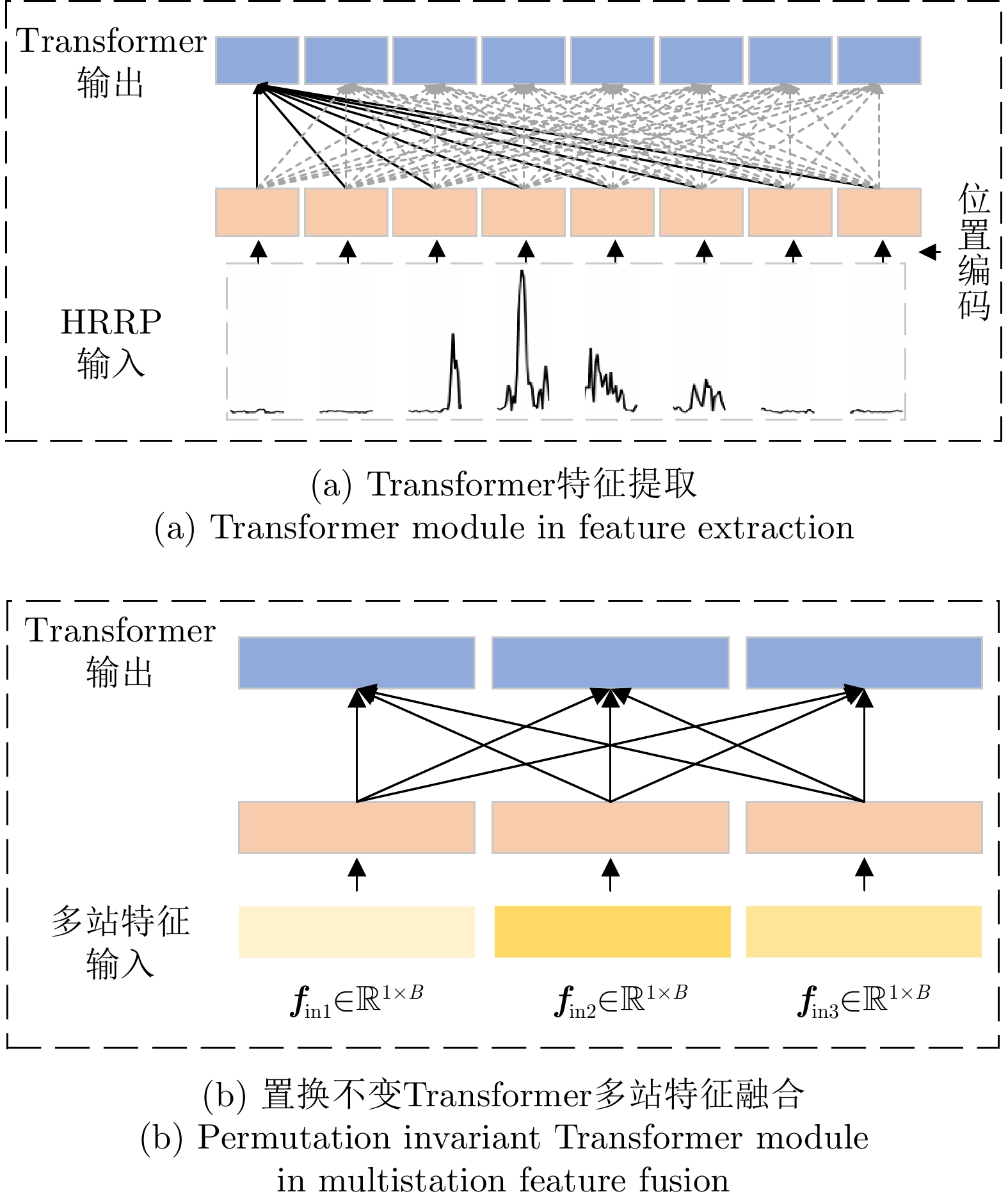 多站协同雷达目标识别旨在利用多站信息的互补性提升识别性能。传统多站协同目标识别方法未直接考虑站间数据差异问题,且通常采用相对简单的融合策略,难以取得准确、稳健的识别性能。该文针对多站协同雷达高分辨距离像(HRRP)目标识别问题,提出了一种基于角度引导的Transformer融合网络。该网络以Transformer作为特征提取主体结构,提取单站HRRP的局部和全局特征。并在此基础上设计了3个新的辅助模块促进多站特征融合学习,角度引导模块、前级特征交互模块以及深层注意力特征融合模块。首先,角度引导模块使用目标方位角度对站间数据差异进行建模,强化了所提特征与多站视角的对应关系,提升了特征稳健性与一致性。其次,前级特征交互模块和深层注意力特征融合模块相结合的融合策略,实现了对各站特征的多阶段层次化融合。最后,基于实测数据模拟多站场景进行协同识别实验,结果表明所提方法能够有效地提升多站协同时的目标识别性能。 多站协同雷达目标识别旨在利用多站信息的互补性提升识别性能。传统多站协同目标识别方法未直接考虑站间数据差异问题,且通常采用相对简单的融合策略,难以取得准确、稳健的识别性能。该文针对多站协同雷达高分辨距离像(HRRP)目标识别问题,提出了一种基于角度引导的Transformer融合网络。该网络以Transformer作为特征提取主体结构,提取单站HRRP的局部和全局特征。并在此基础上设计了3个新的辅助模块促进多站特征融合学习,角度引导模块、前级特征交互模块以及深层注意力特征融合模块。首先,角度引导模块使用目标方位角度对站间数据差异进行建模,强化了所提特征与多站视角的对应关系,提升了特征稳健性与一致性。其次,前级特征交互模块和深层注意力特征融合模块相结合的融合策略,实现了对各站特征的多阶段层次化融合。最后,基于实测数据模拟多站场景进行协同识别实验,结果表明所提方法能够有效地提升多站协同时的目标识别性能。
