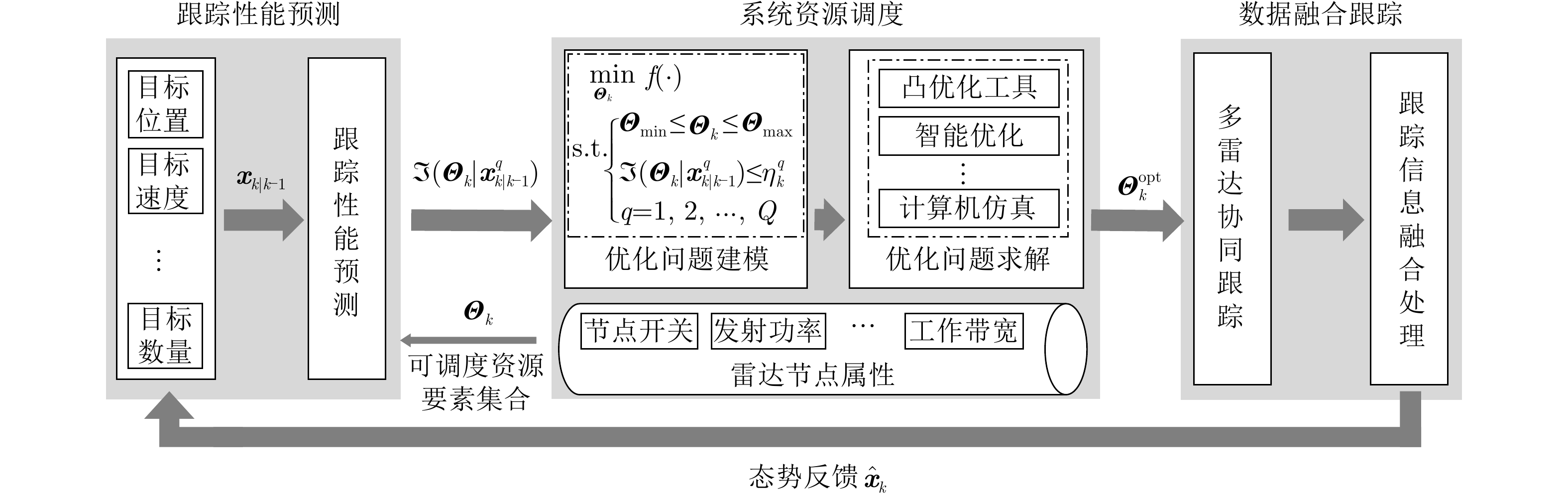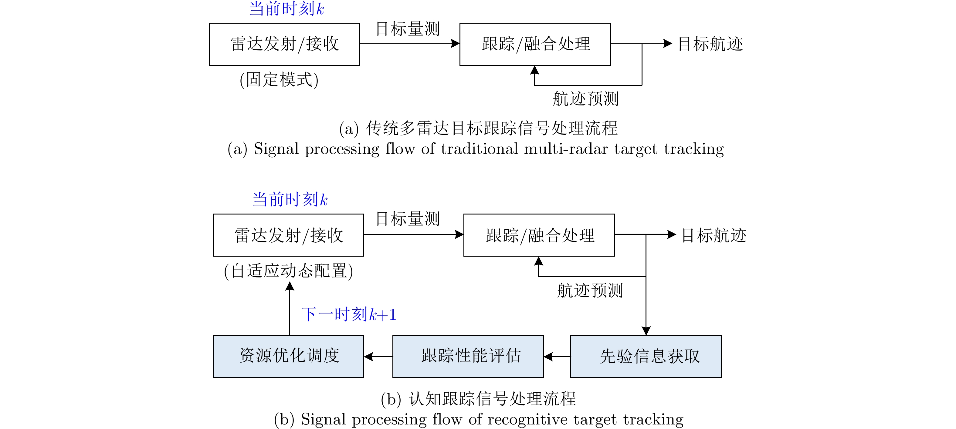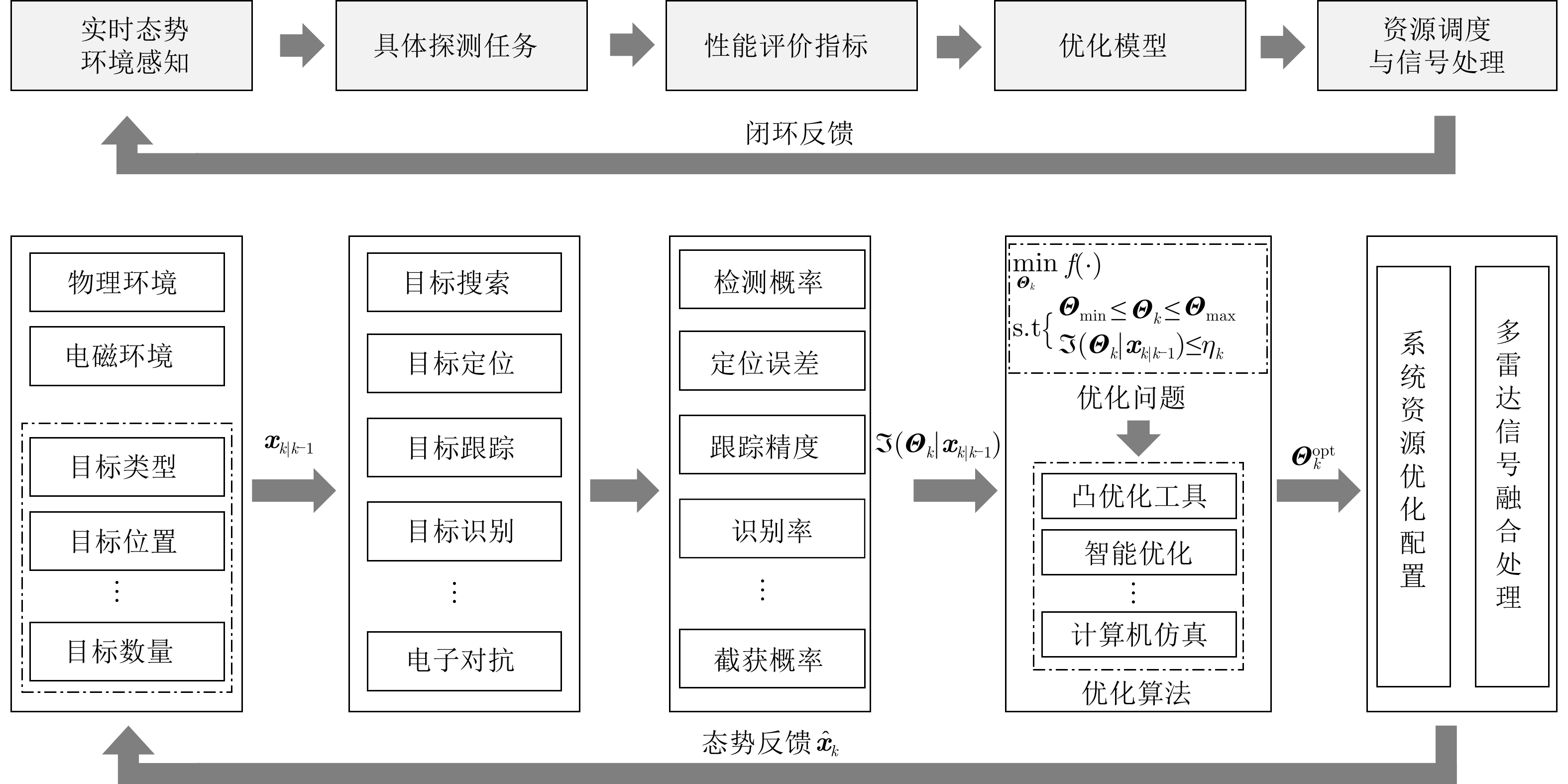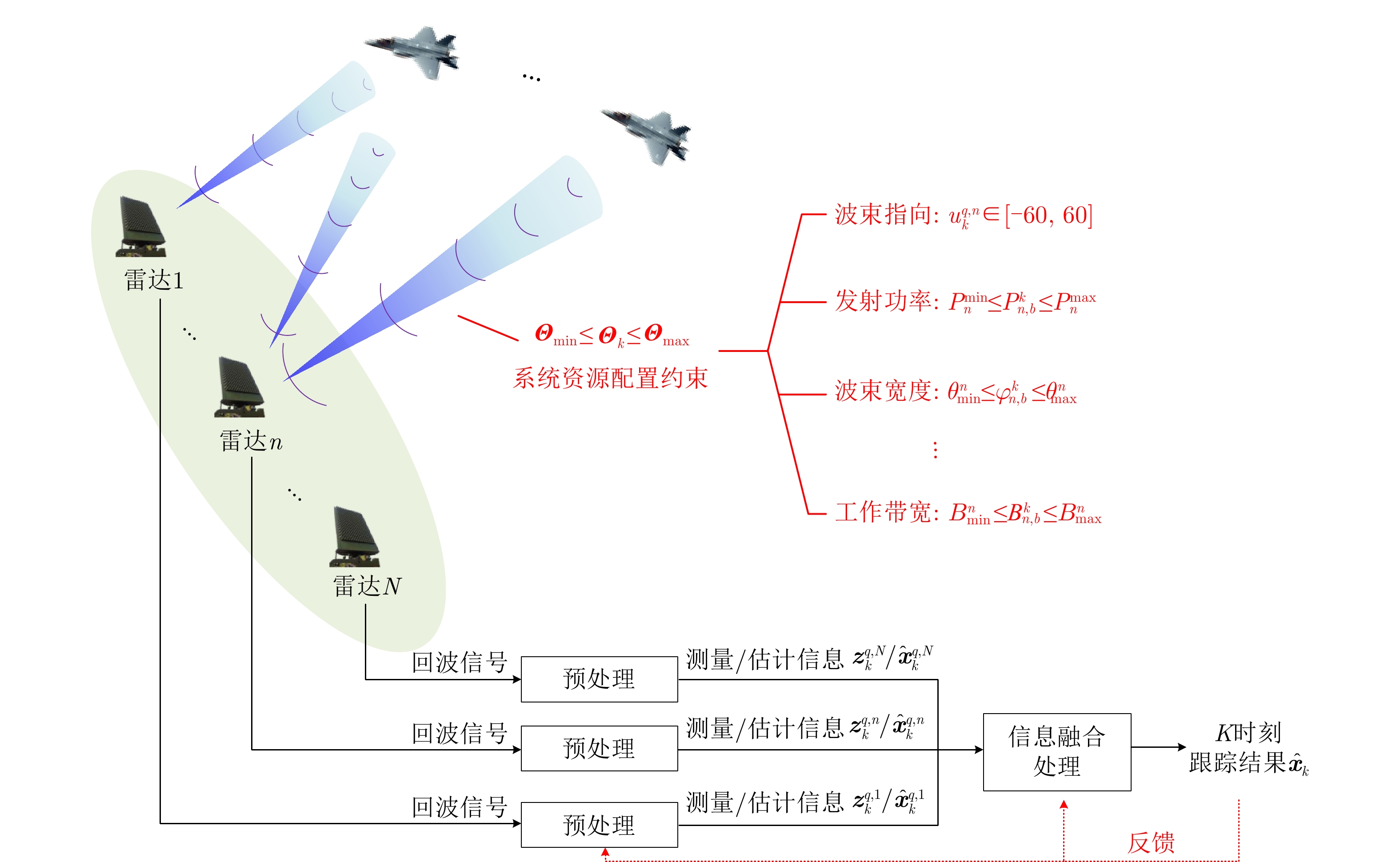多雷达协同探测技术通过有机地联动多部雷达,形成广域分布的探测构型,可充分获取空间、频率分集等探测增益,显著提升雷达系统的目标探测性能和电磁干扰环境顽存能力,是雷达技术领域重点发展的方向之一。近年来,国内外针对多雷达协同探测技术开展了广泛研究,在系统架构设计、信号处理、资源调度等技术方向积累了诸多研究成果。该文首先总结了多雷达协同探测技术的概念内涵,阐述了其基于信号处理闭环反馈的协同机制,分析了其实现过程中所面临的技术挑战;随后,聚焦于认知跟踪与资源调度算法,从内涵特点、系统构成、跟踪模型、信息融合、性能评估、调度算法、优化准则、认知流程等方面进行了技术总结,并分析了协同认知跟踪及其与系统资源调度的关系;接着从雷达资源要素、信息融合架构、跟踪性能指标、资源调度模型、复杂任务场景5个方面梳理和总结了协同认知跟踪与资源调度算法近年来的研究进展;最后总结全文并展望了该领域未来技术的发展趋势,旨在为后续的相关技术研究提供参考。 多雷达协同探测技术通过有机地联动多部雷达,形成广域分布的探测构型,可充分获取空间、频率分集等探测增益,显著提升雷达系统的目标探测性能和电磁干扰环境顽存能力,是雷达技术领域重点发展的方向之一。近年来,国内外针对多雷达协同探测技术开展了广泛研究,在系统架构设计、信号处理、资源调度等技术方向积累了诸多研究成果。该文首先总结了多雷达协同探测技术的概念内涵,阐述了其基于信号处理闭环反馈的协同机制,分析了其实现过程中所面临的技术挑战;随后,聚焦于认知跟踪与资源调度算法,从内涵特点、系统构成、跟踪模型、信息融合、性能评估、调度算法、优化准则、认知流程等方面进行了技术总结,并分析了协同认知跟踪及其与系统资源调度的关系;接着从雷达资源要素、信息融合架构、跟踪性能指标、资源调度模型、复杂任务场景5个方面梳理和总结了协同认知跟踪与资源调度算法近年来的研究进展;最后总结全文并展望了该领域未来技术的发展趋势,旨在为后续的相关技术研究提供参考。