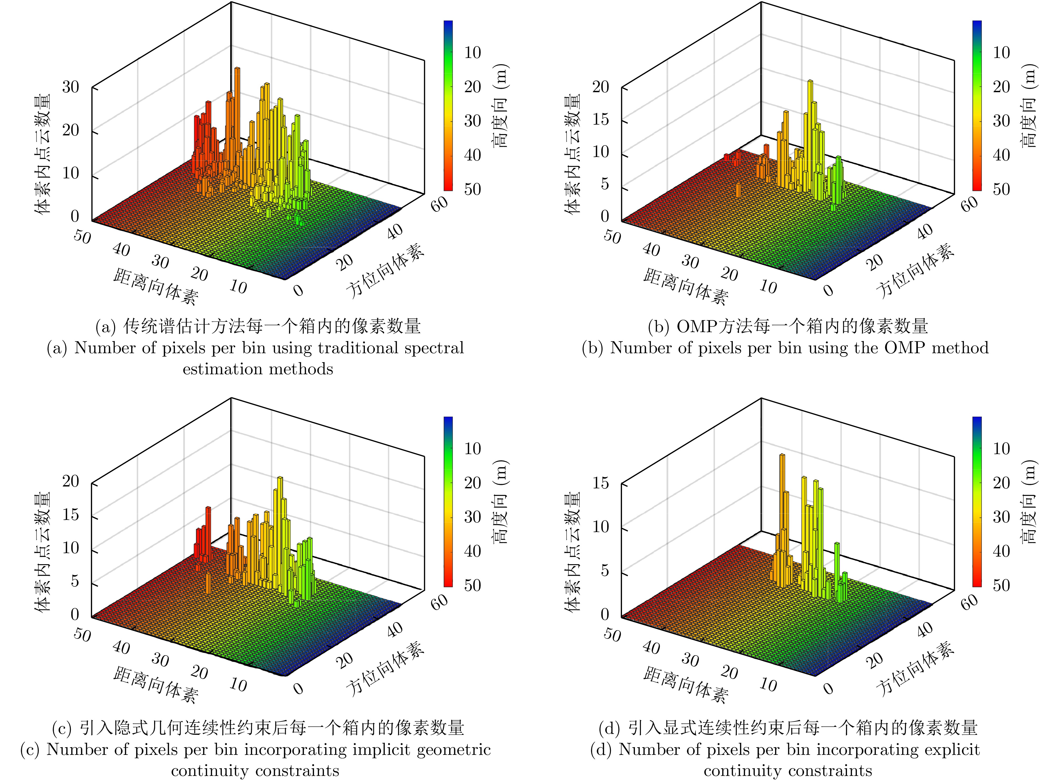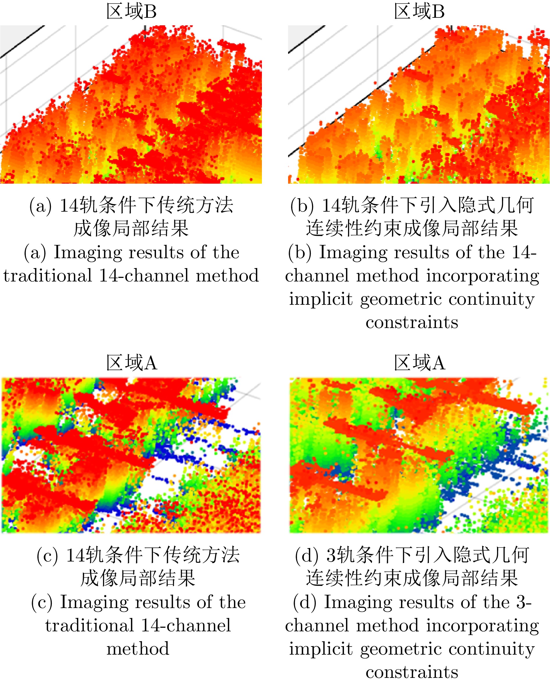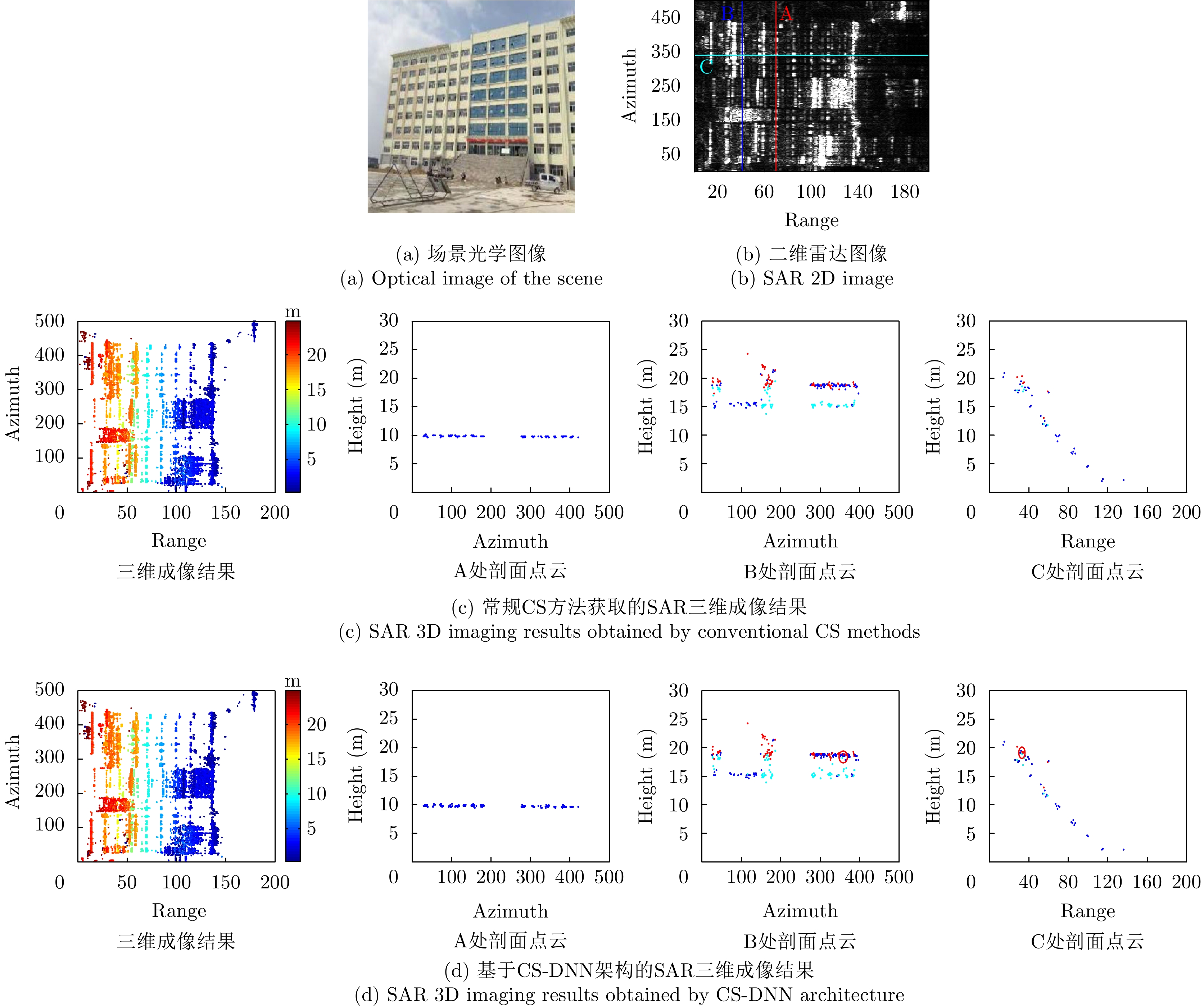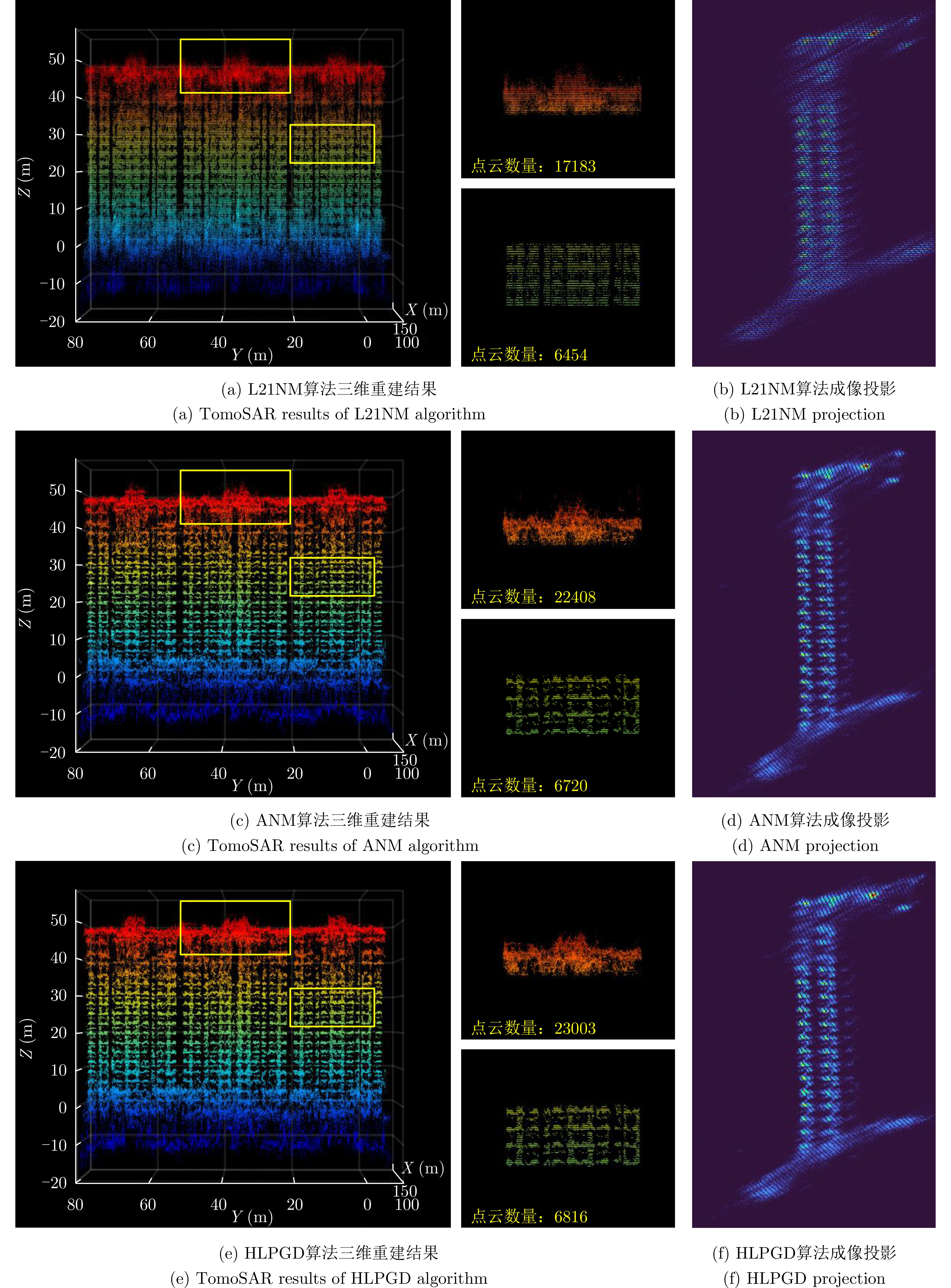 层析合成孔径雷达(TomoSAR)是城市建筑物三维重建的重要技术。现有方法虽通过引入几何约束提升了成像质量,并在多极化条件下发展为极化层析SAR (PolTomoSAR),但仍面临复杂建筑结构下几何信息依赖性强、极化模型不完善等问题。为此,该文提出一种几何与极化联合约束的TomoSAR三维成像方法,融合建筑几何结构与Pauli极化相似度信息,结合极化相干最优处理及概率密度约束,显著提升点云成像质量。实验基于机载Ku波段4通道阵列苏州实测数据,结果表明所提方法在成像精度与完整性方面均优于现有方法,验证了其有效性与优越性。