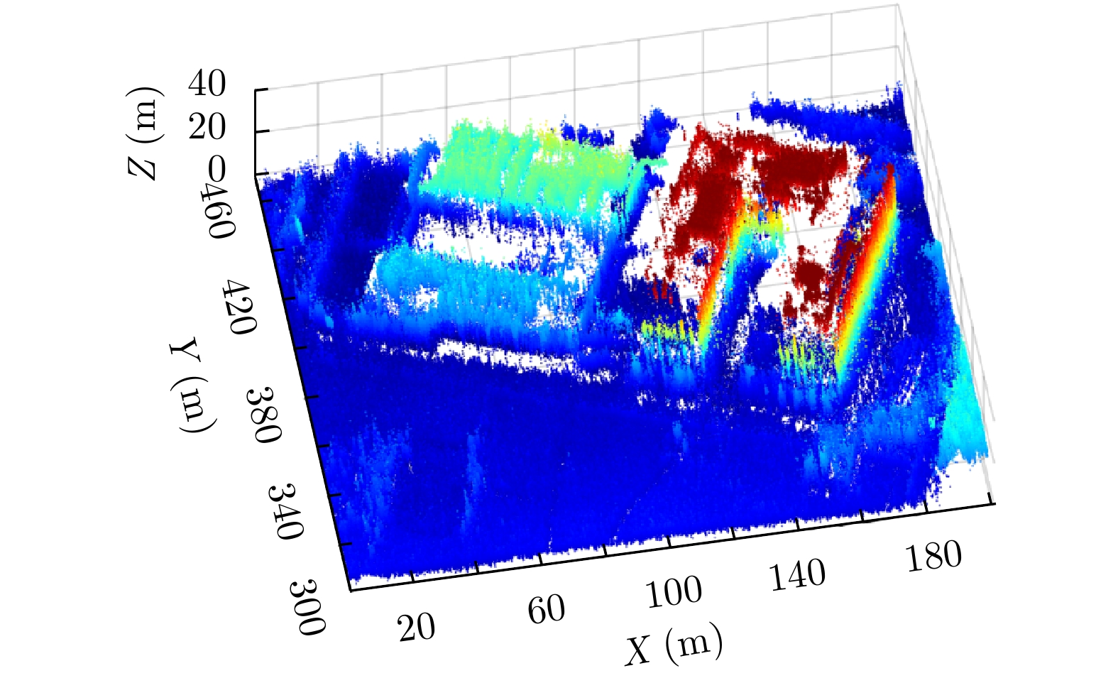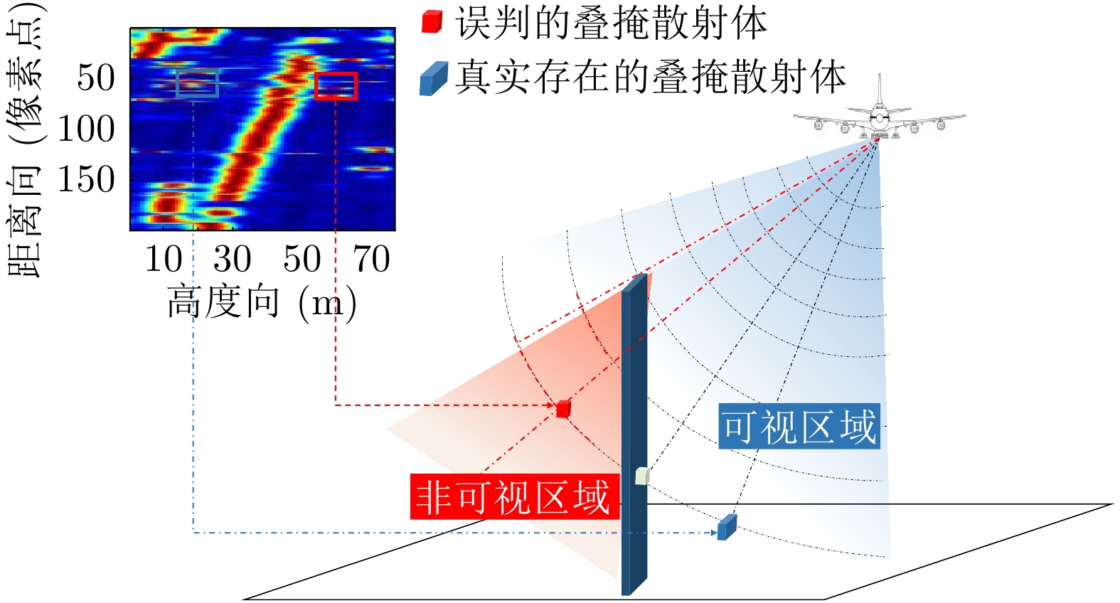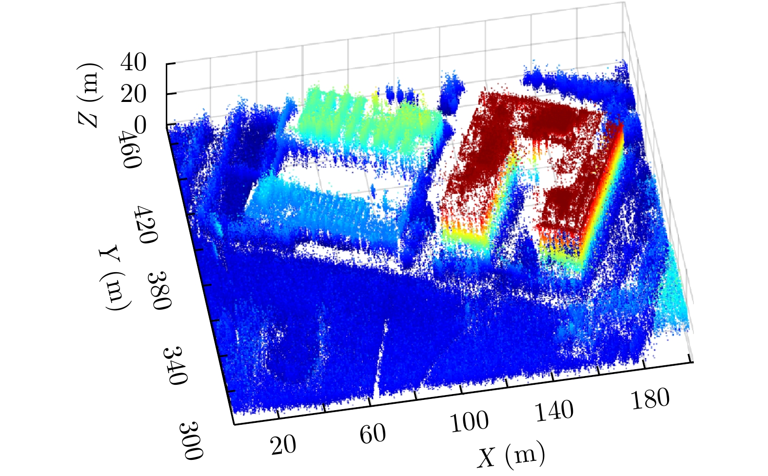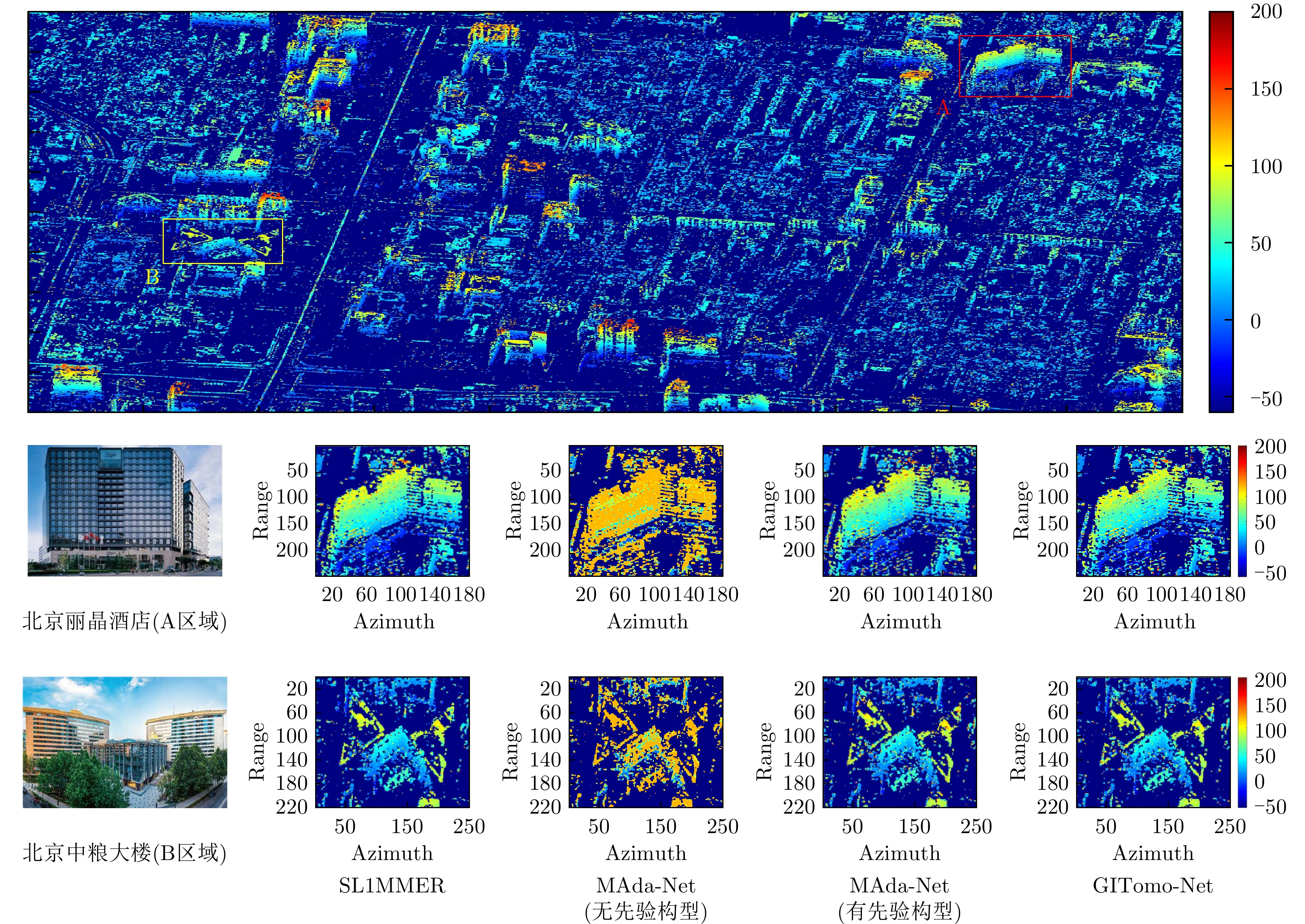 层析合成孔径雷达(TomoSAR)是城市建筑物三维重建的重要技术。现有方法虽通过引入几何约束提升了成像质量,并在多极化条件下发展为极化层析SAR (PolTomoSAR),但仍面临复杂建筑结构下几何信息依赖性强、极化模型不完善等问题。为此,该文提出一种几何与极化联合约束的TomoSAR三维成像方法,融合建筑几何结构与Pauli极化相似度信息,结合极化相干最优处理及概率密度约束,显著提升点云成像质量。实验基于机载Ku波段4通道阵列苏州实测数据,结果表明所提方法在成像精度与完整性方面均优于现有方法,验证了其有效性与优越性。