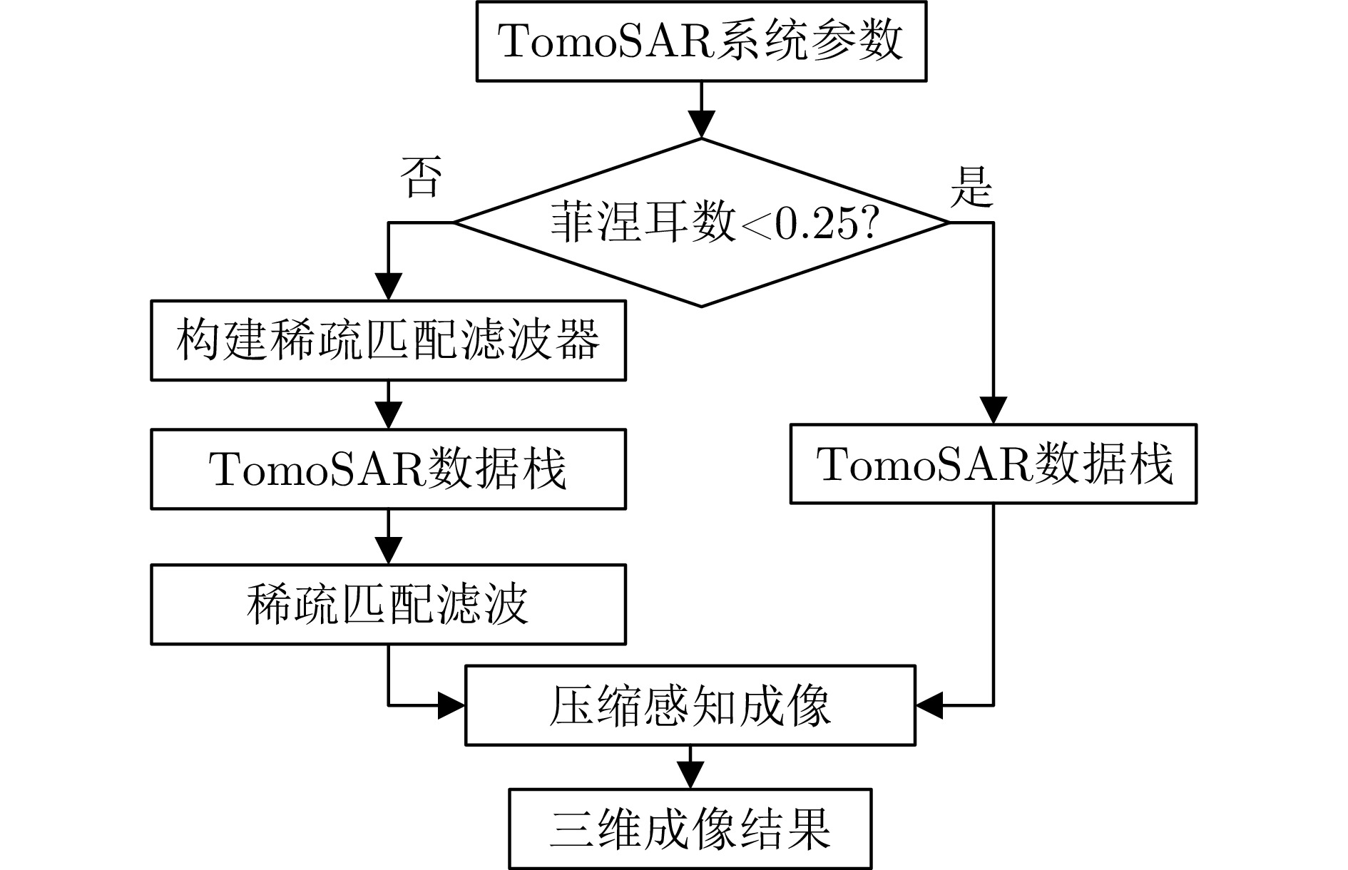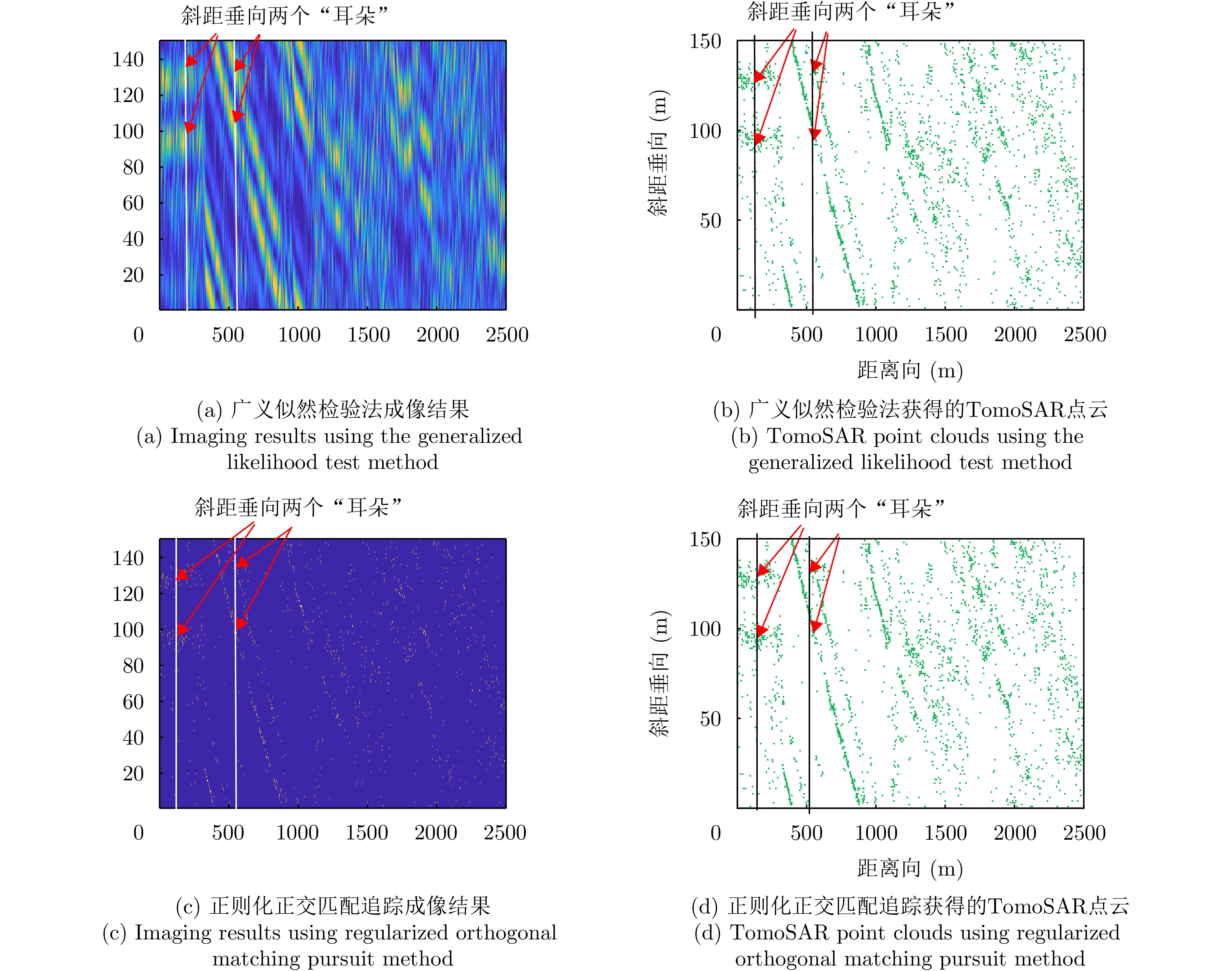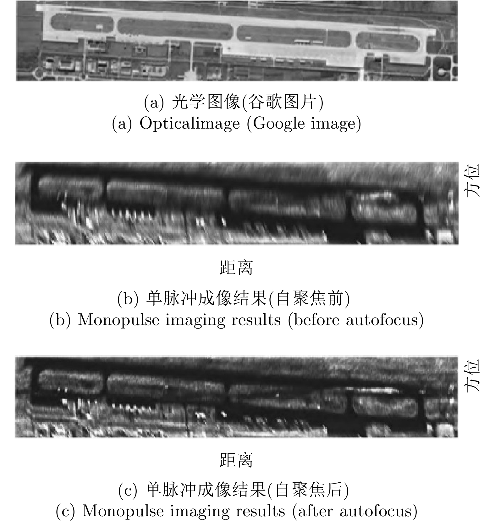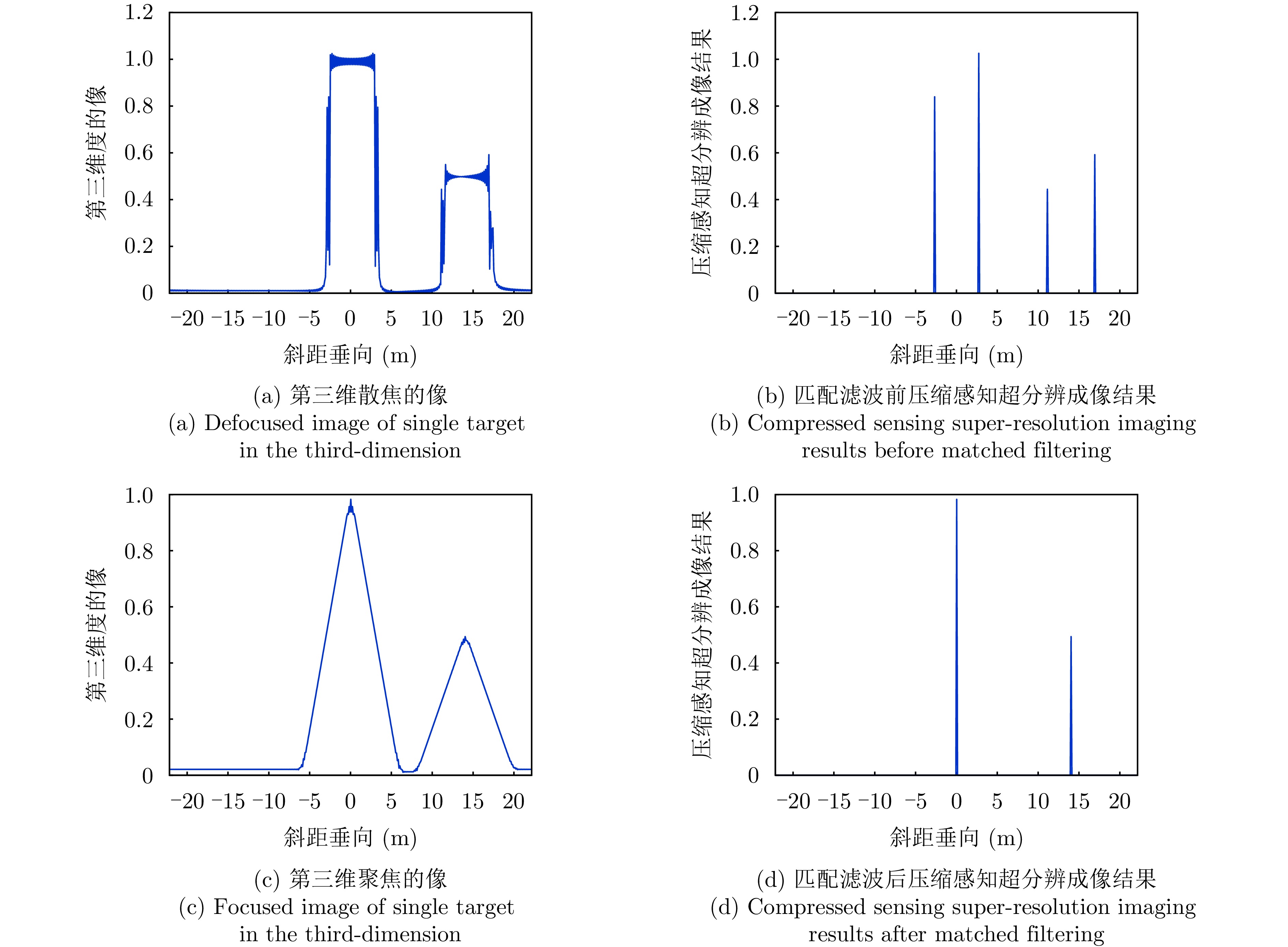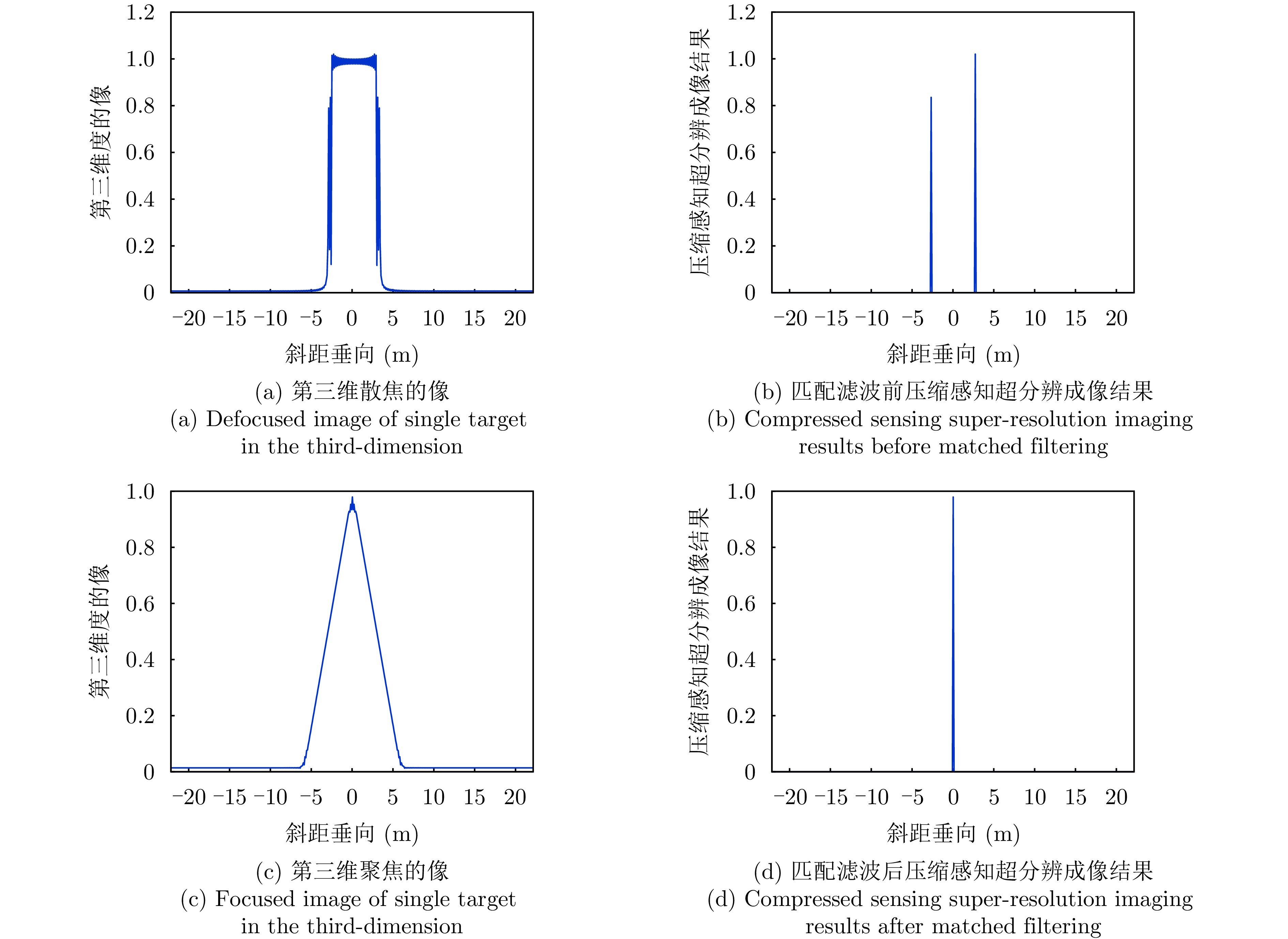 层析SAR (TomoSAR)成像技术已经成为获取三维SAR点云的关键技术。然而,如果忽略斜距垂向的二次相位,可能会导致目标在高程方向的散焦问题,这是由于层析SAR成像中第三维也可能存在菲涅耳衍射所导致的。该文利用光学成像中的衍射原理解释了SAR成像中的衍射问题同样在第三维存在,并提出采用稀疏匹配滤波方法对第三维进行聚焦。第三维稀疏匹配滤波的关键在于构建稀疏相位补偿因子,进而构建稀疏匹配滤波器。首先根据TomoSAR影像的空间几何基线,构建第三维归一化的稀疏频率;然后,结合波长、距离、孔径等参数,根据菲涅耳积分特性构建频域稀疏匹配滤波器;最后,使用频域稀疏滤波器对稀疏采样的SAR图像进行相位补偿,再利用经典的稀疏成像算法(如压缩感知、似然比检测方法等)进行高程即第三维目标检测。该文采用中国科学院空天信息创新研究院的机载SAR数据,运用该文构建的频域稀疏匹配滤波器对其进行实验,实验结果验证了该文所提的方法能够解决层析SAR在菲涅耳衍射情况下导致的散焦问题,从而改善散焦引起的目标位置和后向散射信息不准确的问题。