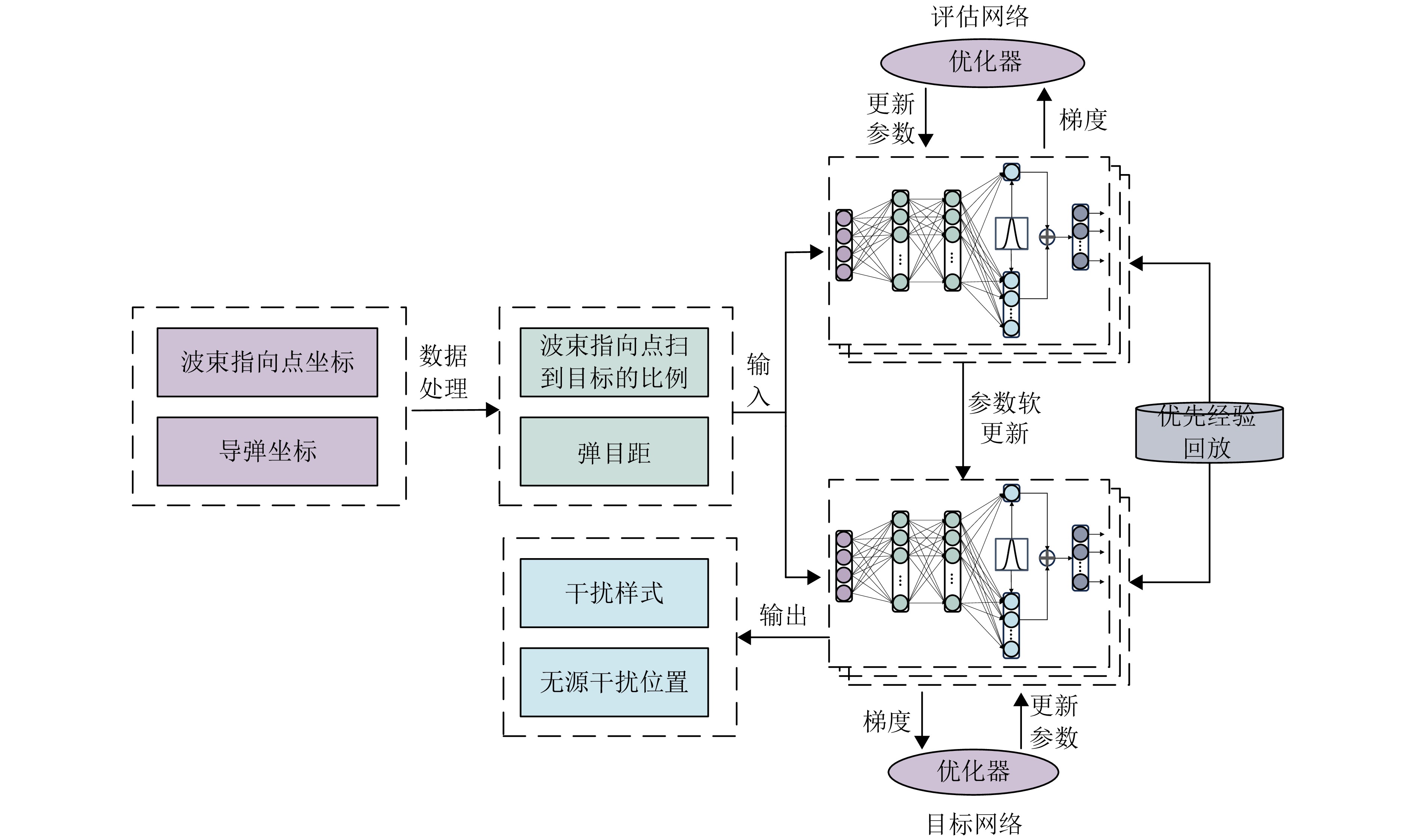 智能干扰决策技术的发展,显著提升了敏感目标在战场中的生存对抗能力。然而,现有干扰决策算法仅考虑有源干扰,忽略了无源干扰策略优化问题,严重限制了干扰决策对抗模型的应用场景。针对这一缺陷,该文基于彩虹深度Q网络(Rainbow DQN)与二分法,构建了一种有源-无源干扰策略联合优化方法,利用Rainbow DQN决策有无源干扰样式序列,并以二分法动态搜索无源干扰最优释放位置;考虑干扰对抗环境的非完全观测性,该文进一步设计了基于雷达波束指向点变化的奖励函数,以准确反馈干扰策略的有效性。通过仿真模拟干扰机-雷达对抗实验,与深度Q网络(DQN)、决策优势分离深度Q网络(Dueling DQN)及双重深度Q网络(Double DQN) 3种主流干扰决策模型相比,所提方法的Q值平均提升2.43倍,奖励均值平均提升3.09倍,无源干扰位置决策步数缩短50%以上。实验结果表明,该文所提基于Rainbow DQN与二分法的有源-无源干扰策略联合优化方法,可实现有源干扰与无源干扰联合有效决策,进一步提高了干扰策略决策模型适用性,显著提升了干扰机电子对抗中的价值。