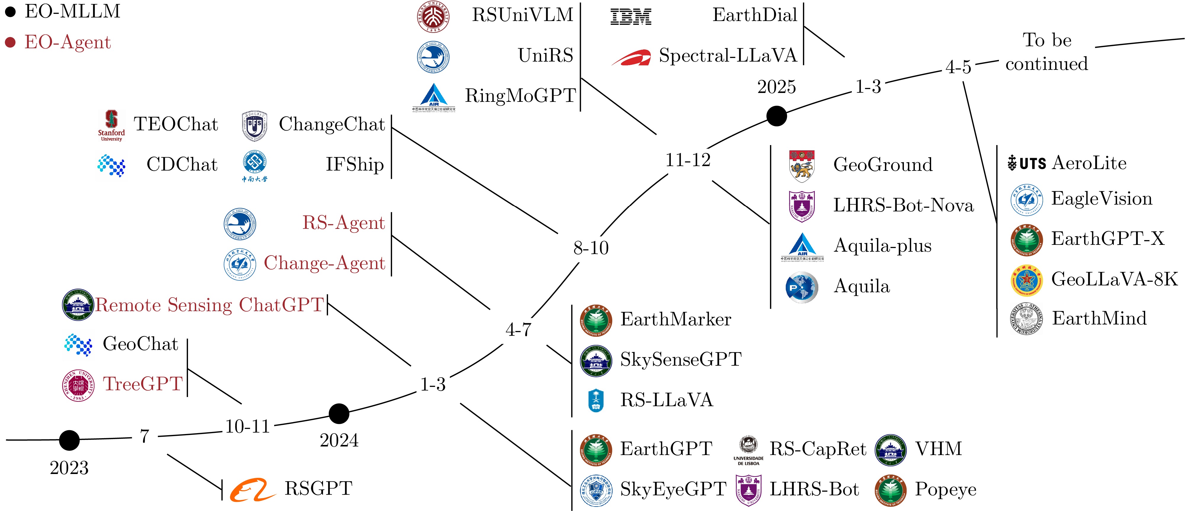 近年来,人工智能技术和对地观测领域的结合已成为领域发展的前沿热点,多模态大语言模型(MLLM)的快速发展为智能解译带来新的机遇和挑战。多模态对地观测大模型通过构建大语言模型与视觉模型之间的桥接机制并采用联合训练方式,深度融合光学影像、合成孔径雷达影像与文本等多模态信息,有效推动对地观测智能解译由浅层语义匹配向高层的世界知识理解跃迁。该文系统性回顾了多模态对地观测大模型的相关研究成果,以期为新的研究方向提供依据。具体而言,该文首先明确了多模态对地观测大模型(EO-MLLM)的概念定义,并梳理了多模态对地观测大模型的发展脉络。随后,详细阐述了多模态对地观测大模型的模型架构、训练方法、适用任务及其对应的基准数据集,并介绍了对地观测智能体。最后,探讨了多模态对地观测大模型的研究现状和未来发展方向。