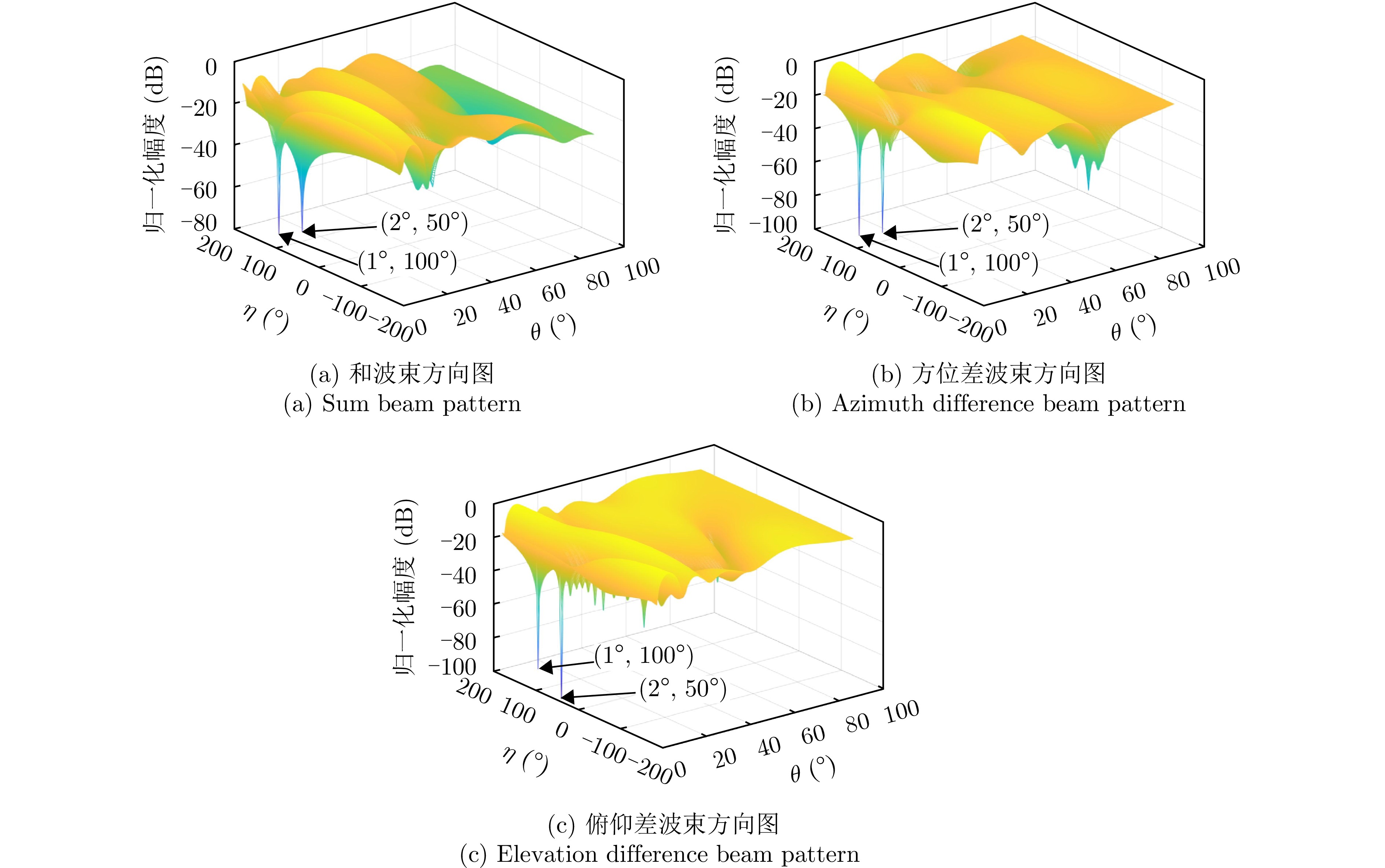 针对数字阵列天线自适应对抗主瓣内的自卫式和伴飞式干扰时引起的波束畸变和单脉冲测角性能下降等问题,该文提出了一种基于分维的空域-极化域联合主瓣干扰抑制算法(SPJS-DD)。针对双极化矩形平面阵列天线,推导了空域-极化域联合阵列接收信号导向性矢量的方位维与俯仰维正交性。在此基础上,将方位维/俯仰维依次设置为测角维,另一维度为非测角维,SPJS-DD算法分为两级进行处理:第1级在非测角维进行,对波束方向图进行波束指向的空域-极化域联合约束,通过自适应处理完成非测角维的主瓣干扰抑制;第2级在测角维进行静态和、差波束形成。通过二维分级处理能够在测角维保持单脉冲波束形状不失真,并且在非测角维利用空域-极化域联合自由度抑制主瓣干扰。仿真结果表明,SPJS-DD算法能够有效抑制主瓣干扰,同时获得了良好的单脉冲测角性能。