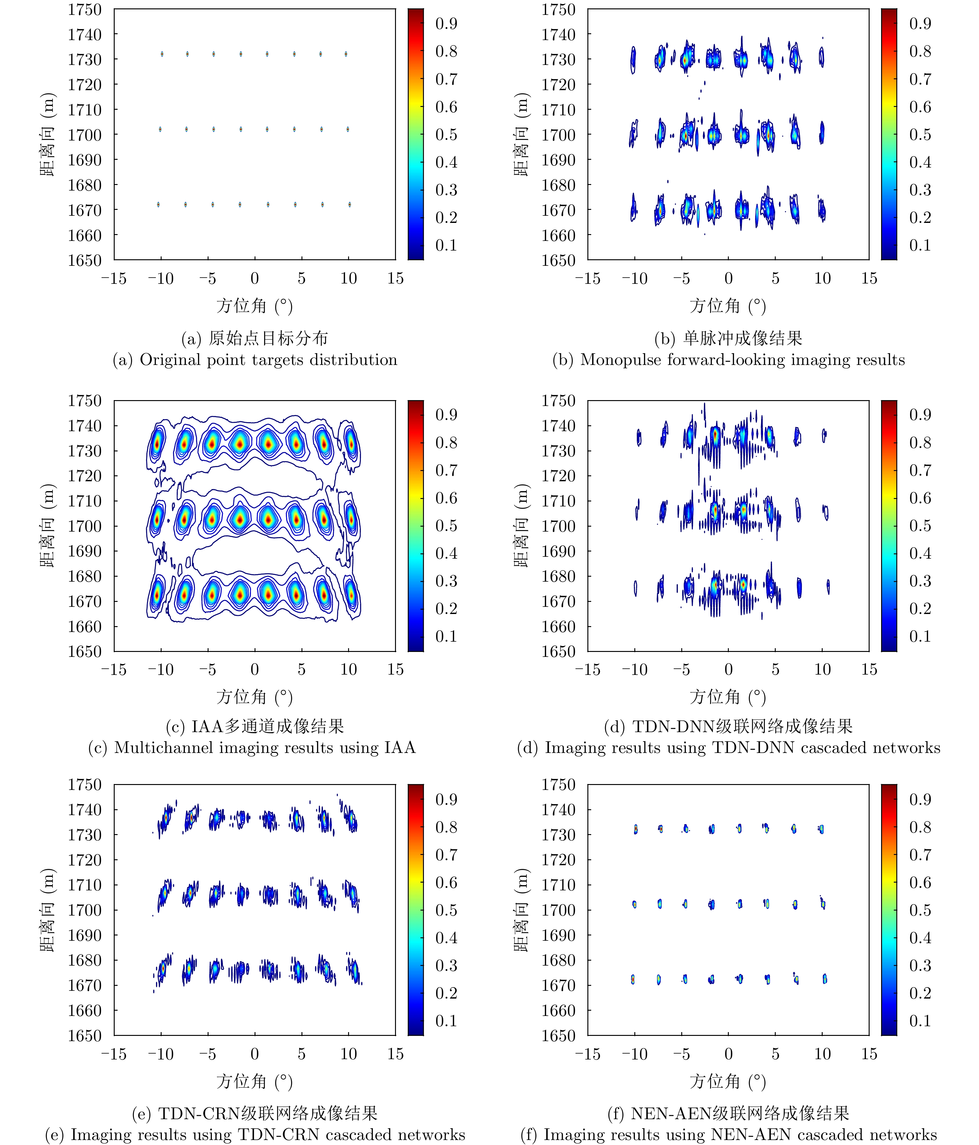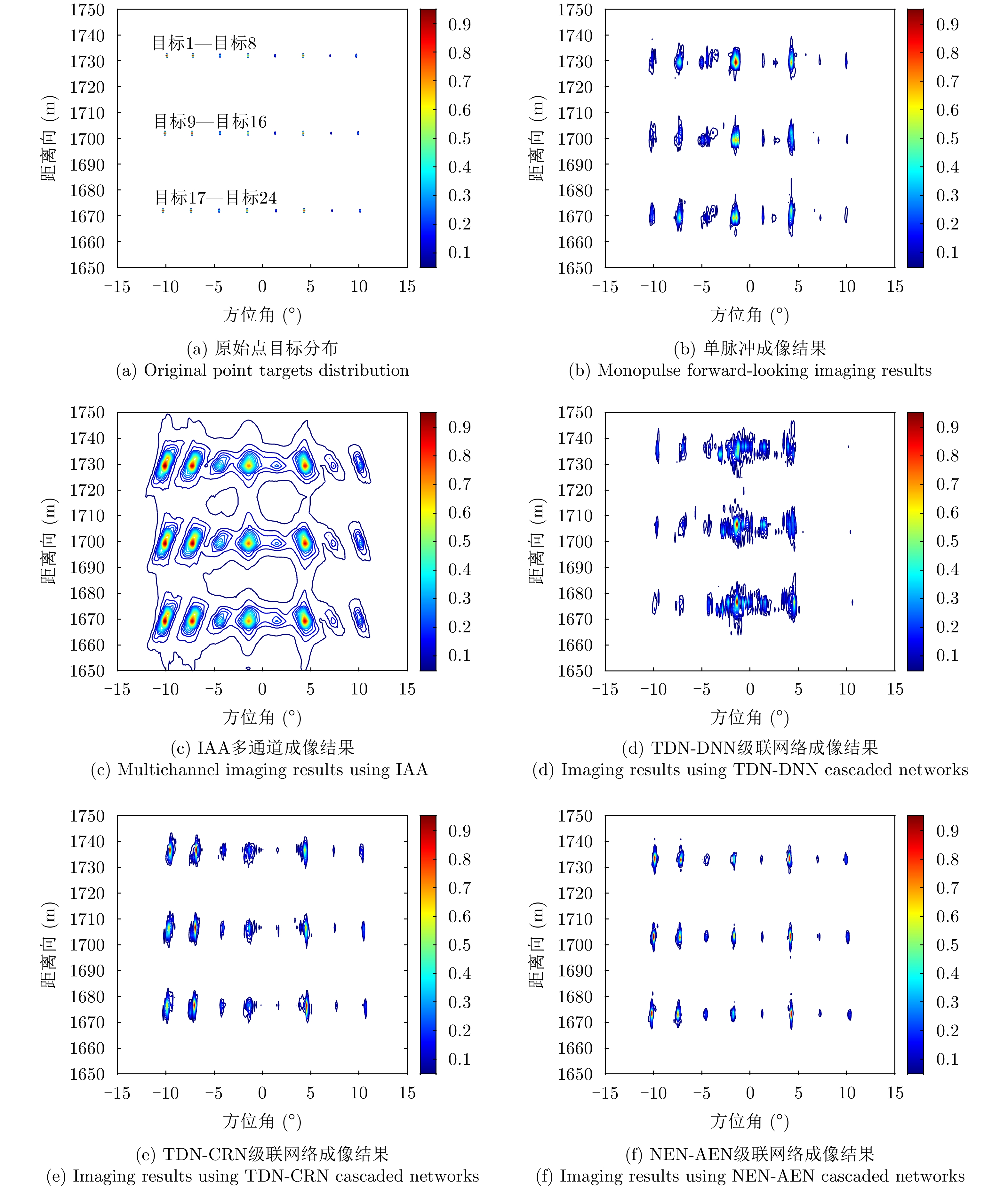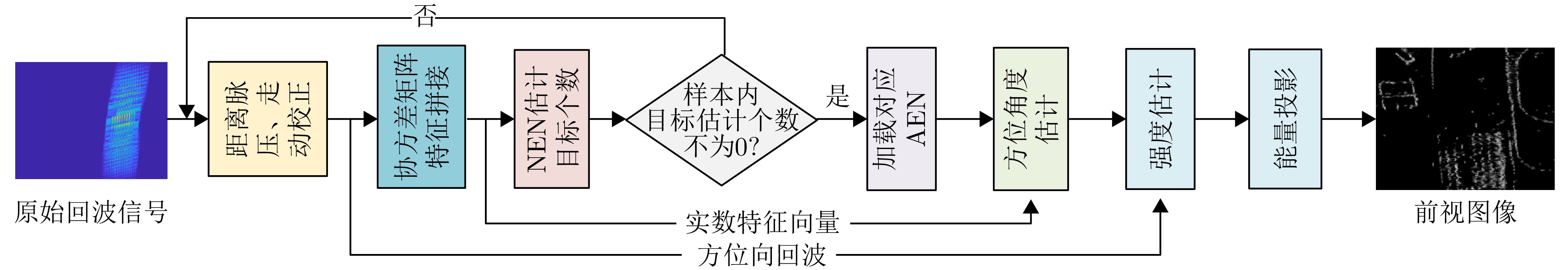 针对雷达正前视方向多普勒梯度消失导致多目标分辨困难以及前视图像模糊的问题,该文提出一种基于双网络协同的多通道雷达前视成像方法,构建了一个分层级联的端到端处理框架:首先,设计轻量化目标数量估计网络(NEN),基于回波协方差矩阵特征预测主瓣内目标数量;其次,根据目标数量动态选择预训练的角度估计网络(AEN)模型,实现高精度的目标方位角估计;最后,将目标数量与角度估计值作为先验信息,结合迭代自适应算法完成目标强度估计和二维投影成像。仿真和实测实验结果表明:相比于传统超分辨算法,所提方法在正前视区域能够更有效实现对强弱点目标参数的同时估计和精确重构,在目标数量估计上的准确率达到86.75%,角度估计均方根误差在双目标场景下低于0.2°,有效提高了前视成像质量。