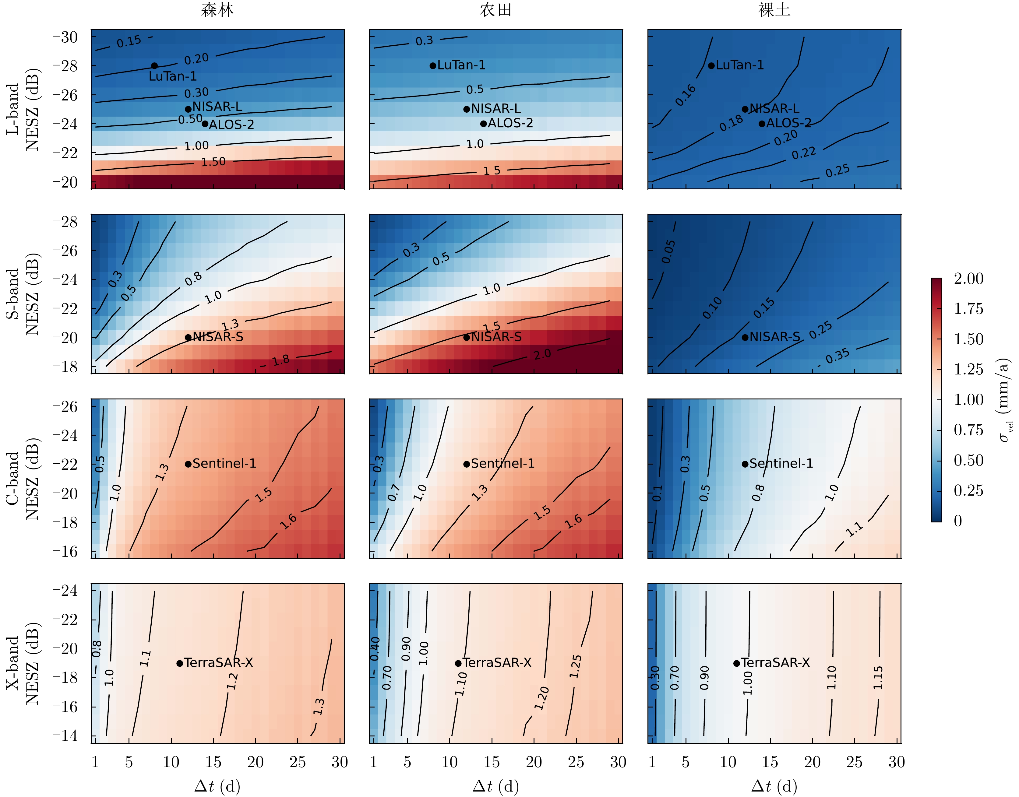 星载干涉合成孔径雷达(InSAR)技术通过测量雷达视线方向的相位差实现地表高程测量与形变监测。然而,面向未来更高精度的干涉测量需求,InSAR系统设计参数与测量精度的解析模型仍存在关键参数不完备、物理约束刻画不充分等问题,对下一代合成孔径雷达干涉测量技术的发展形成制约。该文针对系统设计参数和测量精度间存在的复杂多因素耦合问题开展研究,详细分析了空间、时间基线星载干涉合成孔径雷达成像理论约束关系,构建了融合多源失相干的空-时误差模型,量化了基线参数与测量精度的非线性关系,建立了涵盖相干性、高程精度、基于相干时间基线的形变灵敏度等关键指标的完备评估框架,在此基础上提出了超长基线星载InSAR的概念与体制。同时,对超长基线星载InSAR的性能进行了详细分析,阐述了超长基线星载InSAR在轨道设计、系统设计、同步方法、误差校正以及相位解缠等方面的技术挑战,介绍了超长基线星载InSAR在高精度高程测量与形变测量以及分布式SAR系统等方面的应用潜力,可为未来新一代高精度、多维度InSAR系统设计提供理论支撑,在地球科学前沿探索与国家重大工程安全保障中发挥更大价值。