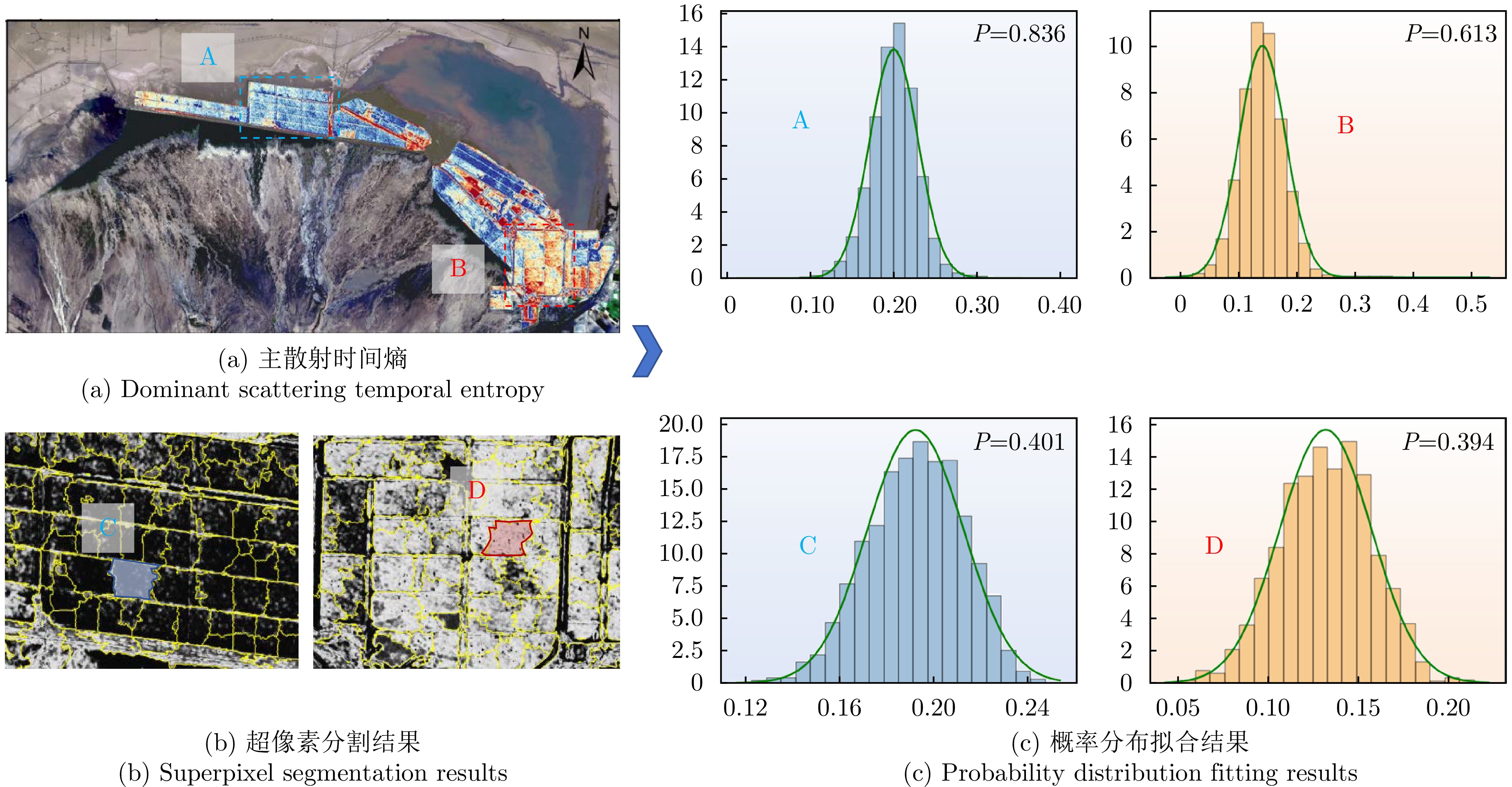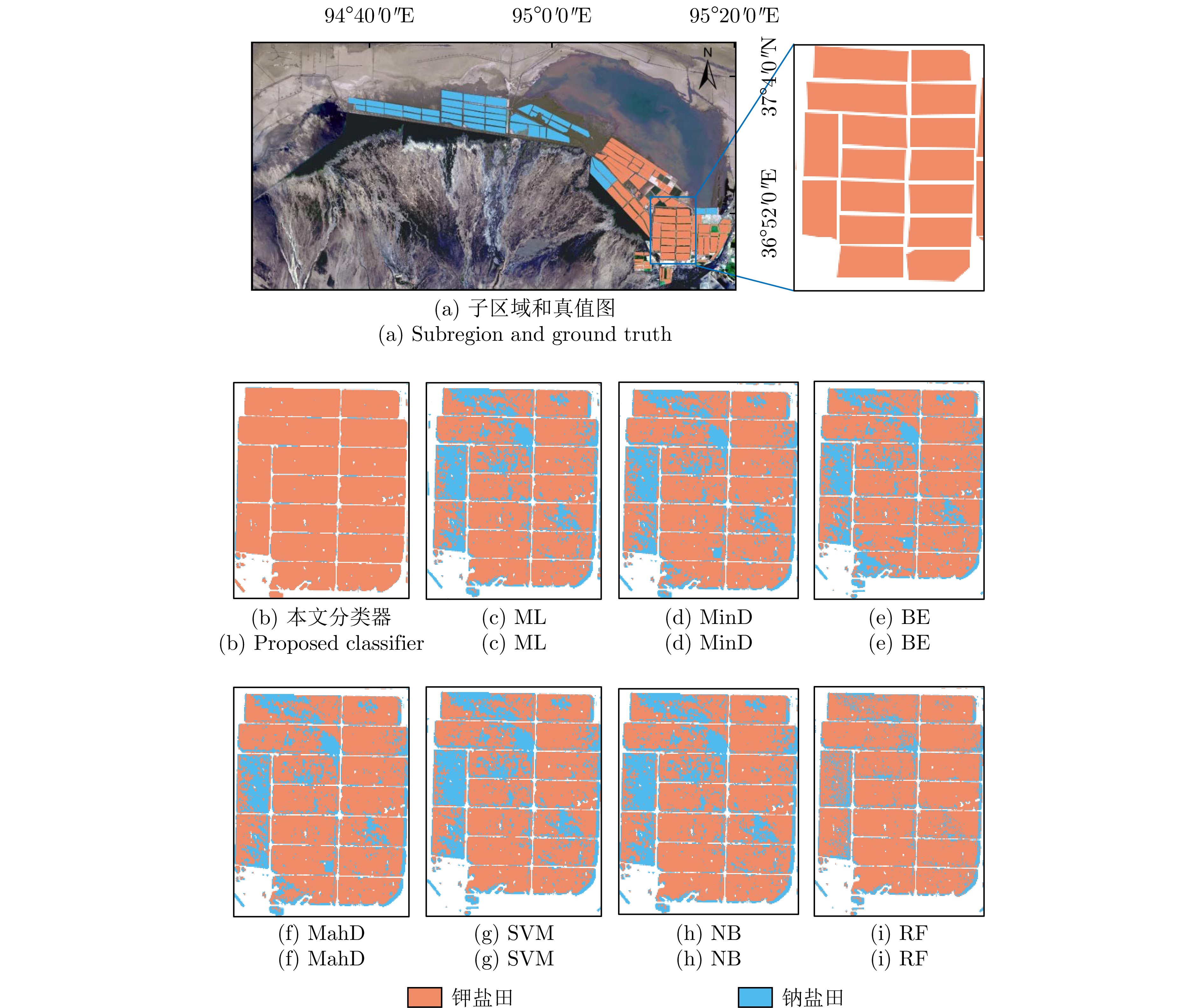 盐湖蕴藏丰富的钾锂矿产资源,开采方法为盐田析盐法:盐湖卤水依次转入钠盐田和钾盐田,分别析出钠、钾盐。盐田类型判别是预估盐矿产量、确保高效开采的关键。不同类型的盐田在析盐速度上存在差异,导致在多时相极化合成孔径雷达(SAR)数据中散射强度变化程度不同,因此该文提出了基于多时相极化SAR的盐田区域分类方法。首先,为解决长时间周期内盐田散射特性变化难以准确表征的问题,该文提出了一个新的多时相极化特征,即主散射时间熵。从极化协方差矩阵中提取目标主散射机制,基于主散射机制计算任意两时间极化SAR图像之间时间相关性并构建时间相关矩阵,通过对角化操作从时间相关矩阵中获取地物在时间序列中主要的变化方向和强度,并借鉴熵的概念衡量变化强度情况,对地物的累积变化进行准确表征。其次,该文证明主散射时间熵服从高斯分布,据此提出了基于Chernoff距离的分类器,该分类器利用Chernoff距离比较超像素内主散射时间熵概率分布的相似性来实现分类。该方法在察尔汗盐湖和死海盐湖哨兵1号数据集上分别取得了84.13%和86.13%准确率。相比于现有的时序极化SAR方法,精度提升了10%,分类结果的空间一致性和噪声鲁棒性等方面也优于其他方法。