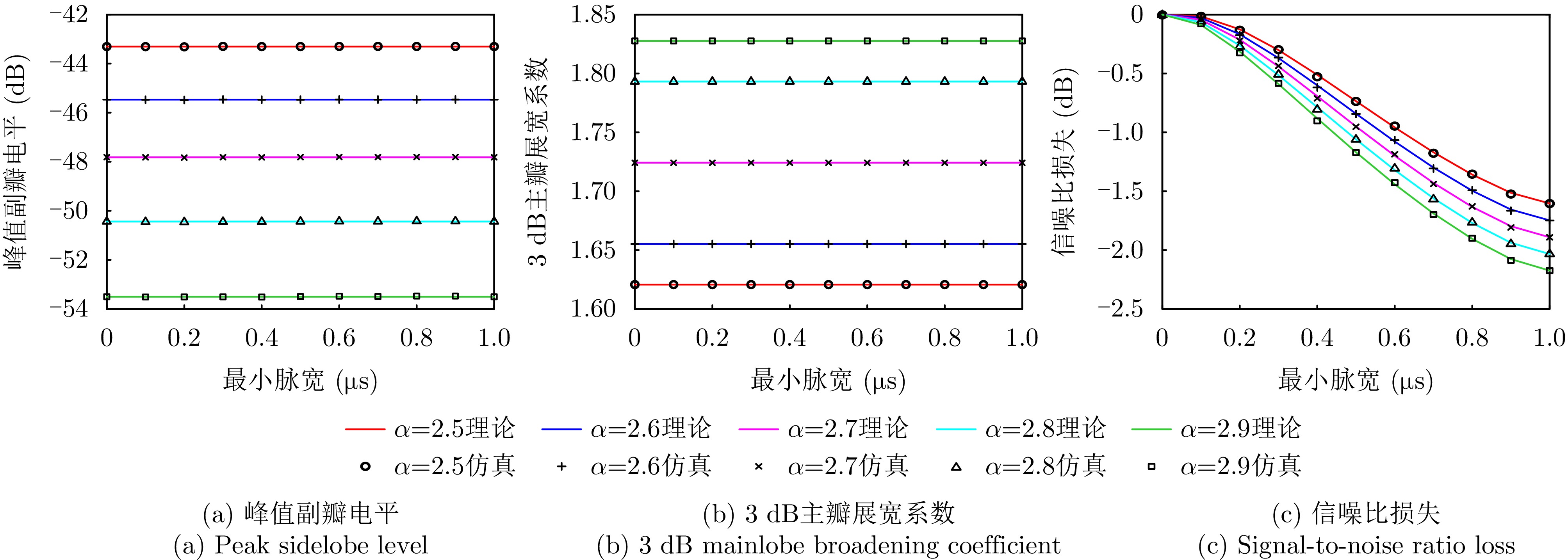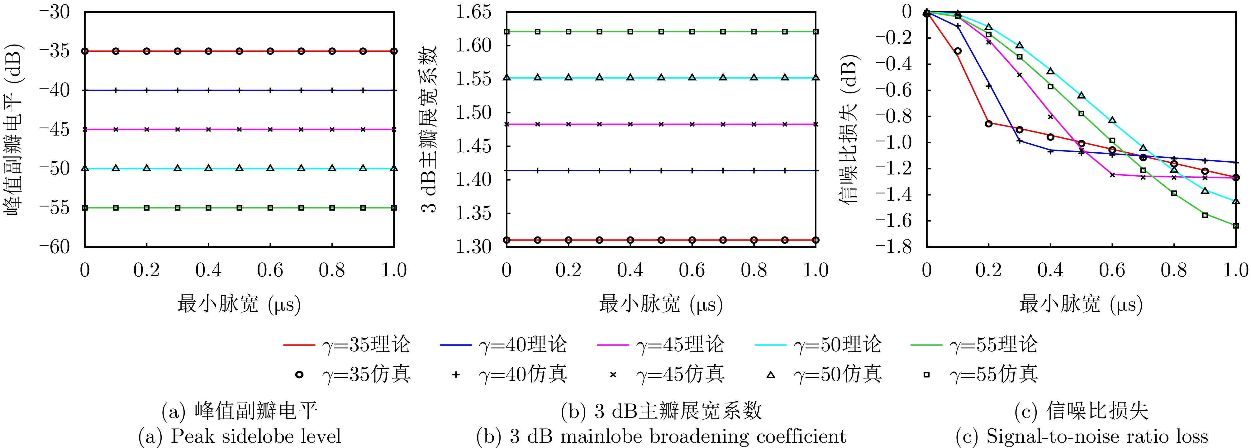 低副瓣特性的波形是保证雷达基本探测性能的基础,设计具有距离、速度一维或二维低副瓣特性的波形是雷达领域的一个重要问题。针对相干脉冲串的速度维副瓣抑制问题,该文提出了一种变脉宽脉冲串与接收失配滤波协同设计方法。该方法利用正值、对称窗函数直接构造脉冲宽度序列和接收端加权序列,可将窗函数幅度谱的低副瓣和3 dB主瓣展宽特性转化为相干脉冲串接收失配滤波输出的特性。理论分析表明,相比单纯用窗函数作接收端失配加权,这种发射信号变脉宽结合接收端失配加权的方法具有更小的失配信噪比损失。文中仿真分析了不同窗函数和最小脉宽约束对信噪比损失的影响和强目标干扰下的弱目标检测性能,验证了所提收发协同设计方法的优点。