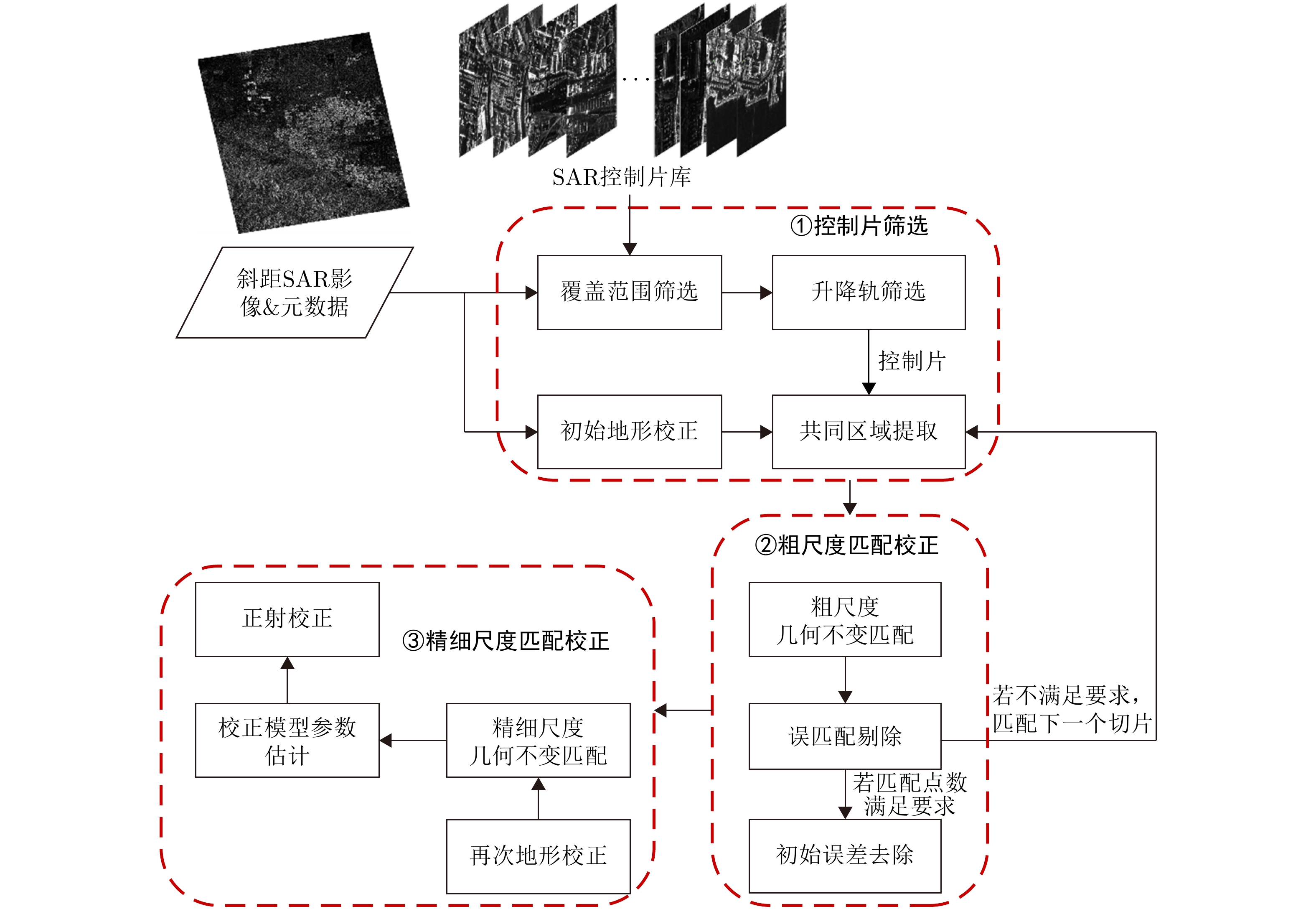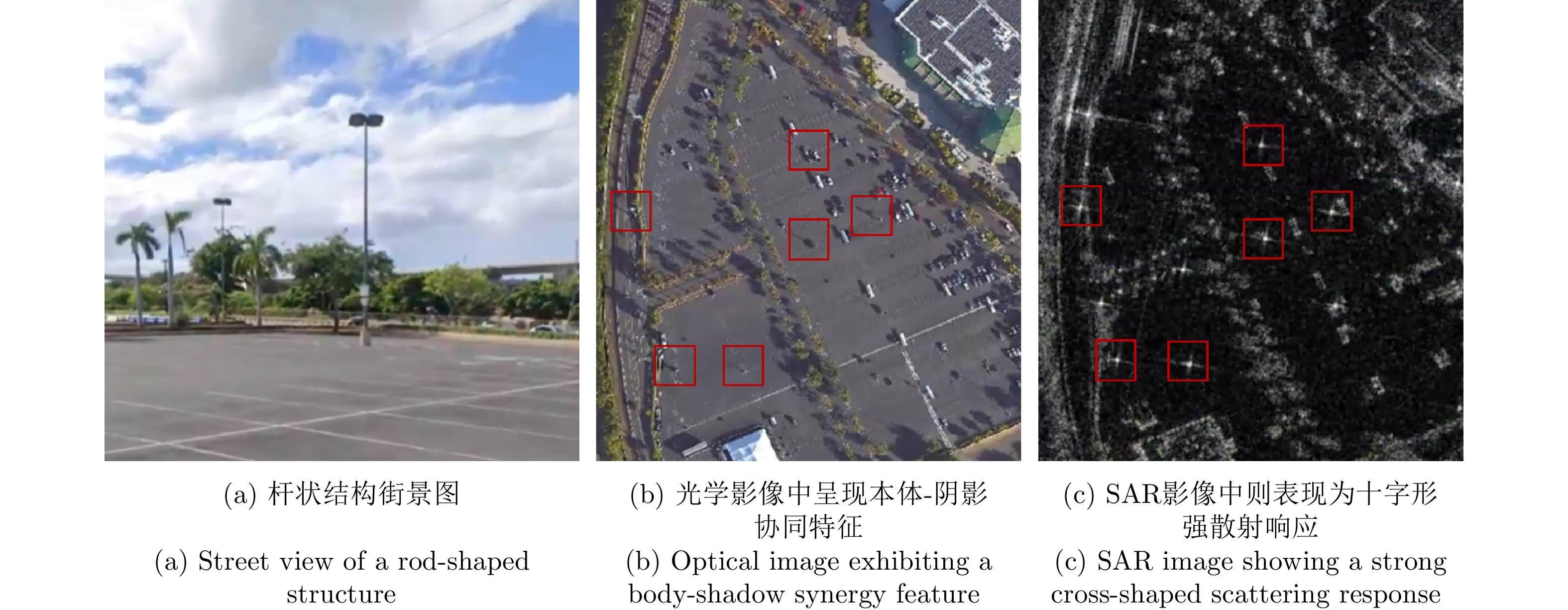 控制点作为遥感影像定位精度提升的核心基准,其空间分布特征与几何质量直接影响正射校正的可靠性,是保障多源影像融合、变化检测及定量反演精度的关键基础。针对传统角反射器布设成本高、实施难度大,难以满足全球应用需求的问题,以及现有异源控制点(如光学影像和激光测高数据)因与合成孔径雷达(SAR)影像存在显著模态差异,难以兼顾精度与鲁棒性的问题,该研究提出一种基于众源数据的高分辨率SAR影像控制点自动提取方法,并构建了基于控制片的高精度正射校正技术框架。该方法充分利用城市环境中广泛分布的杆状人造地物特性:在光学影像中,这类地物呈现本体-阴影协同结构特征,在SAR影像中则表现为十字形强散射响应。首先利用开源机场跑道数据校正谷歌光学影像,建立平面基准框架;进而通过光学-SAR影像匹配点与立体SAR影像匹配点的协同平差解算,实现不同升降轨立体SAR影像的初始定位优化;最终结合道路和停车场矢量数据提取感兴趣区域,采用信杂比检测算法识别强散射点,并通过点目标分析与立体定位技术获取控制点的三维空间坐标。基于控制点坐标对立体SAR影像的残余平面误差进行修正后,可生成不同升降轨SAR影像的控制片数据。通过采用多个区域的高分三号升降轨SAR影像开展控制点提取验证,结果表明:基于聚束模式立体SAR影像提取的控制点三维定位精度达亚米级,基于提取的控制点和控制片实现了测试影像的正射校正,通过角反射器和机载激光点云真值验证,结果发现测试影像定位精度提升显著,其中聚束模式定位误差为1.78像素,超精细条带模式为1.09像素,精细条带模式为0.82像素,较传统光学参考影像匹配校正方法精度提升了47.2%, 49.3%和37.4%。该研究创新性地引入众源信息辅助SAR控制点提取和升降轨SAR控制片构建,突破光学参考底图匹配校正的精度瓶颈,为高分辨率SAR影像精确定位与联合处理提供了可推广的新路径。