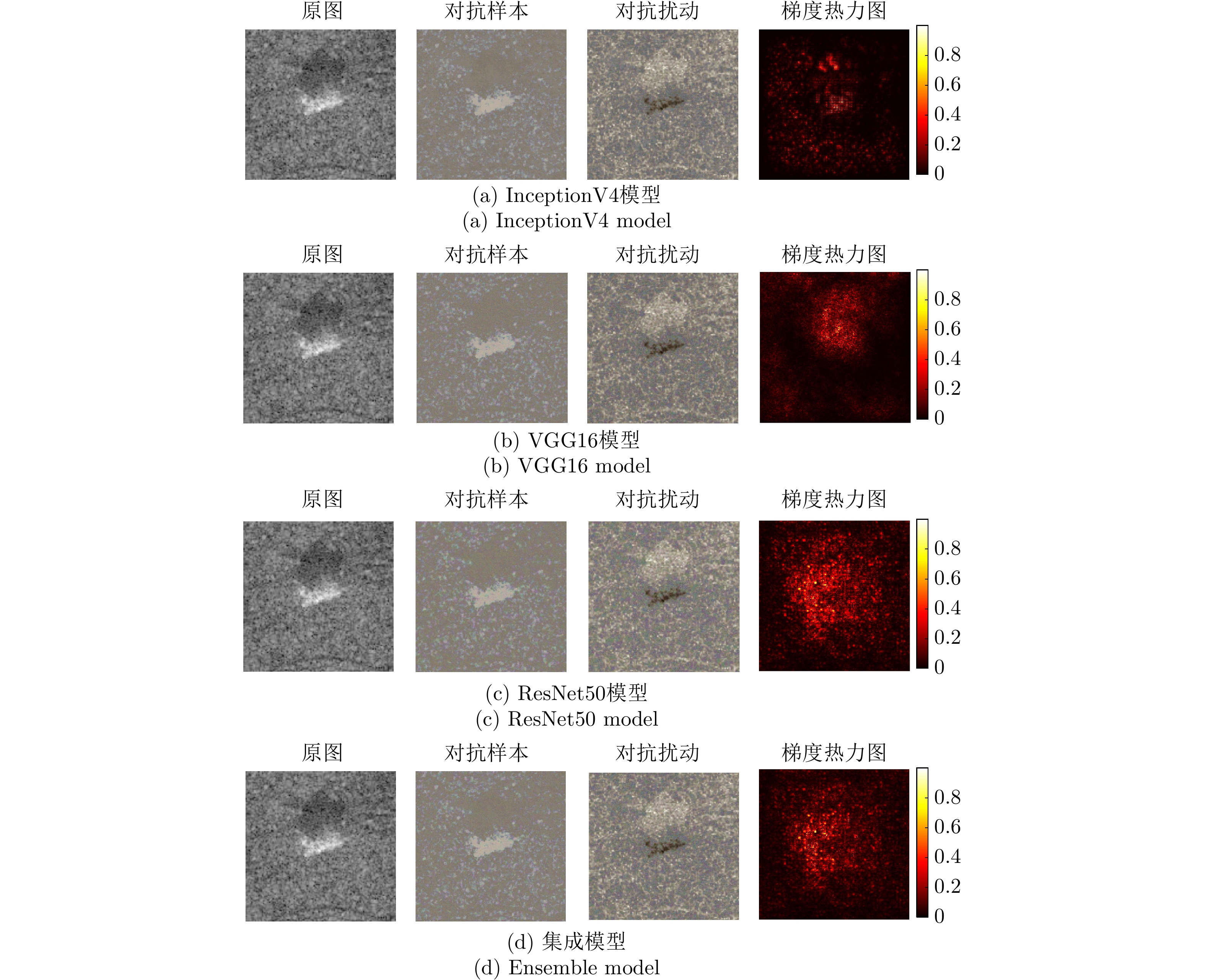 对抗样本生成研究是揭示深度神经网络脆弱性及提升合成孔径雷达自动目标识别(SAR ATR)系统鲁棒性的关键。该文针对对抗样本的误导效能与视觉隐蔽这一核心矛盾的平衡问题,提出了联合误导性与逼真度优化的SAR ATR最优对抗样本生成方法,将对抗样本的生成过程建模为一个以“误导性”和“逼真度”为目标的联合优化问题。该文首先提出了一种集成复合变换攻击法以增强攻击的有效性,并构建了融合目标模型分类准确率(ACC)与学习感知图像块相似度(LPIPS)的联合度量模型以量化两个优化目标。随后,提出一种改进的均匀性引导多目标雾凇算法,通过融合Tent混沌映射、混合动态权重和黄金正弦引导,高效地求解该模型,从而获得一组代表不同权衡程度的帕累托最优解集。最终,利用YOLOv10网络对解集中的样本进行扰动检测,以定位扰动被发现的临界点,实现最优参数的量化。在MSTAR和MiniSAR数据集上的实验表明,所提集成复合变换攻击法针对不同集成模型和分类网络的平均目标模型识别准确率为8.96%,总体误导效果较其他方法平均提升了2.25%,其中复杂模型平均提升5.56%;所提均匀性引导的多目标雾凇算法在解集多样性和收敛速度方面较对比方法提升均超过25%;最终该方法能够在ACC降至28.81%的同时,将LPIPS控制在0.407,扰动因子仅为0.031,实现了误导性与逼真度的最佳平衡。该参数在6种不同防御策略下均能保持有效误导,验证了其强鲁棒性,为SAR ATR领域的对抗攻击研究提供了新的思路与量化基准。