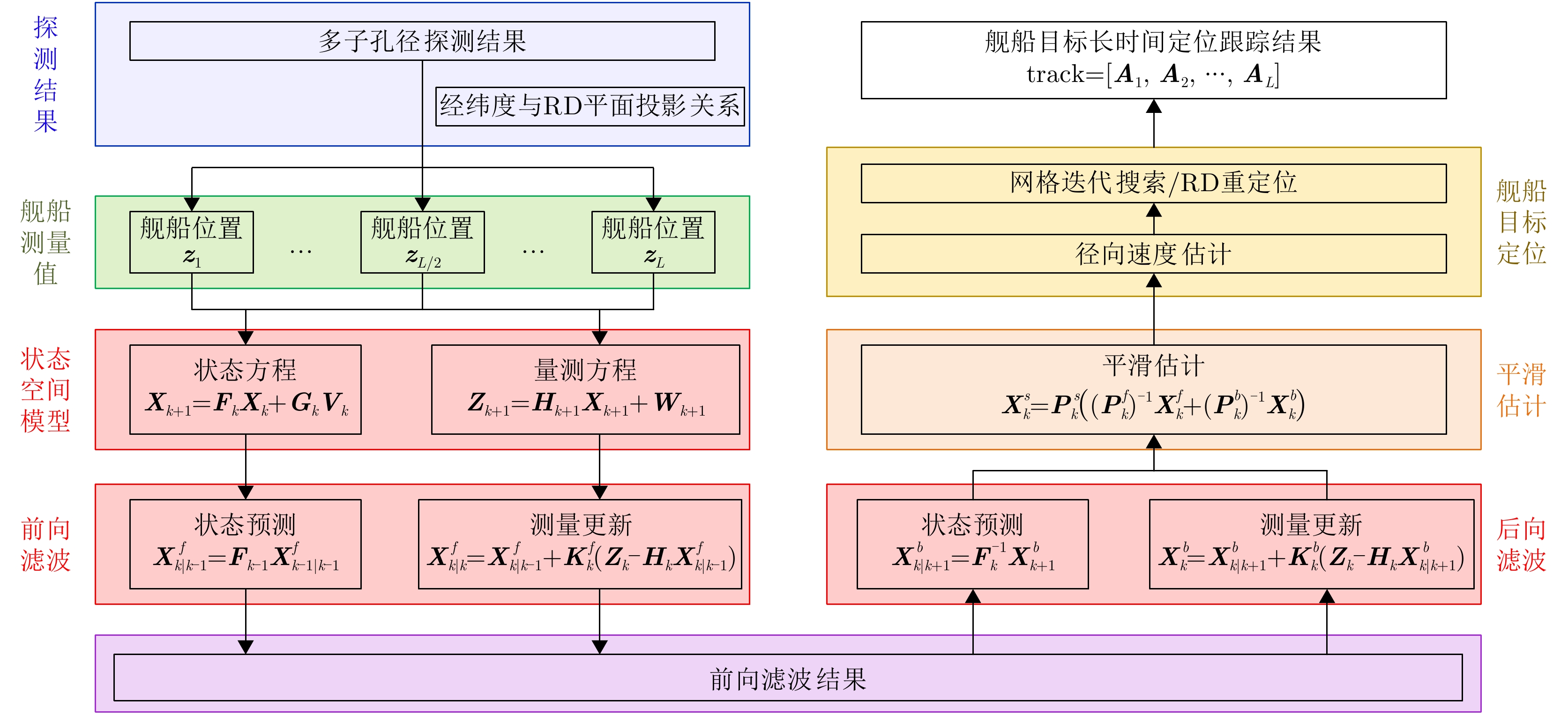 地球同步轨道(GEO)合成孔径雷达(SAR)具有对大区域进行连续观测的优势,但由于探测距离远、合成孔径时间长、大视场杂波累加和非平直观测几何的特点,利用GEO SAR对运动舰船探测存在成像聚焦困难、信杂比低、位置偏移大等巨大技术挑战。该文提出一种面向GEO SAR的运动舰船探测-跟踪-定位一体化处理新方法,可有效解决上述难题。该文首先建立了GEO SAR对运动舰船的观测信号模型,深入分析了超长合成孔径时间内运动舰船的回波特性,提出了基于最优子孔径处理实现目标成像探测和长时间跟踪定位方法,该方法通过改进BP成像算法在孔径内实现了低信杂比下非合作舰船能量良好积累聚焦,获得了GEO SAR非平直几何观测下复杂运动舰船目标偏移位置与距离多普勒关系;然后,基于舰船短时匀速运动假设,利用双向平滑滤波方法对多子孔径探测结果进行航迹跟踪,并基于长时间跟踪结果获得运动舰船速度估计,在此基础上利用偏移位置与实际位置距离多普勒关系实现了运动舰船重定位。最后,通过仿真数据和在轨GEO SAR卫星实测数据验证了所提方法的正确性。