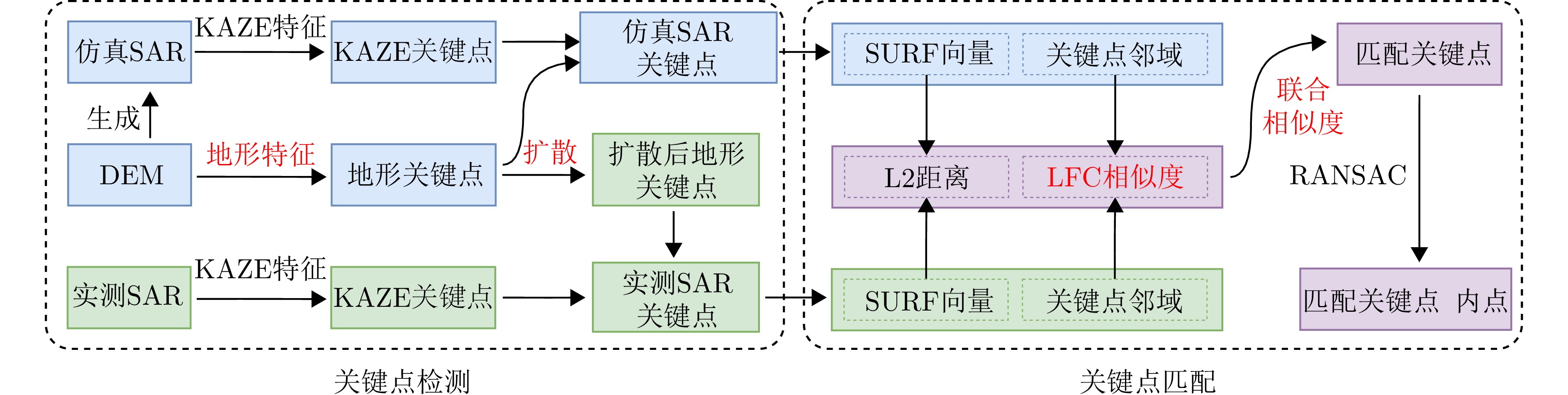 成像几何差异是引起SAR图像特征相对畸变的主要原因,进而导致SAR图像的匹配难度骤增。以仿真SAR图像作为参考图可以从根本上消除因成像几何差异造成的图像特征相对畸变,然而实测SAR图像与仿真SAR图像仍然会存在散射和噪声方面的差异,且现有的匹配算法基本采用对称式关键点检测及描述符匹配,因此匹配点的数量和精度仍然有待提升。针对上述问题,该文根据实测和仿真SAR图像的局部统计特征提出了非对称式的局部拟合一致性相似度度量准则,并基于该相似度设计了机载SAR图像与仿真SAR图像的粗匹配和精匹配方法,在此基础上引入地形特征提高关键点检测的多样性,最终实现实测机载SAR图像与仿真SAR图像的鲁棒匹配。实验结果表明,在不同噪声程度下,基于局部拟合一致性度量准则设计匹配方法具备更强的鲁棒性和准确性,在匹配精度等多方面指标上均显著优于现有主流算法。