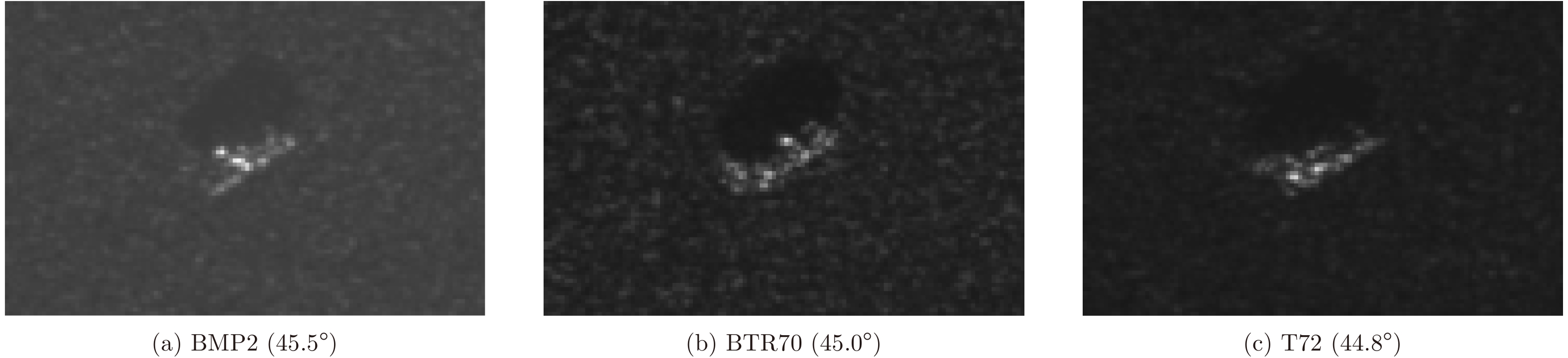 目标 Training set (17°) Testing set (30°) Testing set (45°) BRDM2 298 287 303 2S1 299 288 303 ZSU234 299 288 303 表 6 大俯仰角下不同分类方法的识别率(%)