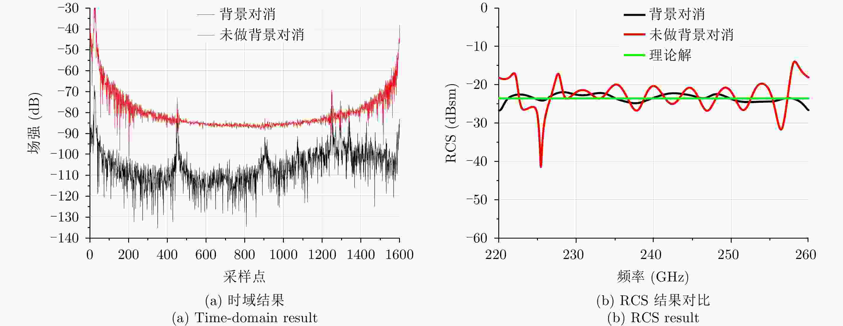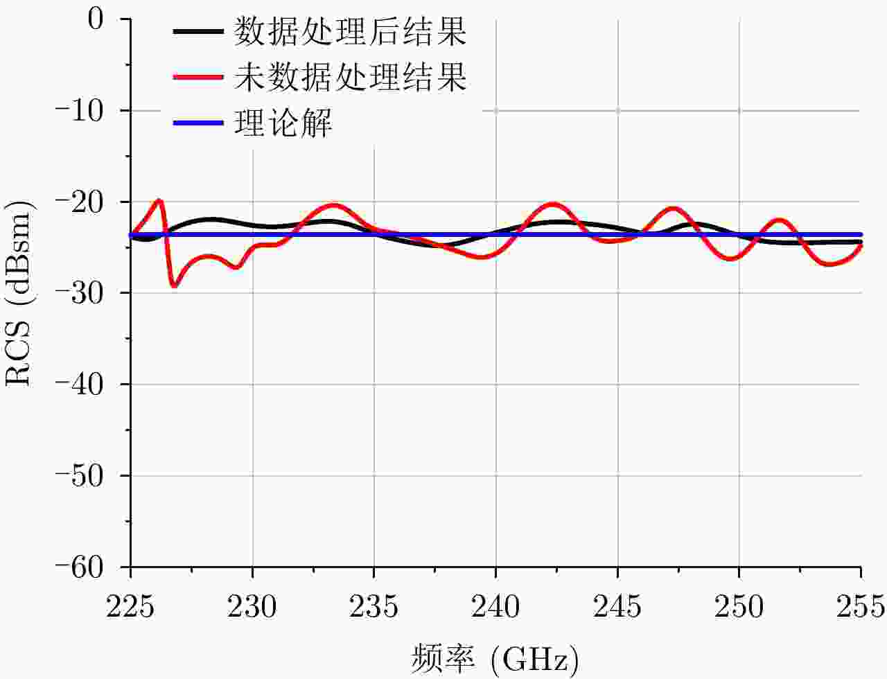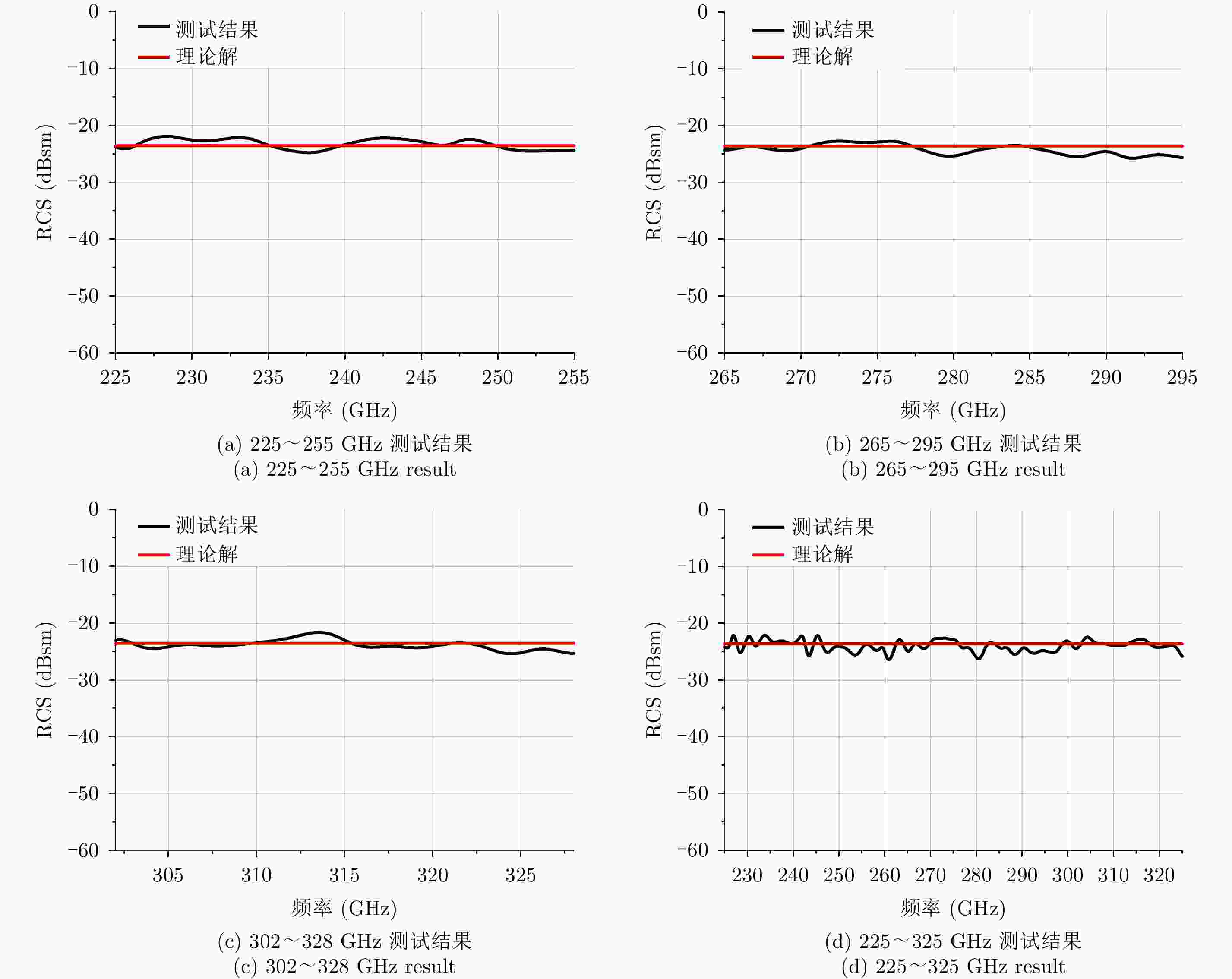 [1] 黄培康. 雷达目标特征信号[M]. 北京: 宇航出版社, 1993.Huang Pei-kang. Radar Target Signature Signal[M]. Beijing: China Astronautic Publishing House, 1993: 59–74. [2] Waldman J, Fetterman H R, Duffy P E, et al.. Submillimeter model measurements and their applications to millimeter radar systems[C]. Proceedings of the Fourth International Conference on Infrared Near-Millimeter Waves, Miami Beach, FL, USA, 1979: 49–50. [3] Jansen C, Krumbholz N, Geise R, et al.. Scaled radar cross section measurements with terahertz–spectroscopy up to 800 GHz[C]. Proceedings of the 3rd European Conference on Antennas and Propagation, Berlin, Germany, 2009: 3645–3648. [4] Iwaszczuk K, Heiselberg H, and Jepsen P U. Terahertz radar cross section measurements[J]. Optics Express, 2010, 18(25): 26399–26408. DOI: 10.1364/OE.18.026399 [5] Coulombe M J, Horgan T, and Waldman J. A 160 GHz polarimetric compact range for scale model RCS measurements[C]. Proceedings of the Antenna Measurements and Techniques Association, Seattle, WA, USA, 1996: 239–244. [6] Coulombe M J, Horgan T, Waldman J A, et al.. A 524 GHz polarimetric compact range for scale model RCS measurements[C]. Proceedings of the Antenna Measurements and Techniques Association, Monterey, CA, USA, 1999: 458–463. [7] DeMartinis G B, Coulombe M J, Horgan T M, et al.. A 240 GHz polarimetric compact range for scale model RCS measurements[C]. Proceedings of the Antenna Measurements and Techniques Association, Atlanta, GA, USA, 2010: 3–8. [8] GJB5022-2001室内场缩比目标雷达散射截面测试方法[S]. 2001.GJB5022-2001 Method for measurement of radar cross section of scale target indoor range[S]. 2001. -