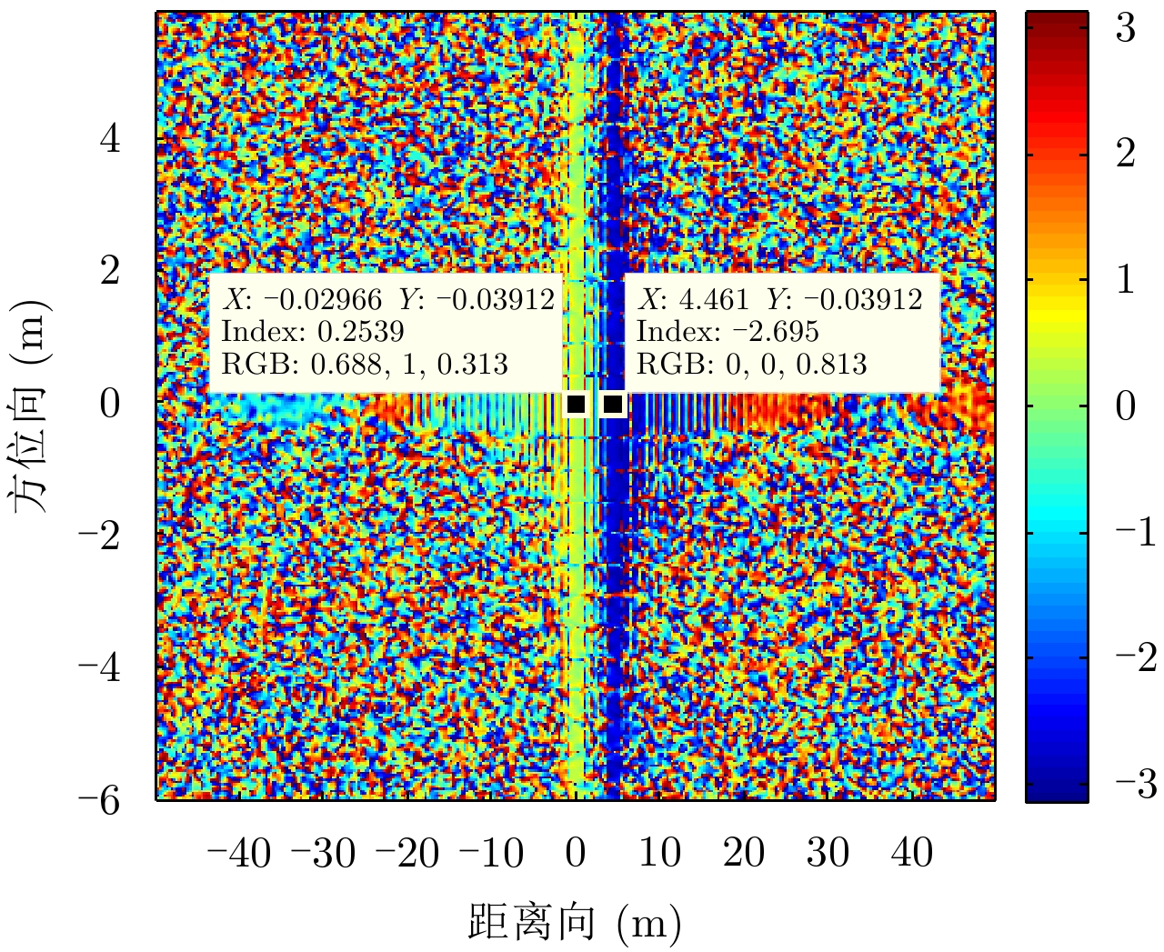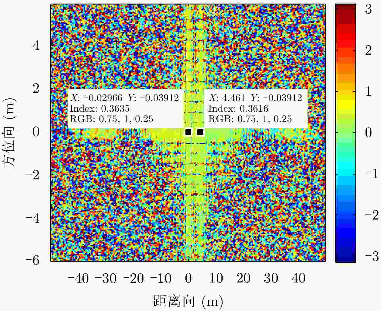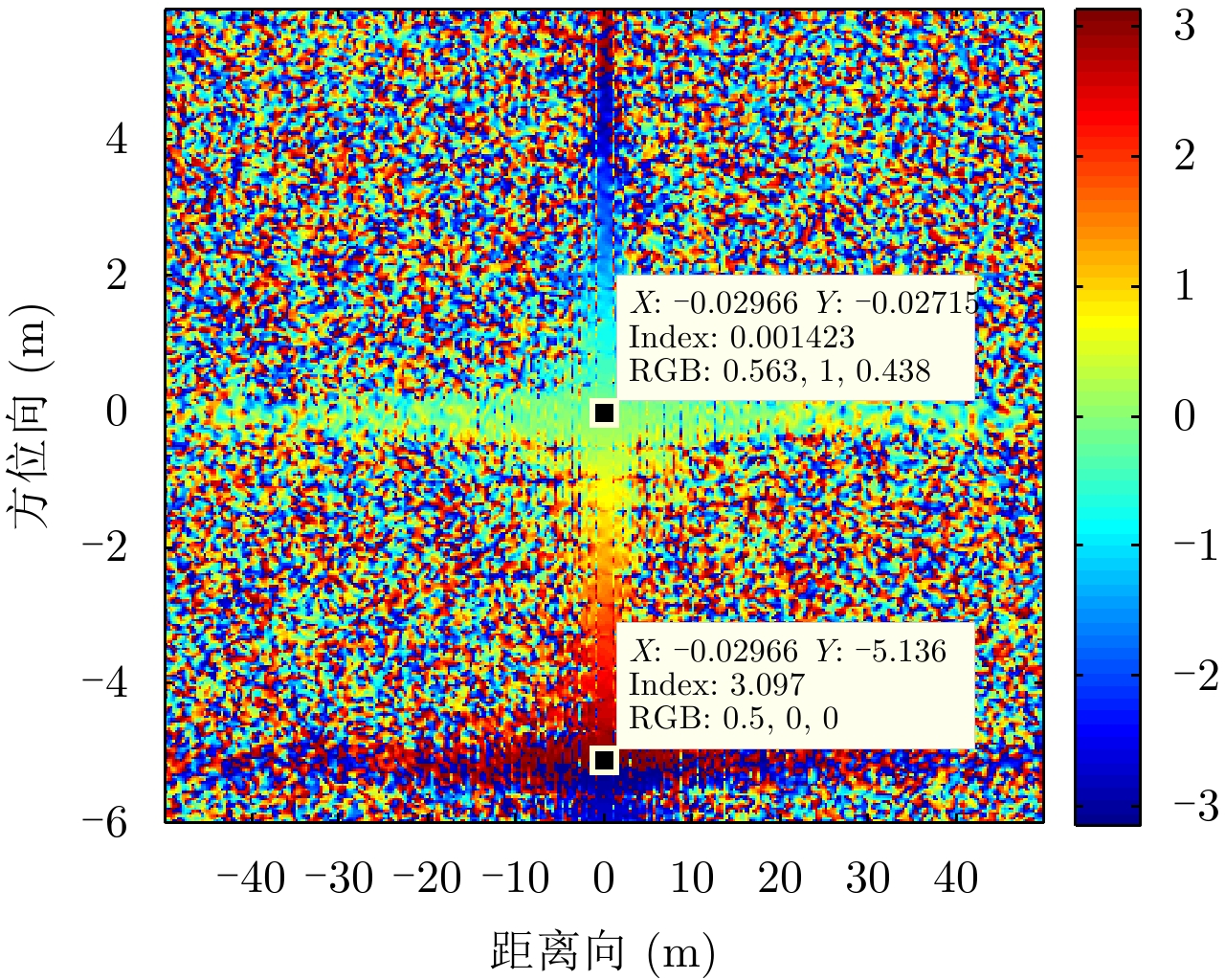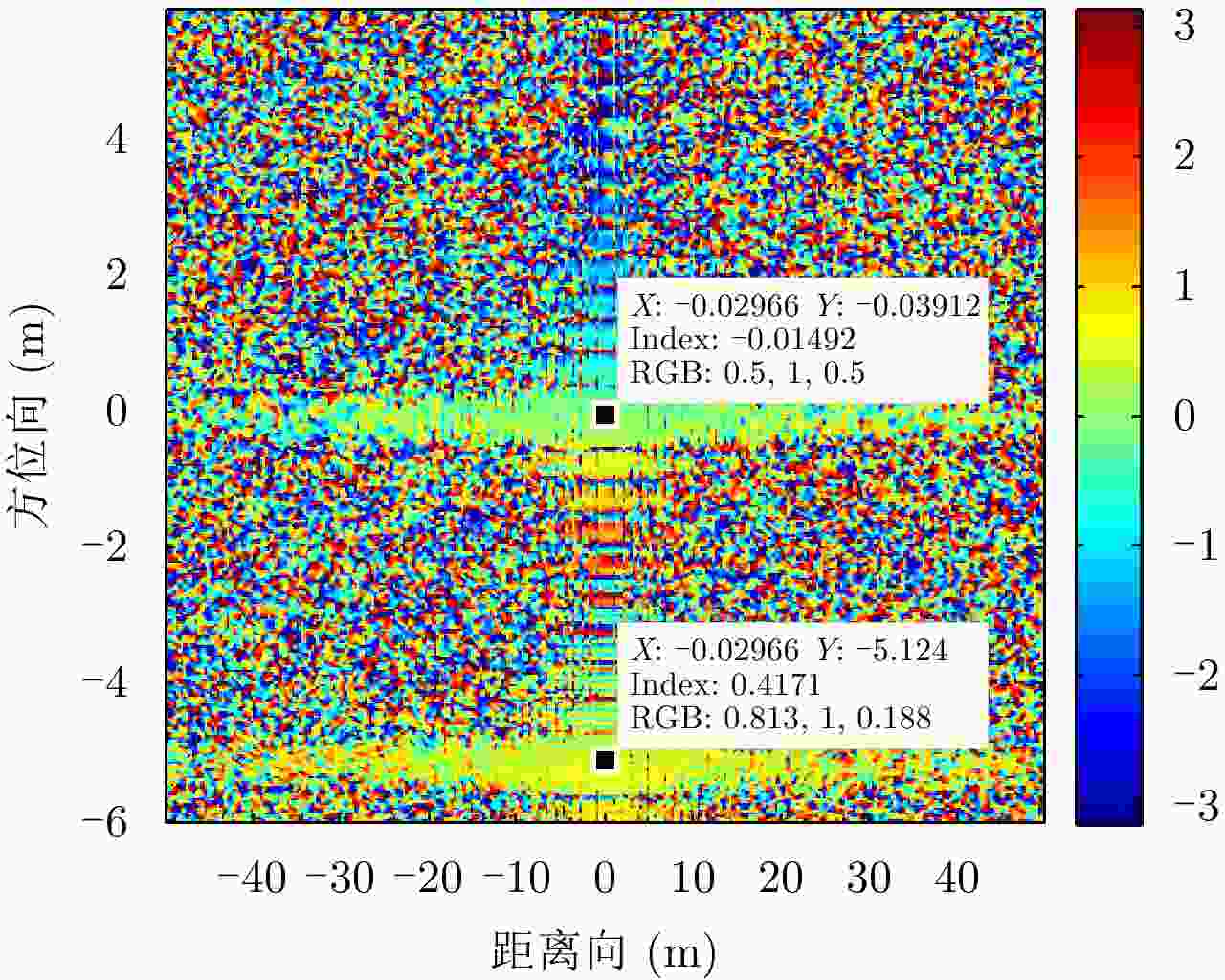 相位(rad) 第1列 第2列 第3列 第1行 0.1348 0.1370 0.1423 第2行 0.1360 0.1390 0.1407 第3行 0.1379 0.1370 0.1425 表 3 9点目标顺轨干涉相位