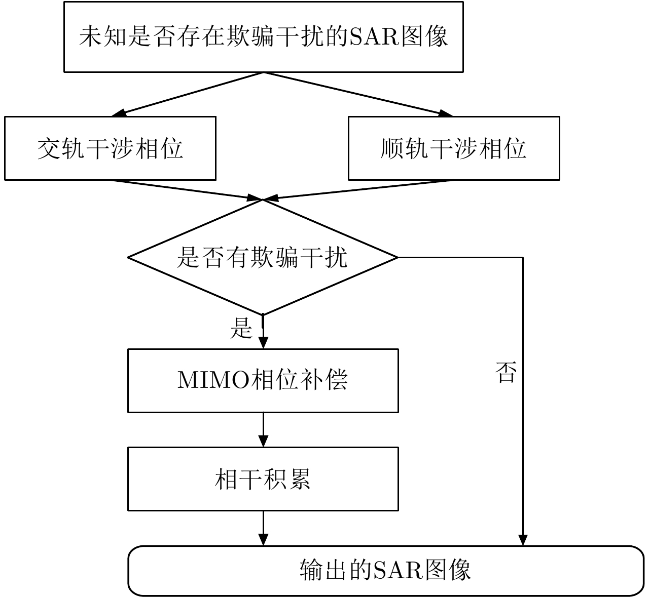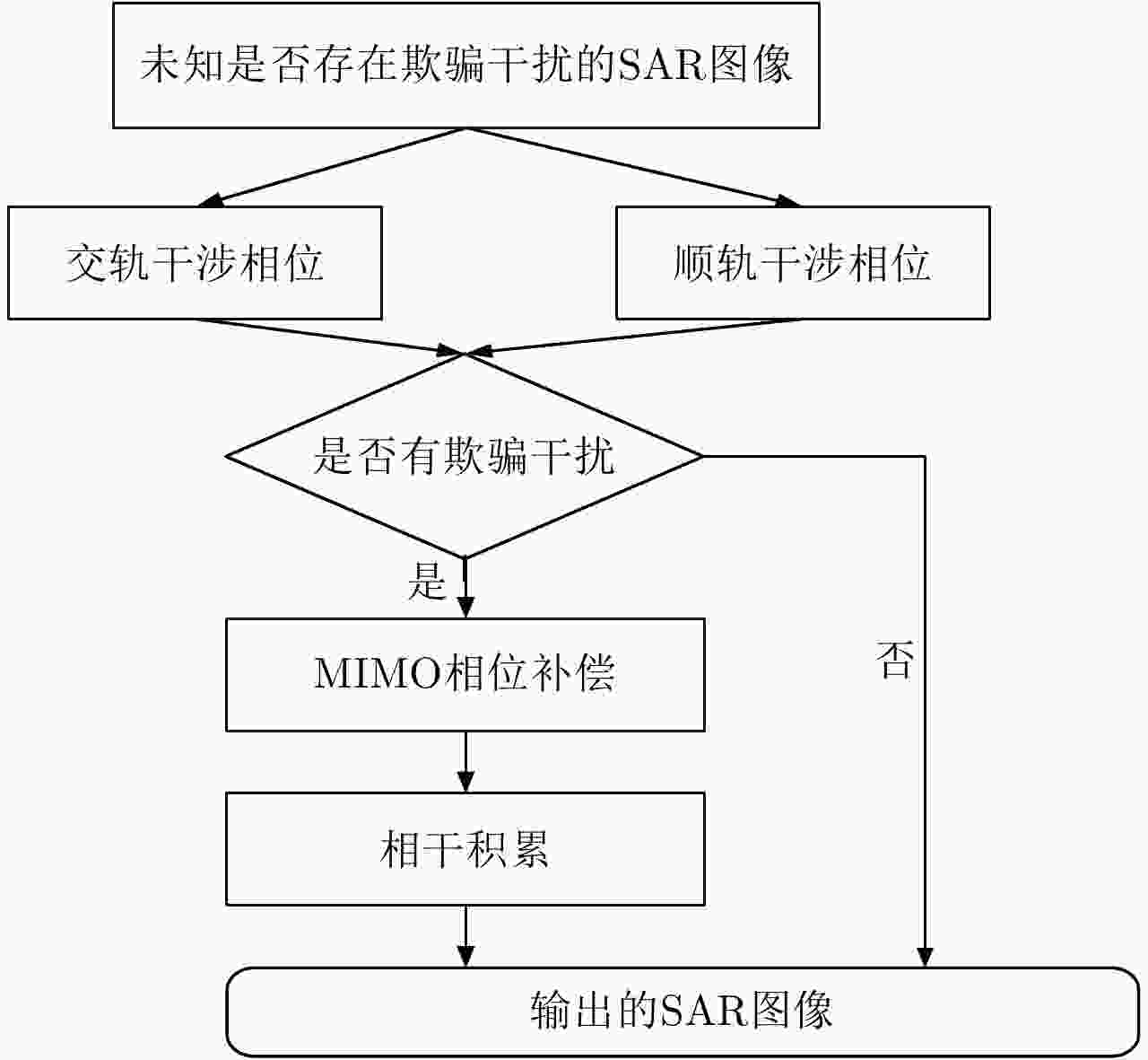 Abstract: A novel approach using two-dimensional mixed baseline based on Multi-Input Multi-Output Synthetic Aperture Radar (MIMO-SAR) has been proposed for range delay and azimuth Doppler frequency modulation used in deceptive jamming. Based on MIMO-SAR phase coding method, which makes the multi-channel signal orthogonal, we propose the detection of deceptive jamming phenomenon by employing multi-dimensional phase information, and suppress the jamming targets via phase compensation to improve the ability of countering deceptive jamming. Moreover, we utilize radar anti-jamming improvement factor as a quantitative evaluating index. In the limited platform space, the radar anti-jamming improvement factor of the proposed method is three times greater than that of conventional single-input multi-output systems. Experimental results demonstrate the validity of our method. -