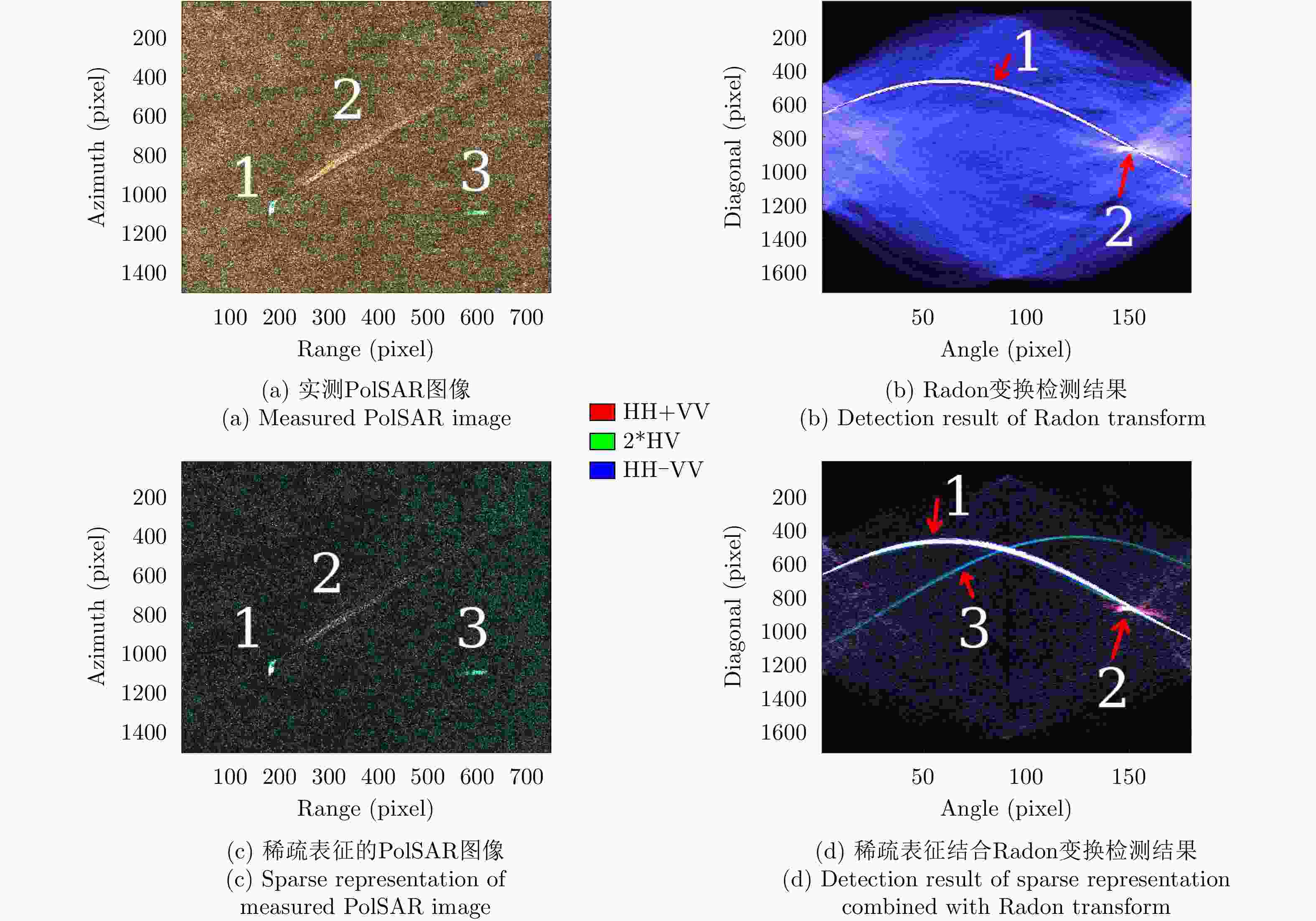 图 12 Ship wake detection results of low-rank and sparse decomposition combined with polarization[98]
