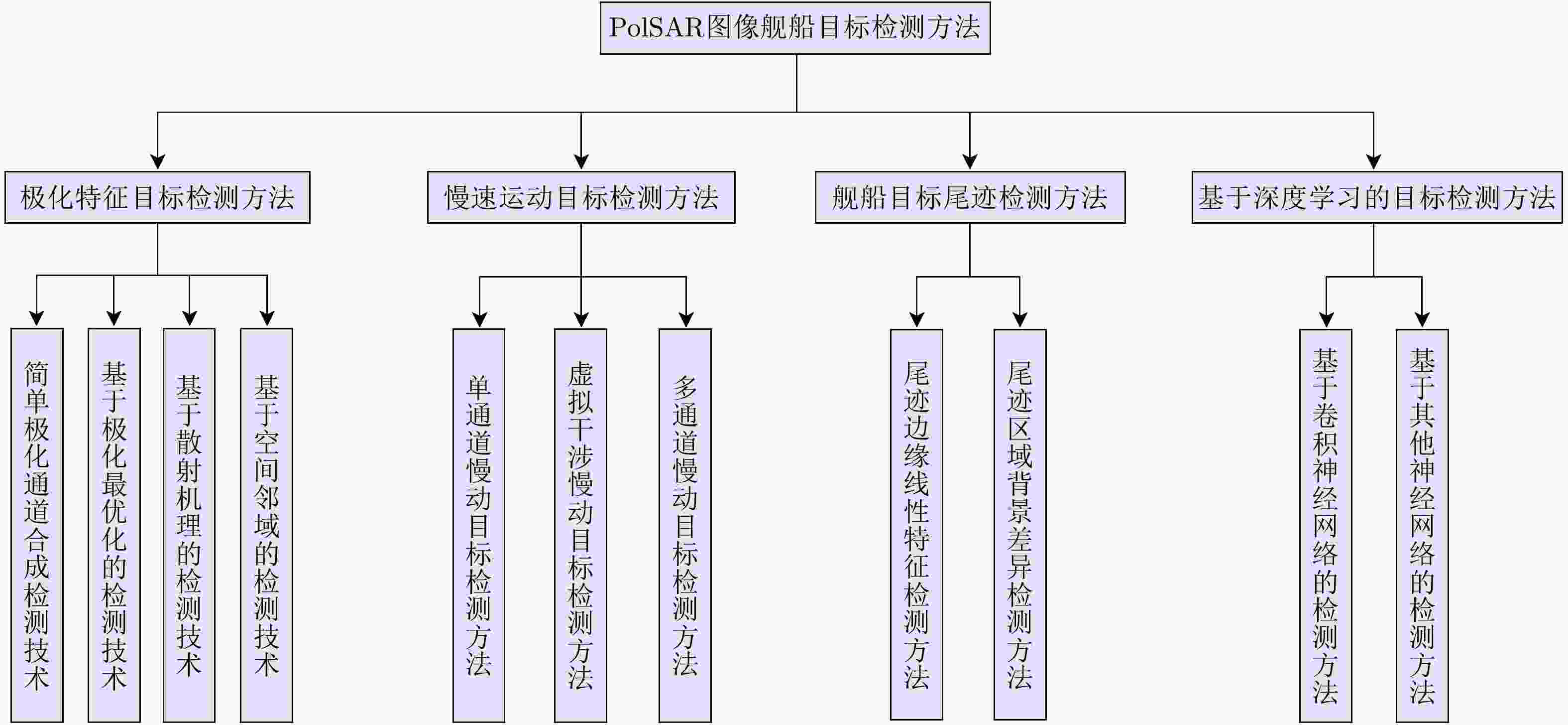 检测分类 适用场景 具体检测方法 优点 缺点 目标极化特征检测 主要适用于舰船目标本体极化特征和杂波特征有一定差异情形下的检测 简单极化合成检测技术 早期PolSAR目标检测方法,简单易实现且效果优于单极化SAR图像目标检测方法 一定程度上利用了幅度或相位信息,对极化信息的利用不够充分 基于极化最优化的检测技术 1. 充分利用了各极化通道相关信息