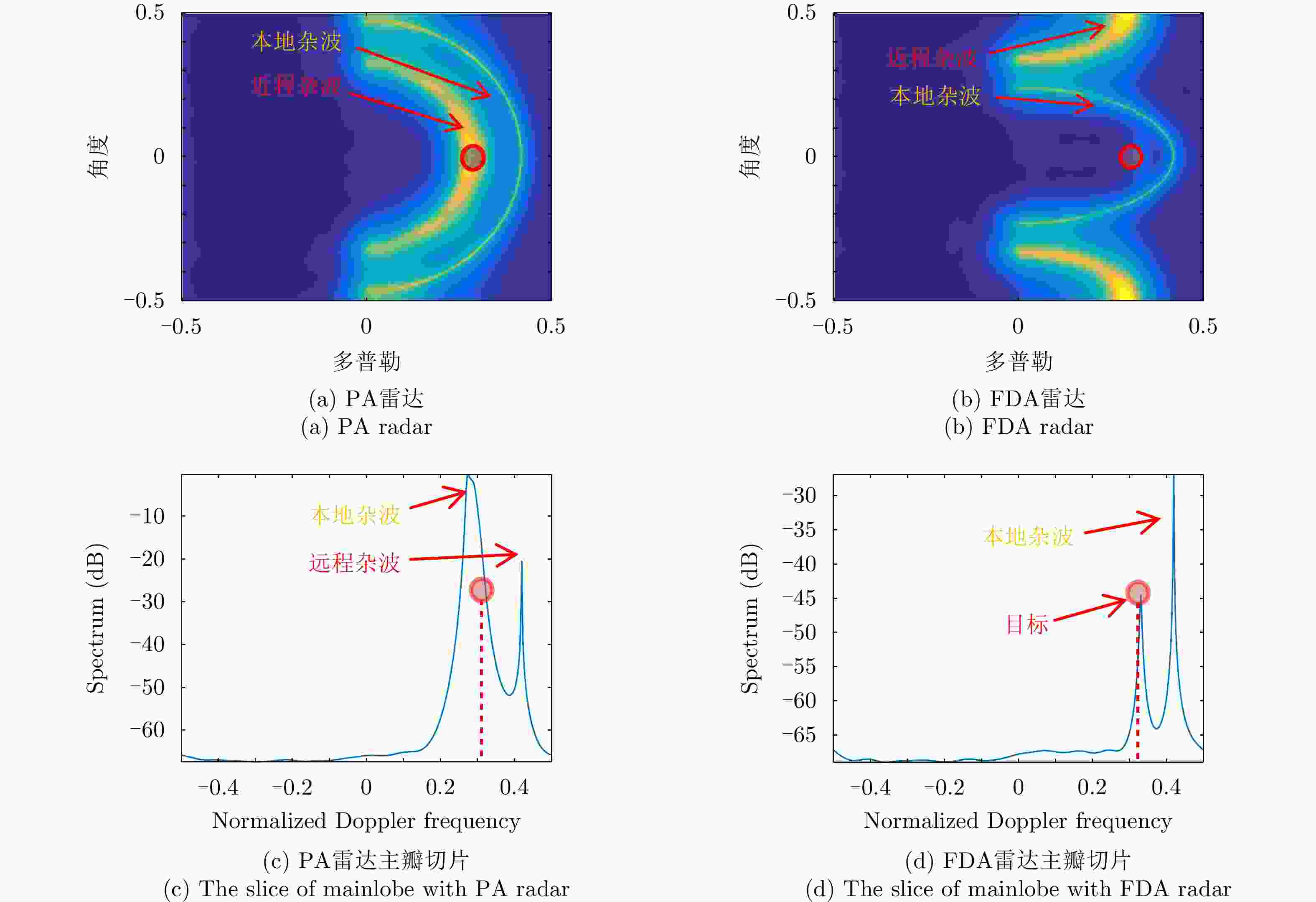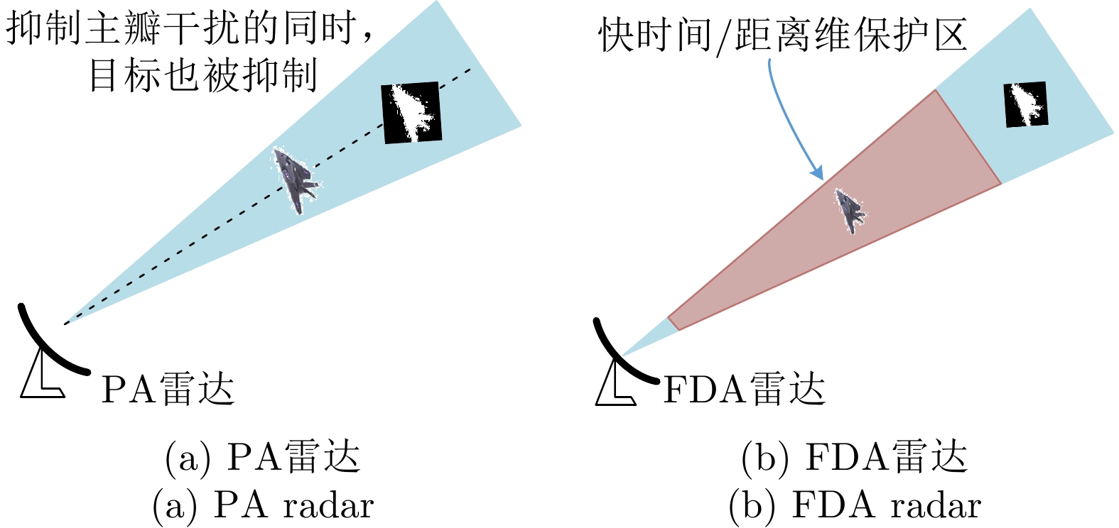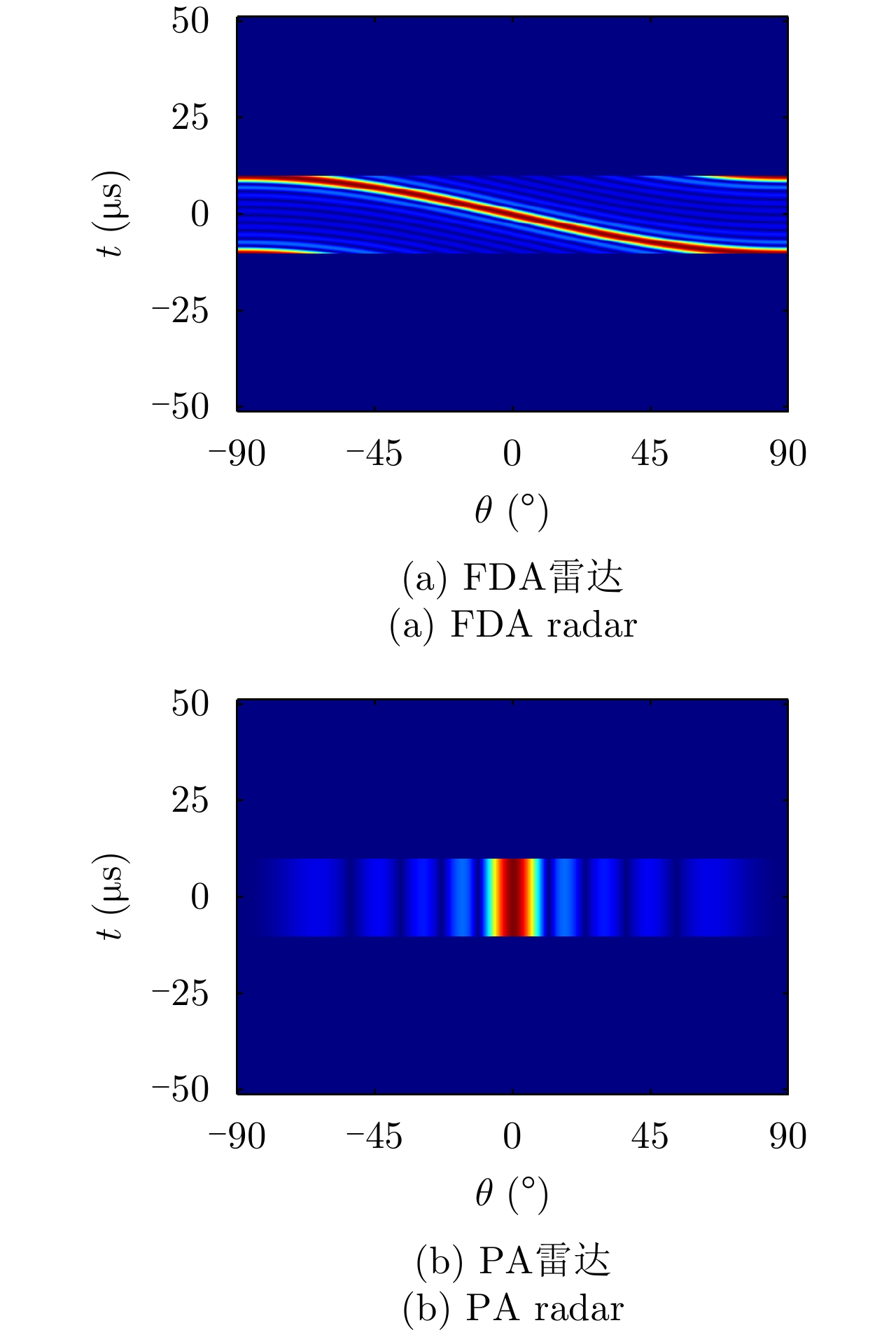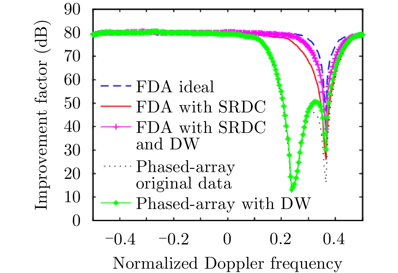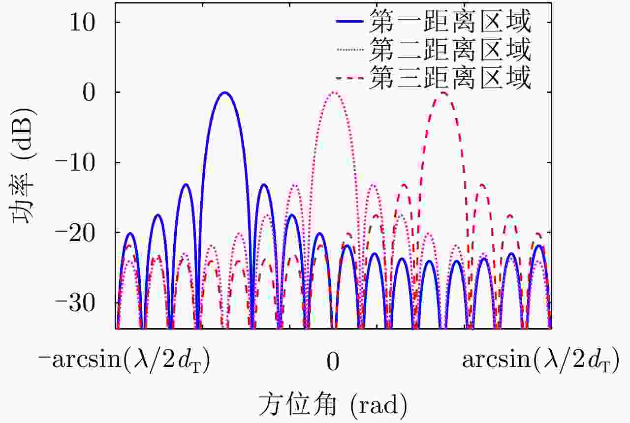 参数 数值 参数 数值 发射阵元数M 10 带宽B 20 MHz 脉宽Tp 20 μs 采样率fs 30 MHz 载频f0 16 GHz 阵元间距d λ0/2 频偏 1/Tp 表 2 TDA仿真参数