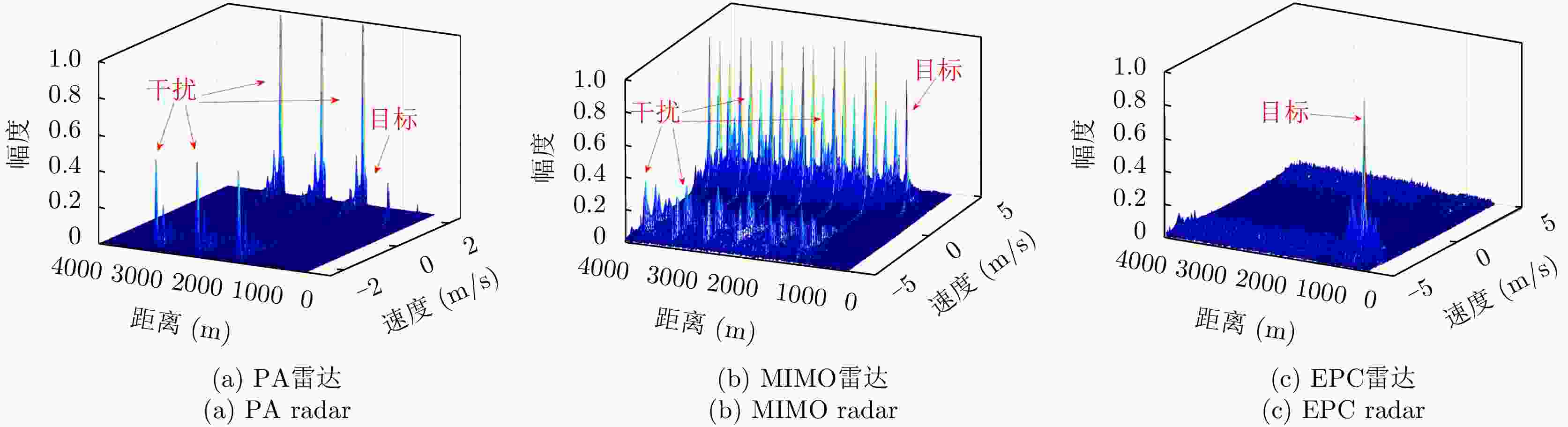 参数 数值 参数 数值 发射阵元数M 10 带宽B 20 MHz 脉宽Tp 20 μs 采样率fs 30 MHz 载频f0 16 GHz 阵元间距d λ0/2 时延 1/B 表 3 雷达系统参数